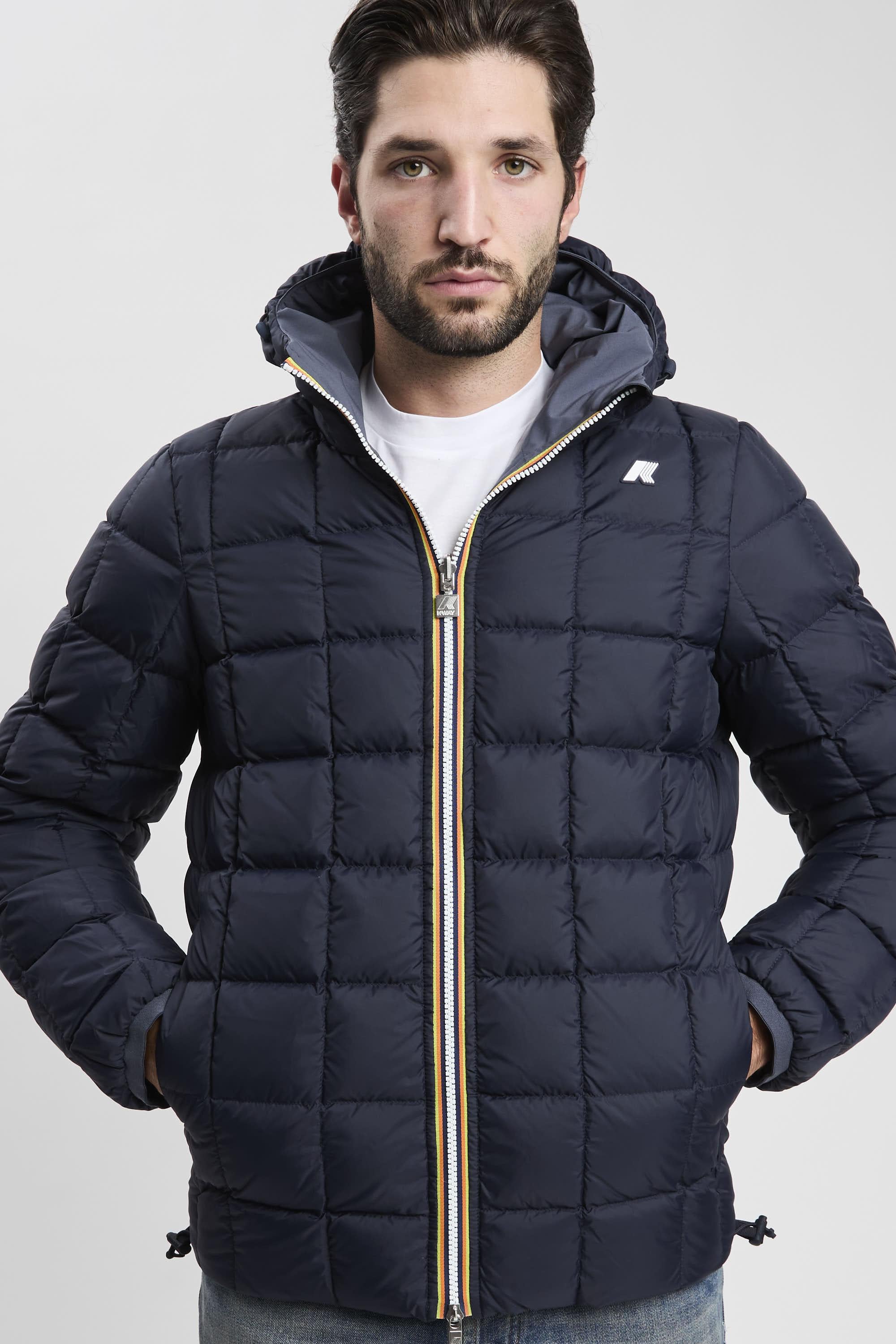 - Giubbotto corto modello Jack- Design reversibile con un lato in tessuto tecnico liscio e l’altro in nylon trapuntato a contrasto- Lato 1: poliestere eco elasticizzato, impermeabile, idrorepellente, antivento e traspirante- Lato 2: nylon trapuntato antivento e traspirante, con tenuta piuma- Imbottitura in piuma naturale, calda e isolante- Grado di calore: alto- Cuciture termonastrate per massima protezione dagli agenti atmosferici- Cappuccio regolabile con corda elastica- Chiusura frontale con zip e flap antivento- Polsi con bordo elastico- Due tasche con zip- Due tasche con bottoni a pressione- Vestibilità: slim fit- Logo in silicone biancoColore: AzzurroIl modello indossa la taglia M, è alto 1.84 cm e pesa 80 kg.STAGIONE: AUTUNNO INVERNO 2025/2026COD: K8127WW B2HMateriale: 76% Poliestere riciclato - 24% PoliuretanoFodera: 100% RayonImbottitura: 90% Piumino d'anatra - 10% Piuma d'anatra