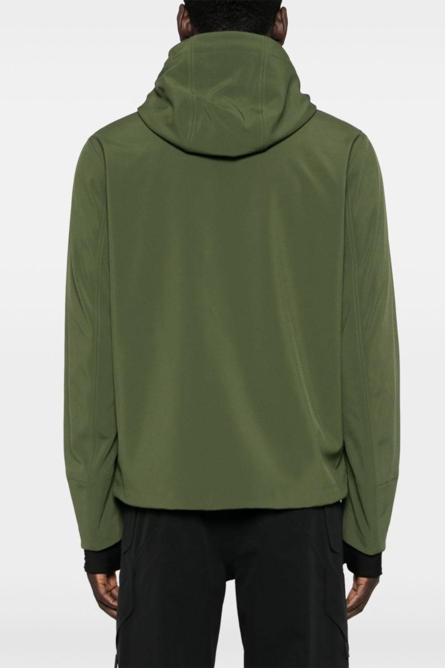 Proposta in verde oliva, presenta chiusura frontale con zip a doppio cursore, cappuccio regolabile con coulisse e fodera in pile per un comfort termico ottimale. I dettagli funzionali includono due tasche laterali con zip, tasca interna, foro per pollice e orlo con coulisse. Il logo K-Way gommato sul petto, il dettaglio a righe sul davanti e il codice QR di autenticità completano un design che unisce praticità e stile urbano.