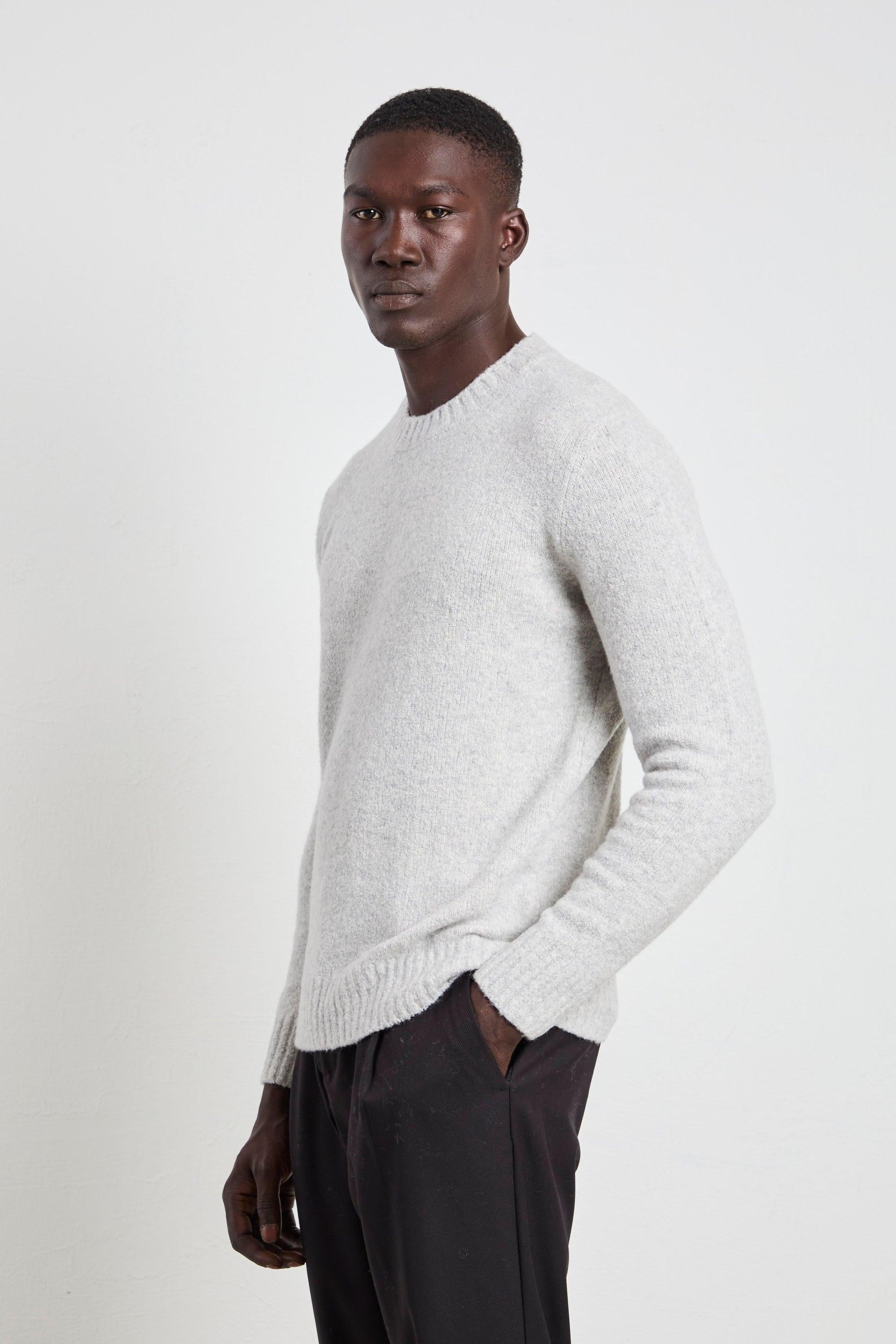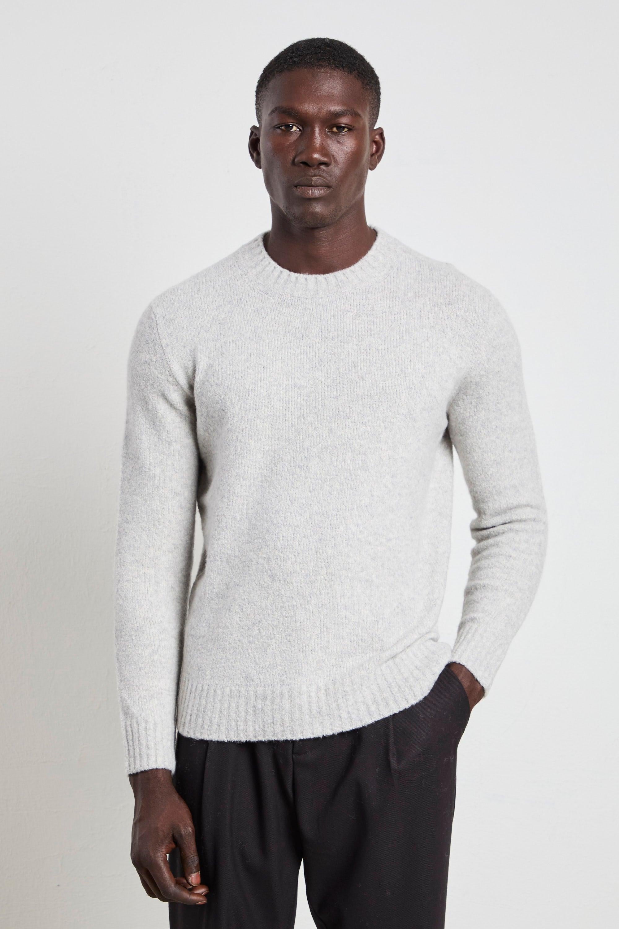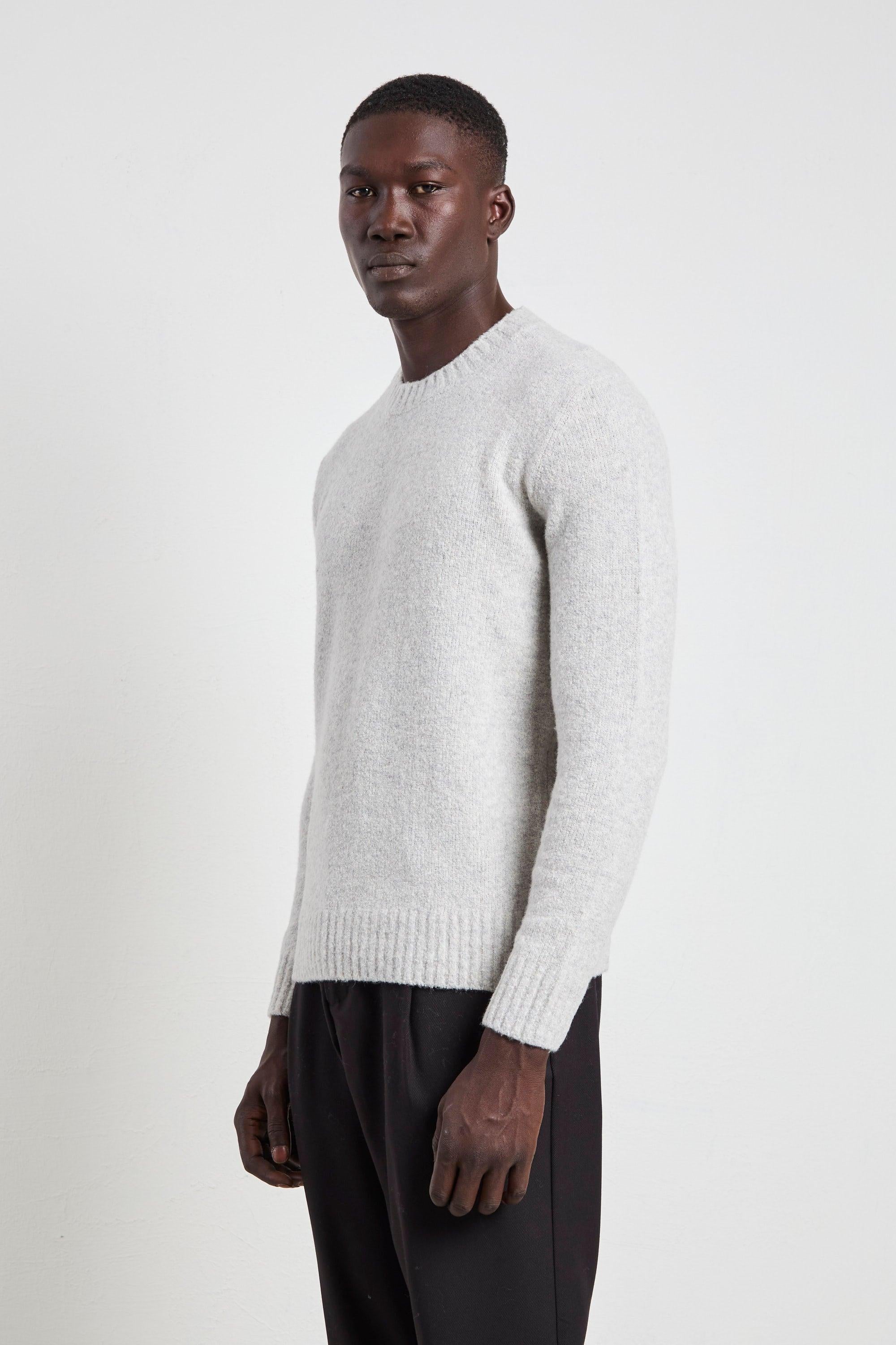 Dettagli• Modello: girocollo bouclé• Colore: perla• Vestibilità: regolare• Composizione: 72% lana, 20 poliammide, 6% cashmere, 2% elastan• Fondo e polsi: a coste elasticizzati• Taglia indossata: 50• Made in: Italia• Logo: discreto logo “Kangra” ricamato
