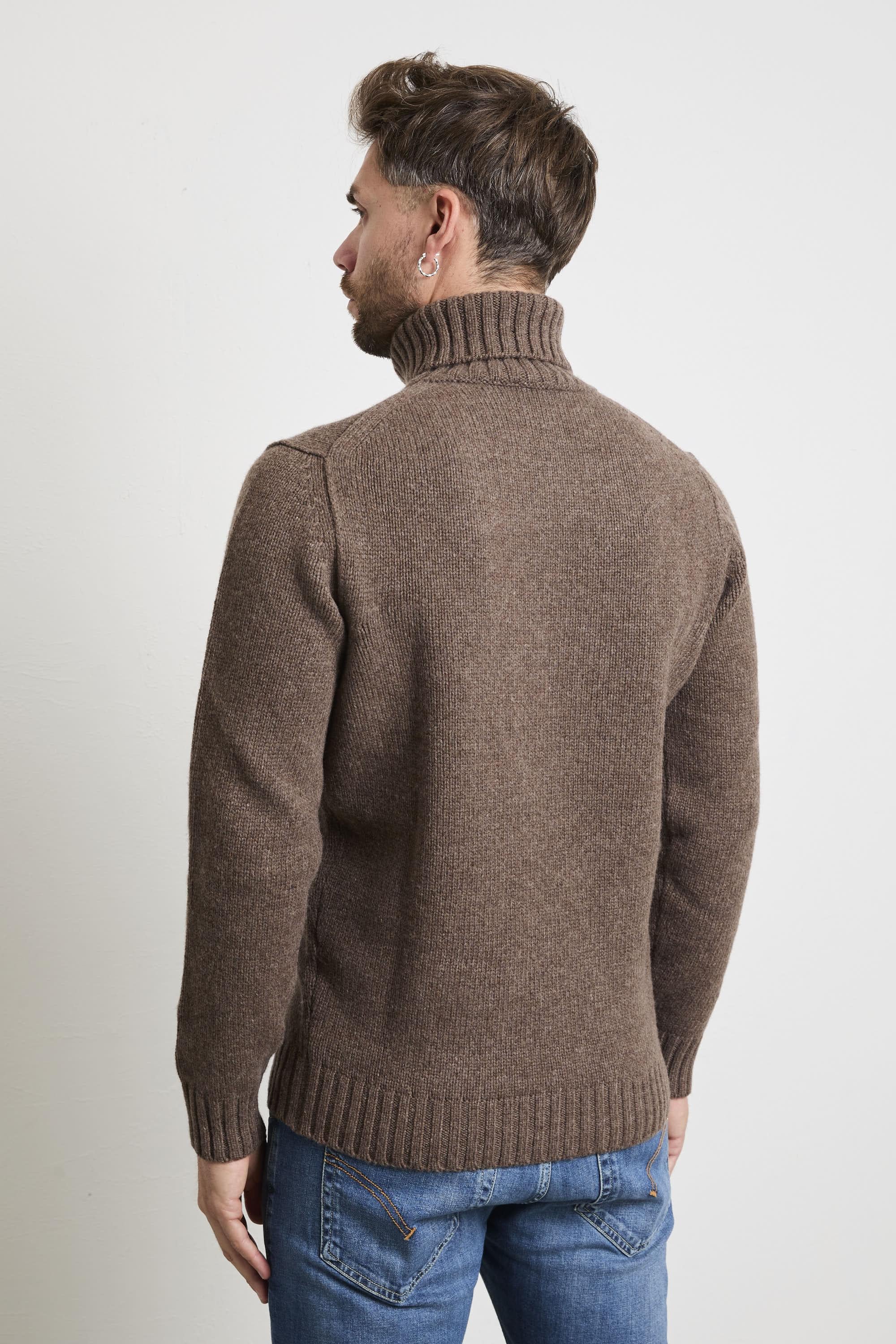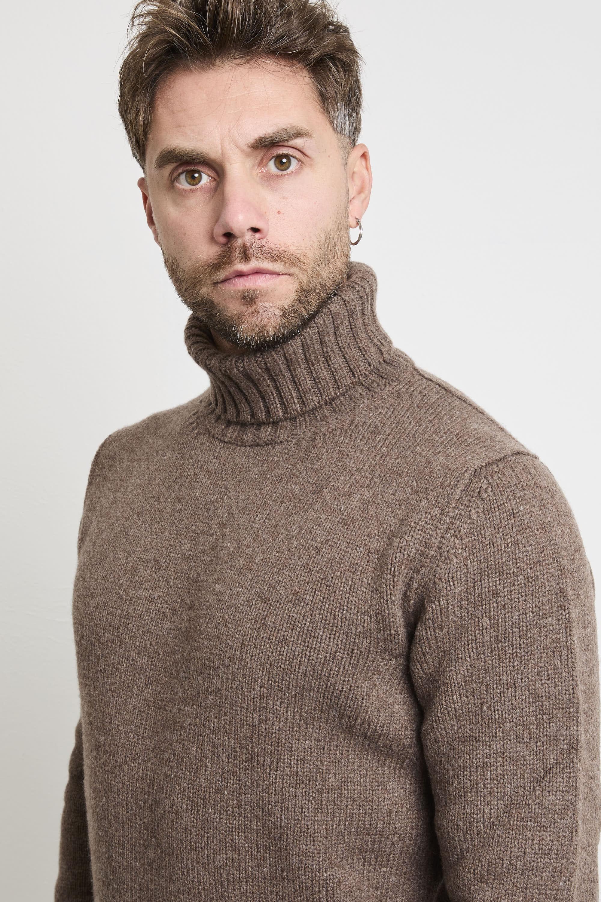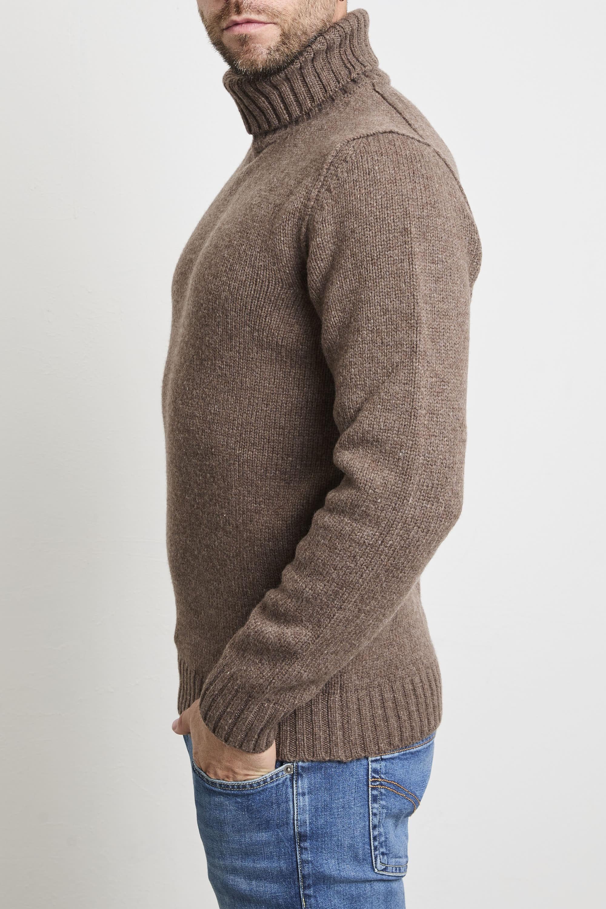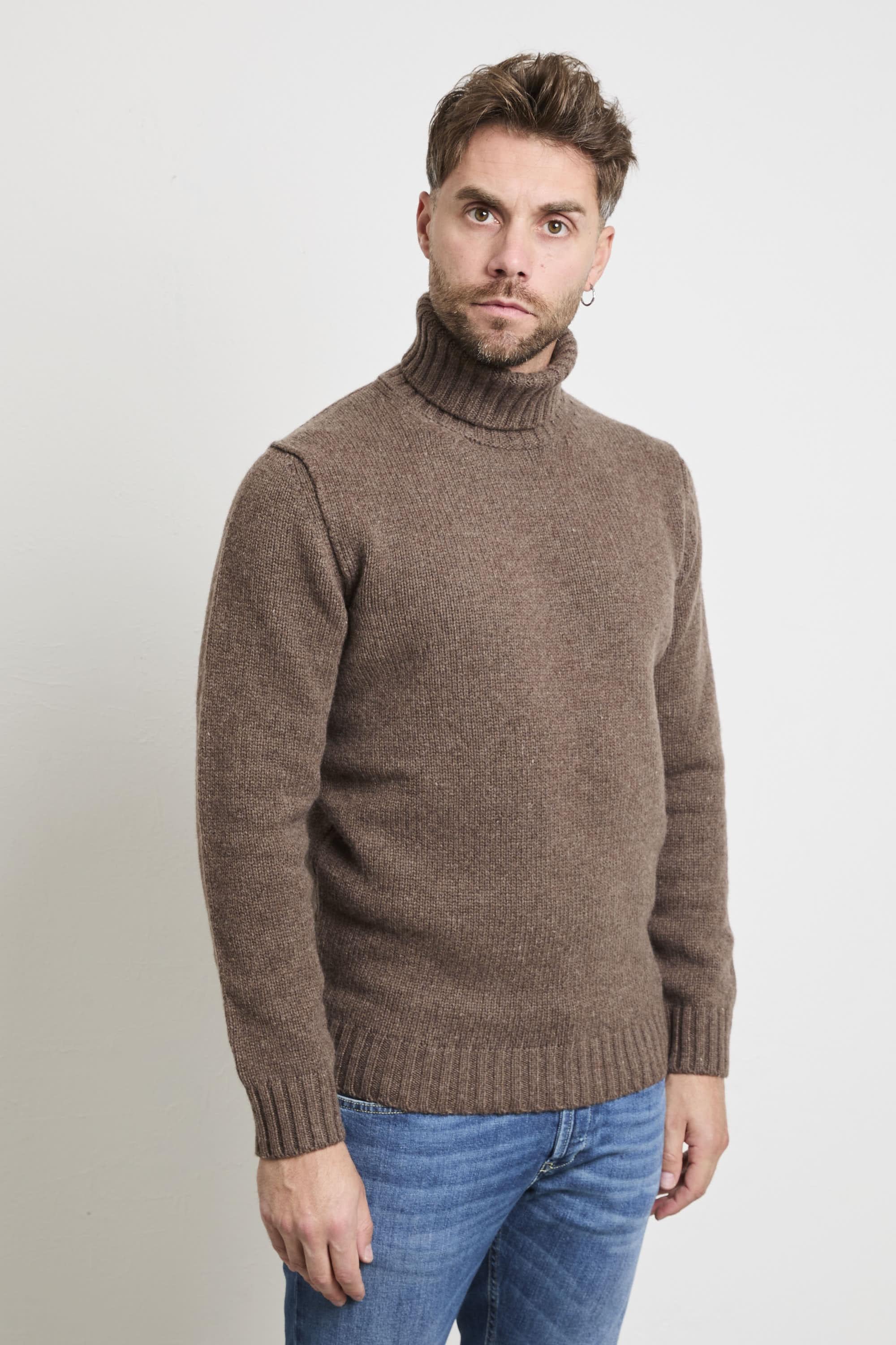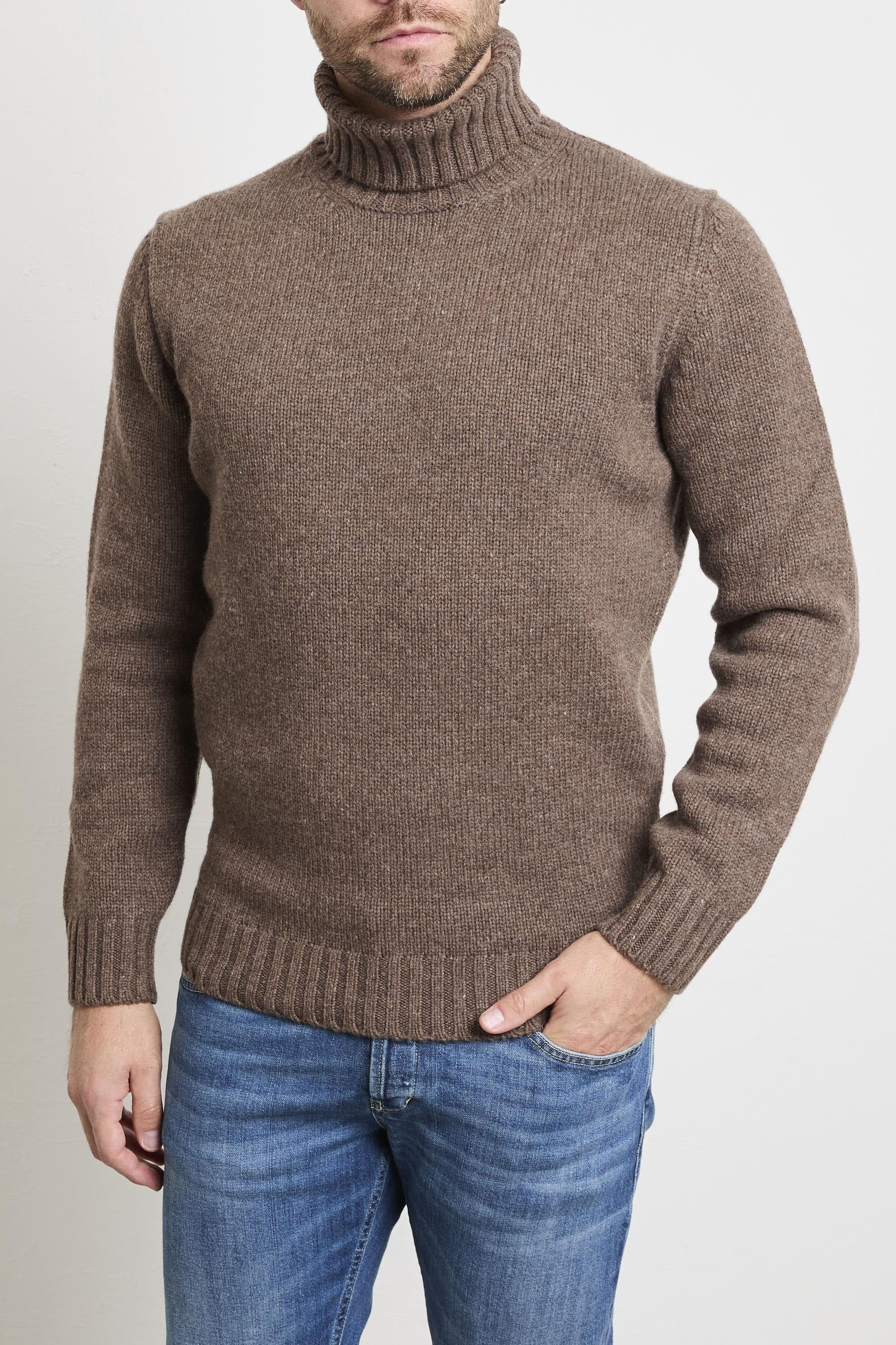 Caratteristiche principali Modello: dolcevita grosso Vestibilità: regolare, lineare sul busto Polsi e fondo: a coste elasticizzati Composizione: 100% lana Taglia indossata: 52 Prodotto in: Italia Logo: assenza di logo vistoso, marchio discreto Colore: marrone mélange