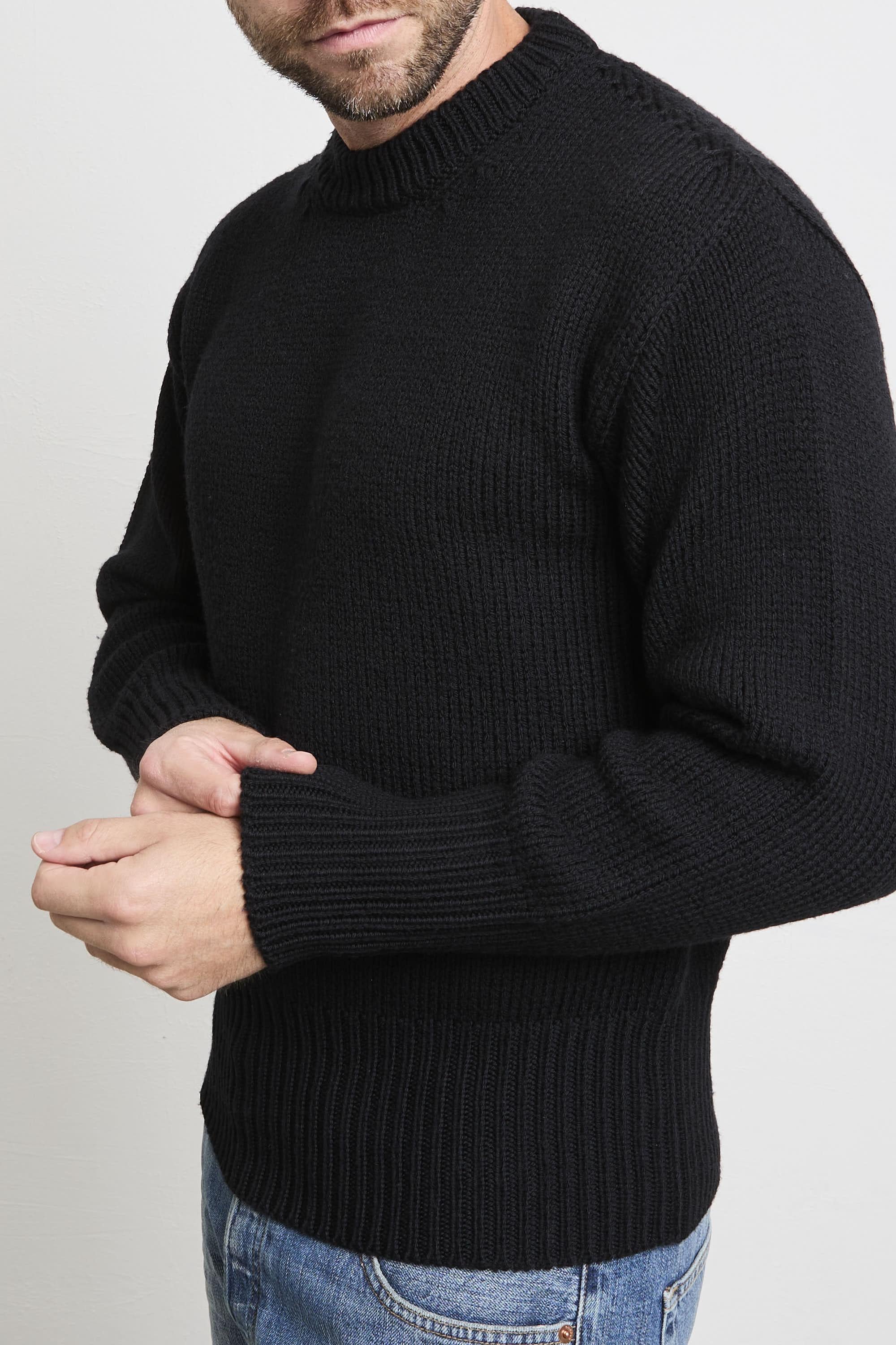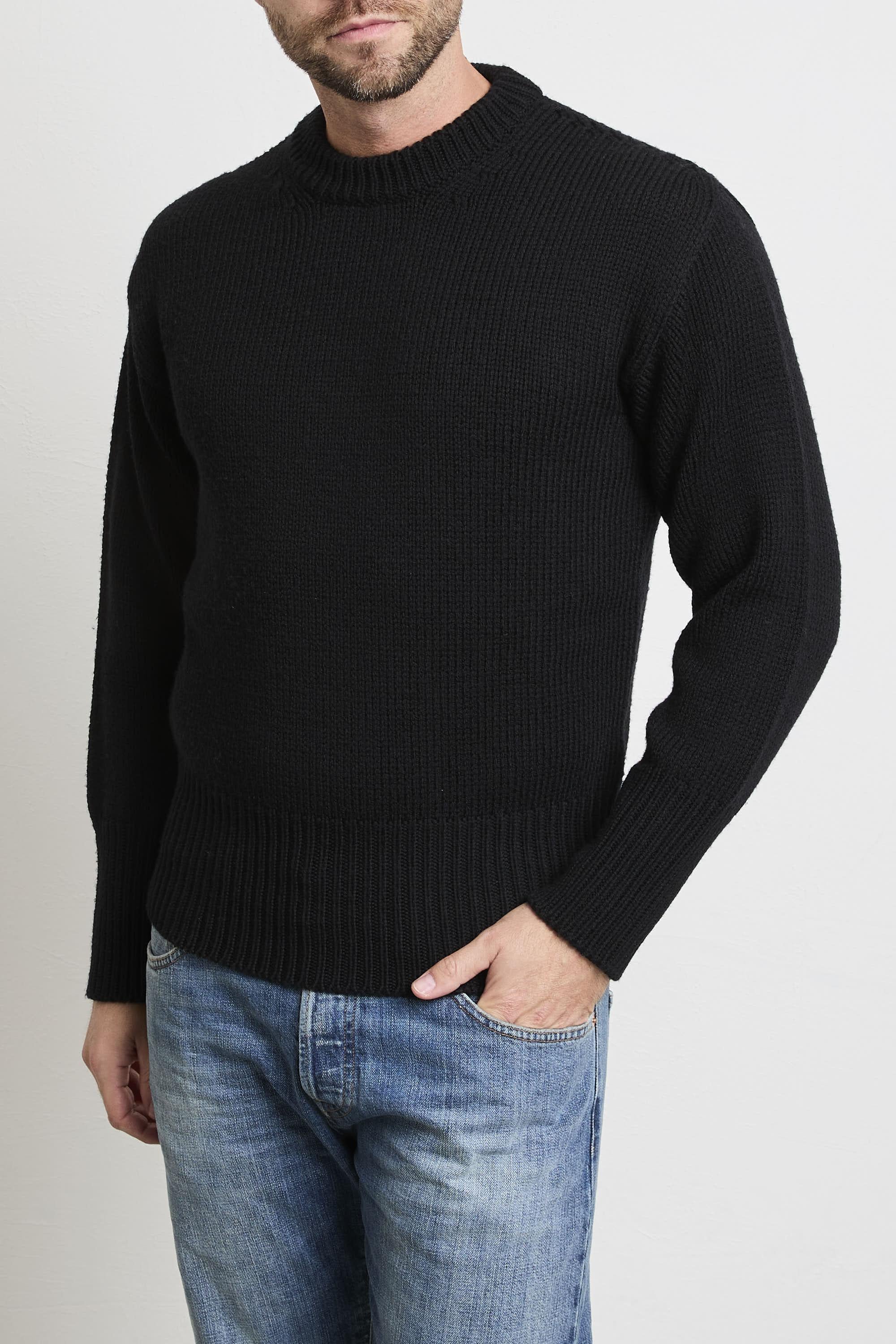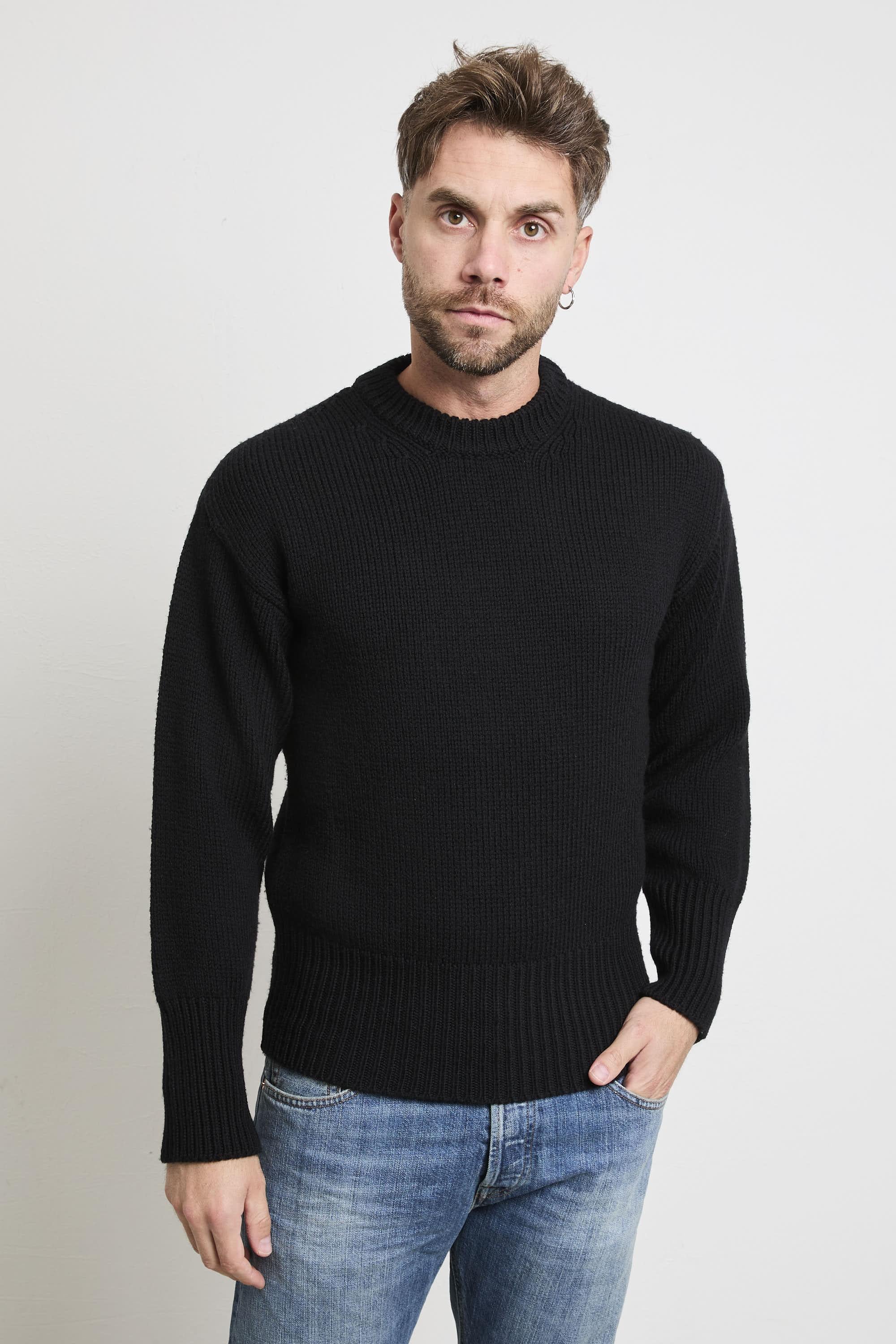 Caratteristiche principali Modello: girocollo rasato grosso Vestibilità: regolare, lineare sul busto Polsi e fondo: fascione alto elasticizzato Composizione: 100% lana Taglia indossata: 52 Prodotto in: Italia Logo: assenza di logo vistoso, marchio discreto Colore: nero