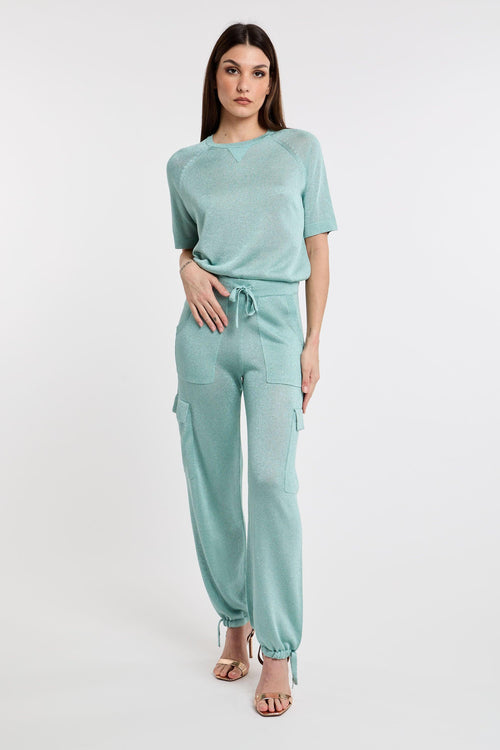 Riflettendo l'essenza di stile e comfort, il Pantalone Cargo Lurex cattura l'attenzione con il suo irresistibile blu. Perfetto per aggiungere un tocco di brillantezza al tuo guardaroba quotidiano, ogni dettaglio è curato per elevare il tuo stile: