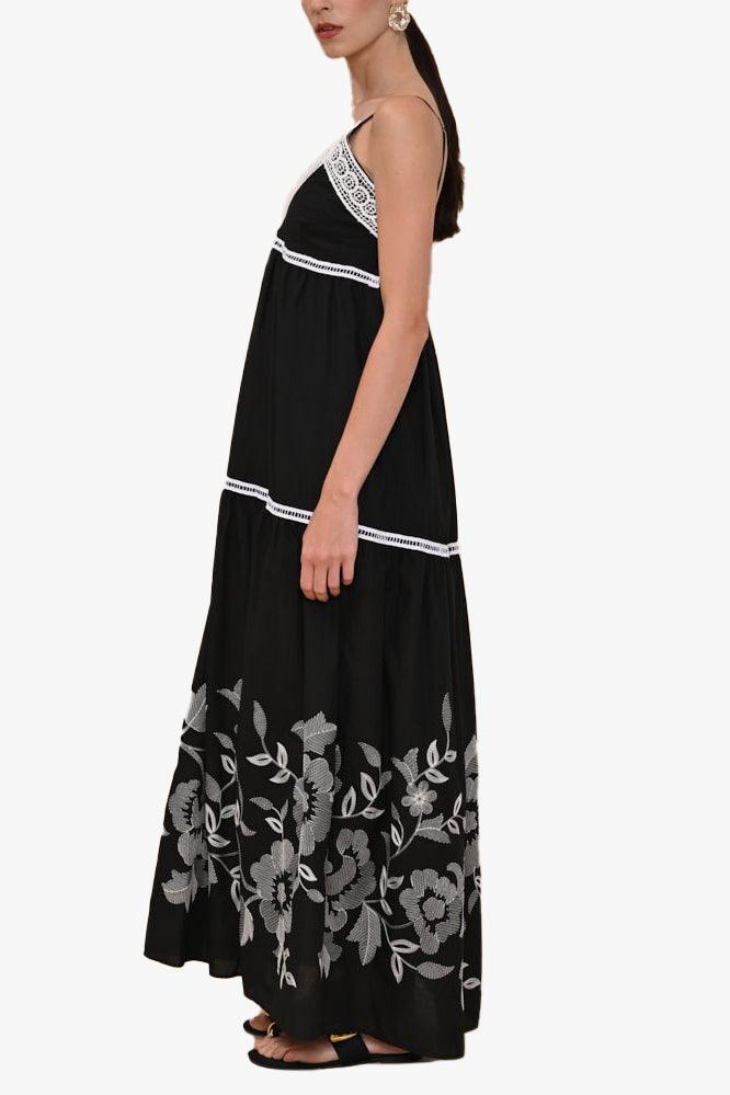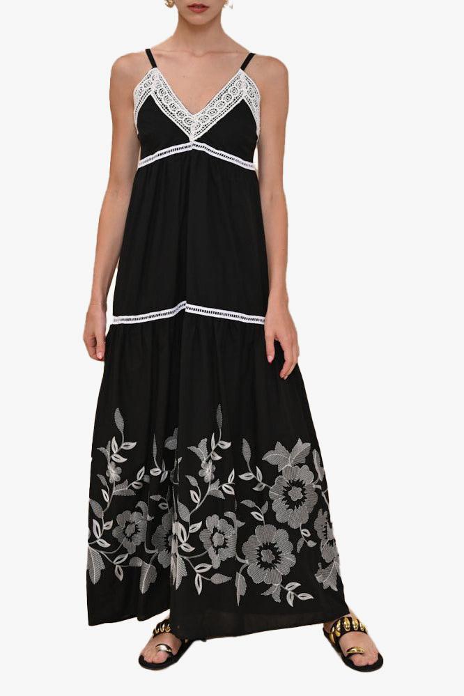 kaos Abito lungo con ricami ed inserti crochet