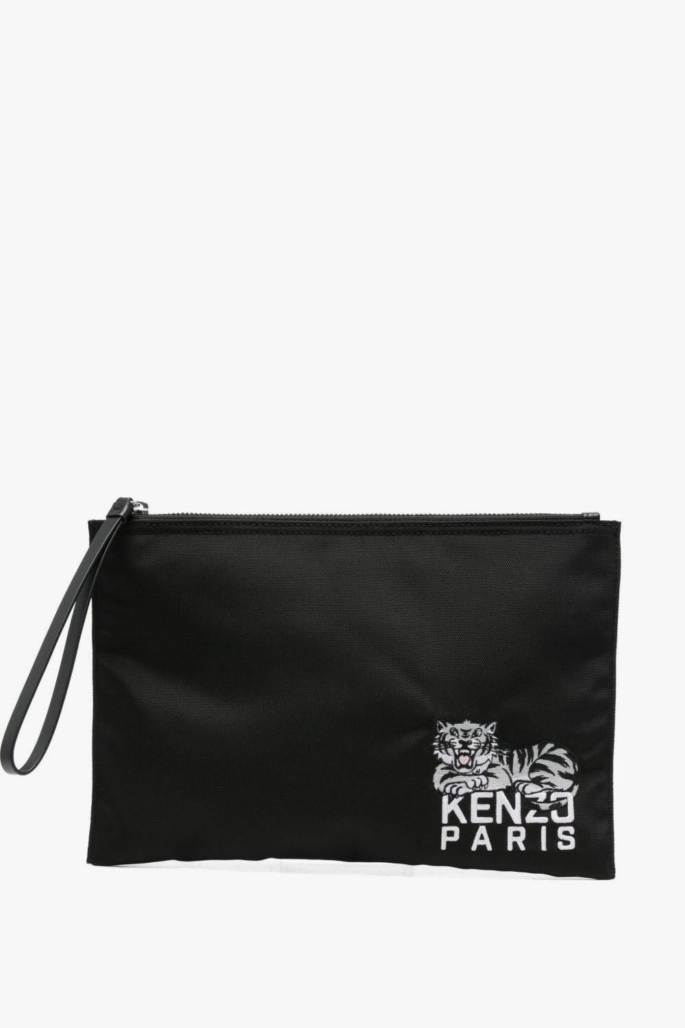 kenzo Clutch Nero Uomo Ricamo Tigre