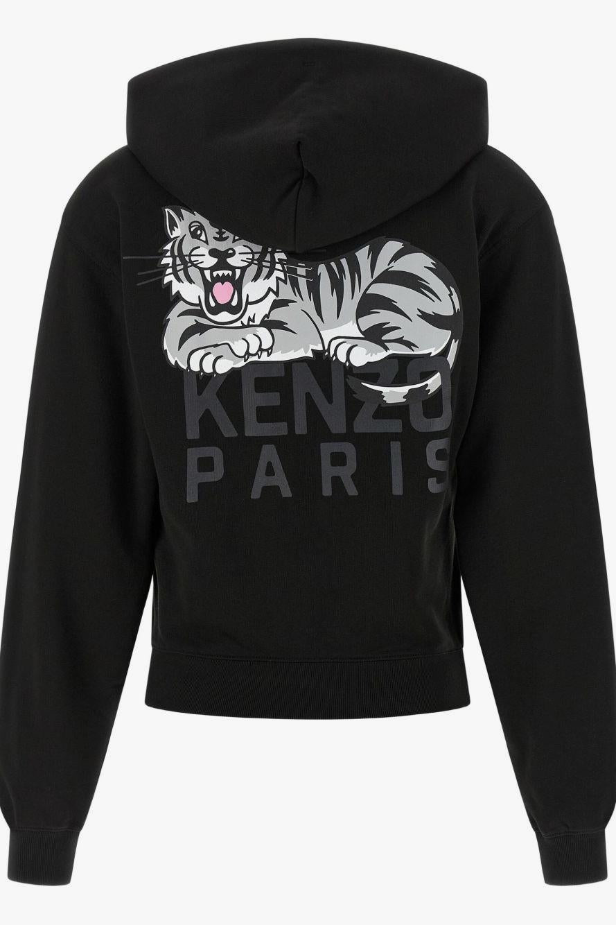 kenzo Felpa Nero Donna Cappuccio e Zip