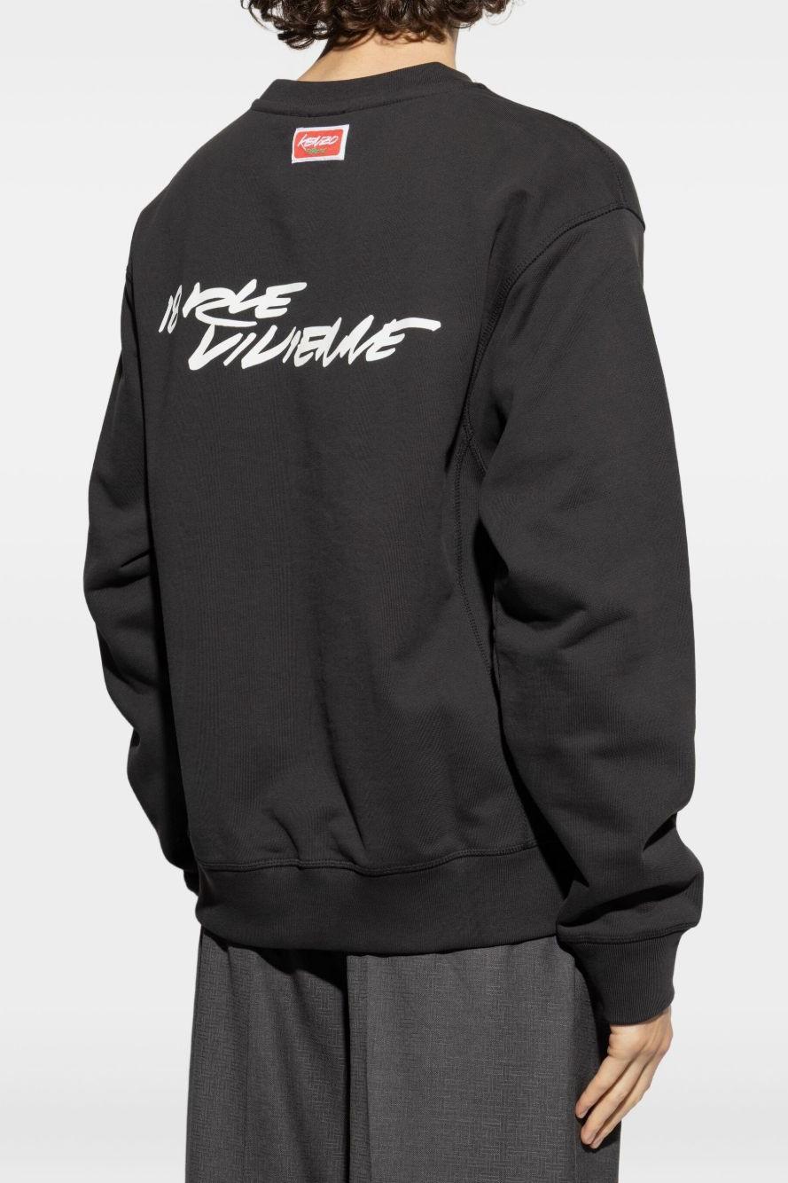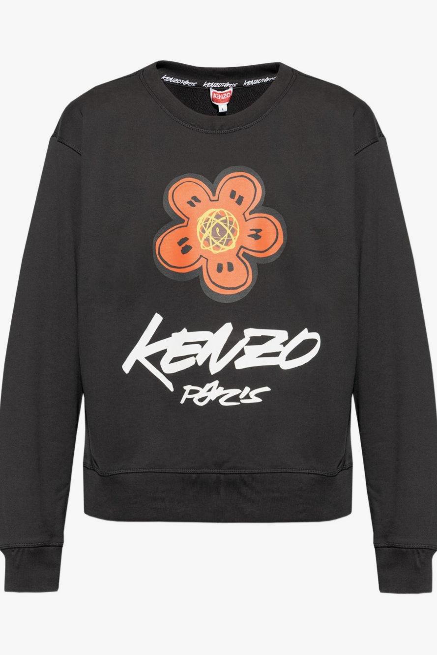 kenzo Felpa Nero Uomo Stampa Logo e Fiore Boke