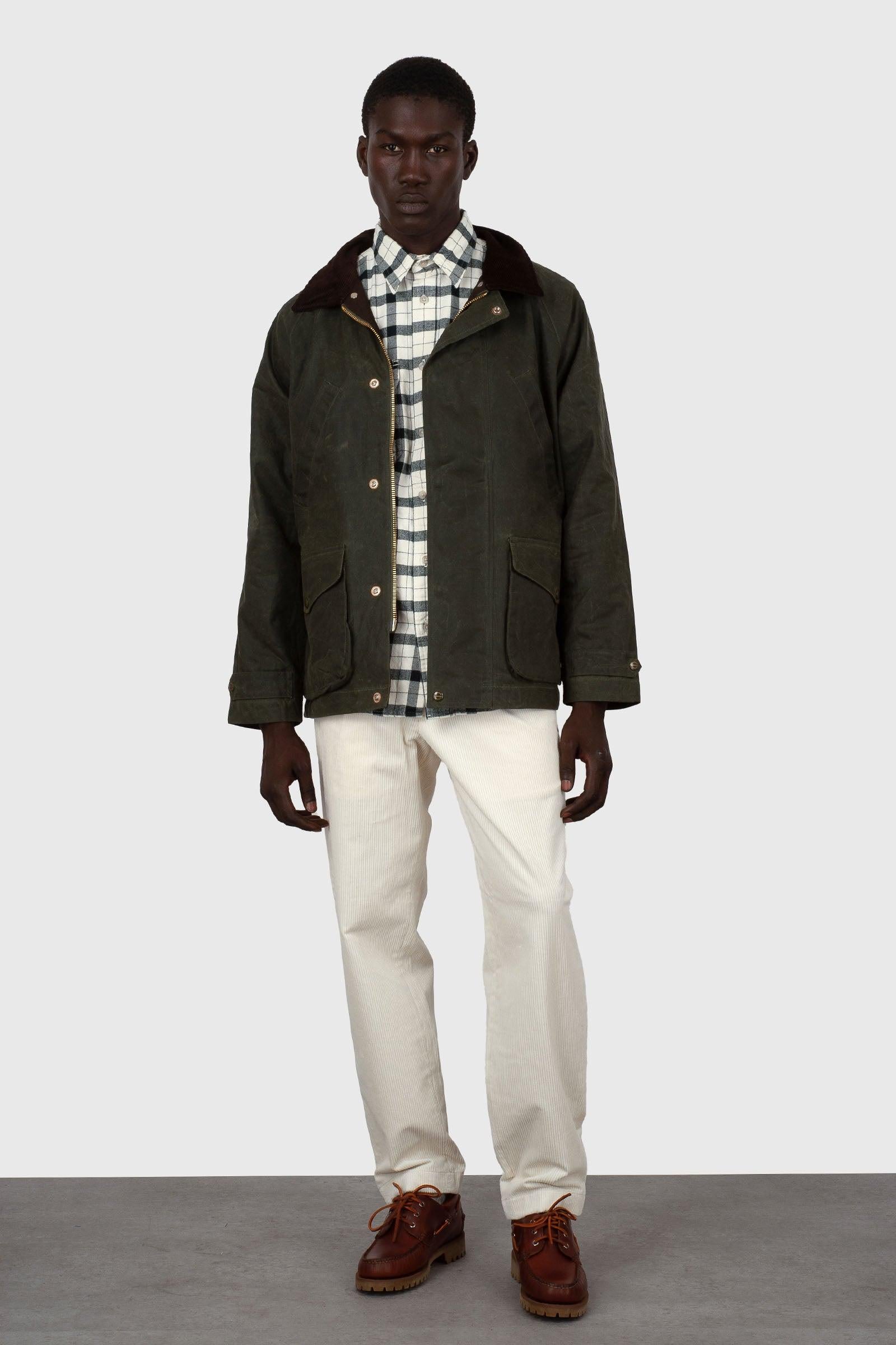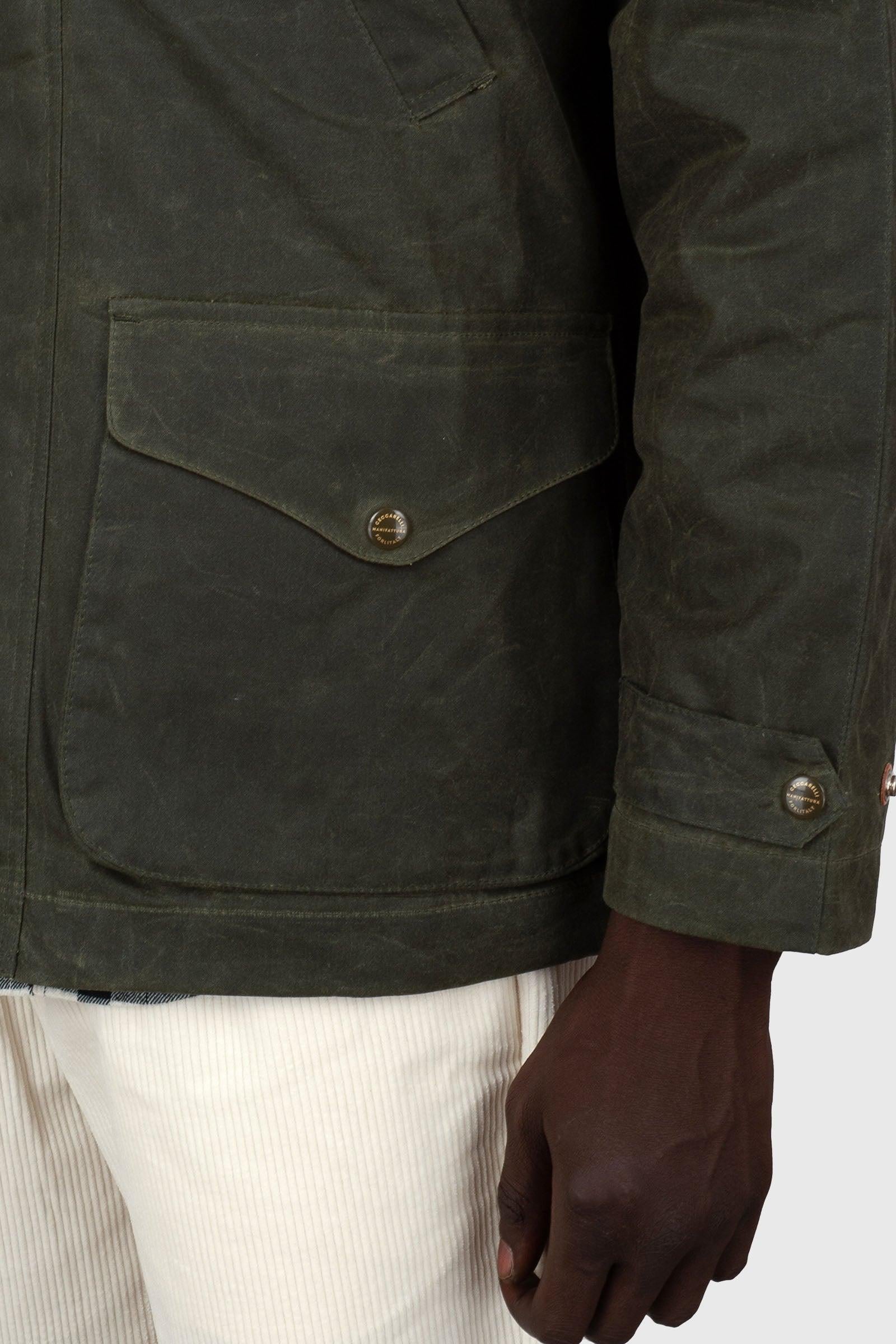 100% Cotone Paraffinato Idrorepellente e Traspirante Fodera corpo: 100% CotoneGiacca di medio peso perfetta ad inizio stagione, relizzata in cotone paraffinato idrorepellente, ottima nelle giornate piovose. Il filo delle cuciture è idrorepellente così da aumentare la resistenza alla penetrazione della pioggia. La giacca ha una fodera interna, una tasca interna di sicurezza con zip e due spacchi posteriori per essere più comodi quando ci si siede, per esempio, in auto e un bottone a pressione per bloccarli quando si cammina. Il collo è in morbido velluto, sul davanti ha in basso due ampie tasche con pattine e bottoni a pressione, due comode tasche scaldamani in alto. La chiusura frontale ha una zip con doppio cursore ed una patta antivento con bottoni a pressione. A lato della zip, sotto la patta frontale, ha una tasca di sicurezza con zip. Bottoni a pressione logati.Prodotto in Italia con passione.N.B.: Le taglie riportate sul sito sono taglie italiane.SKU: 7071-WXDARK GREEN/FW25