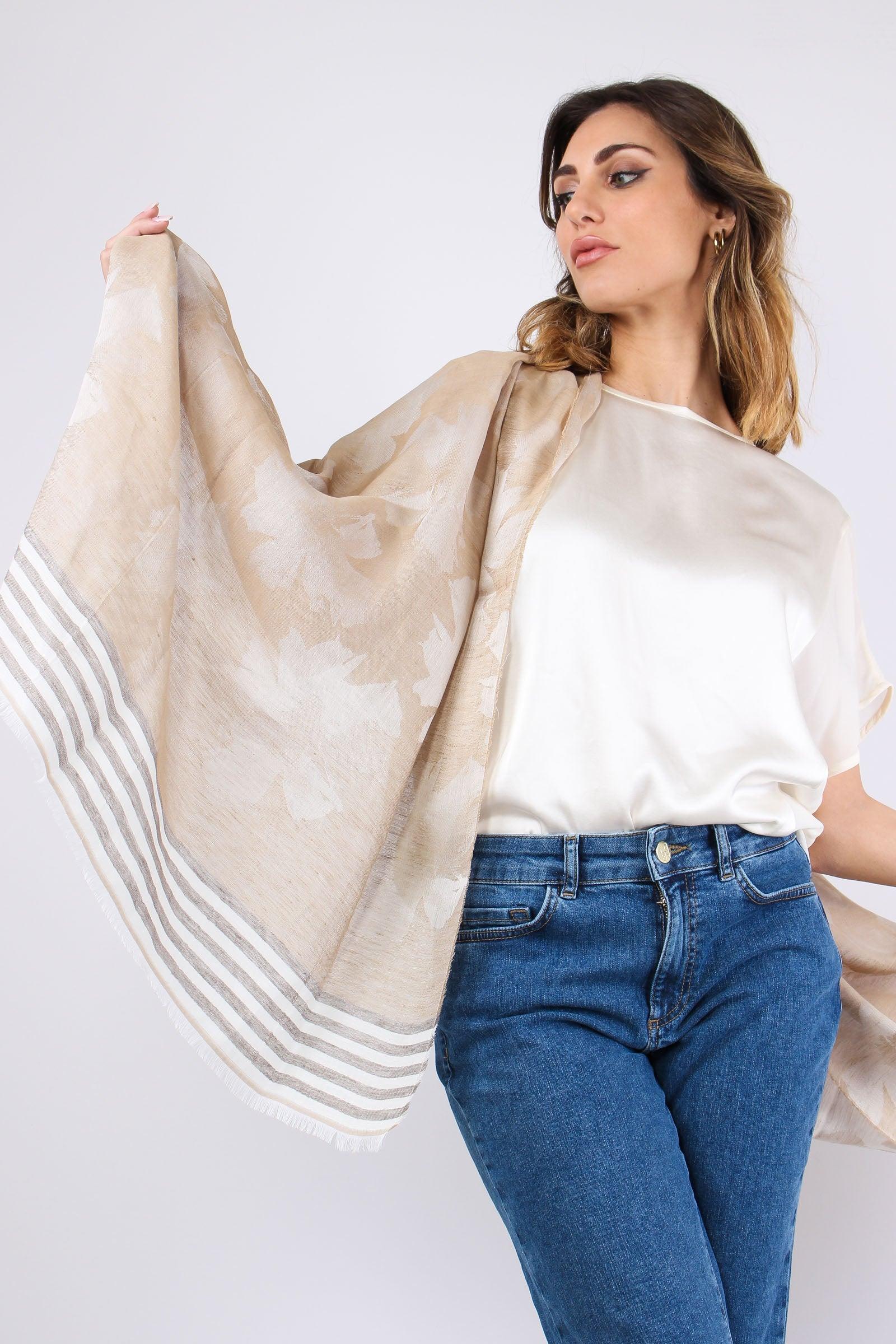 manila grace Foulard Fantasia Fiori Lino Fieno