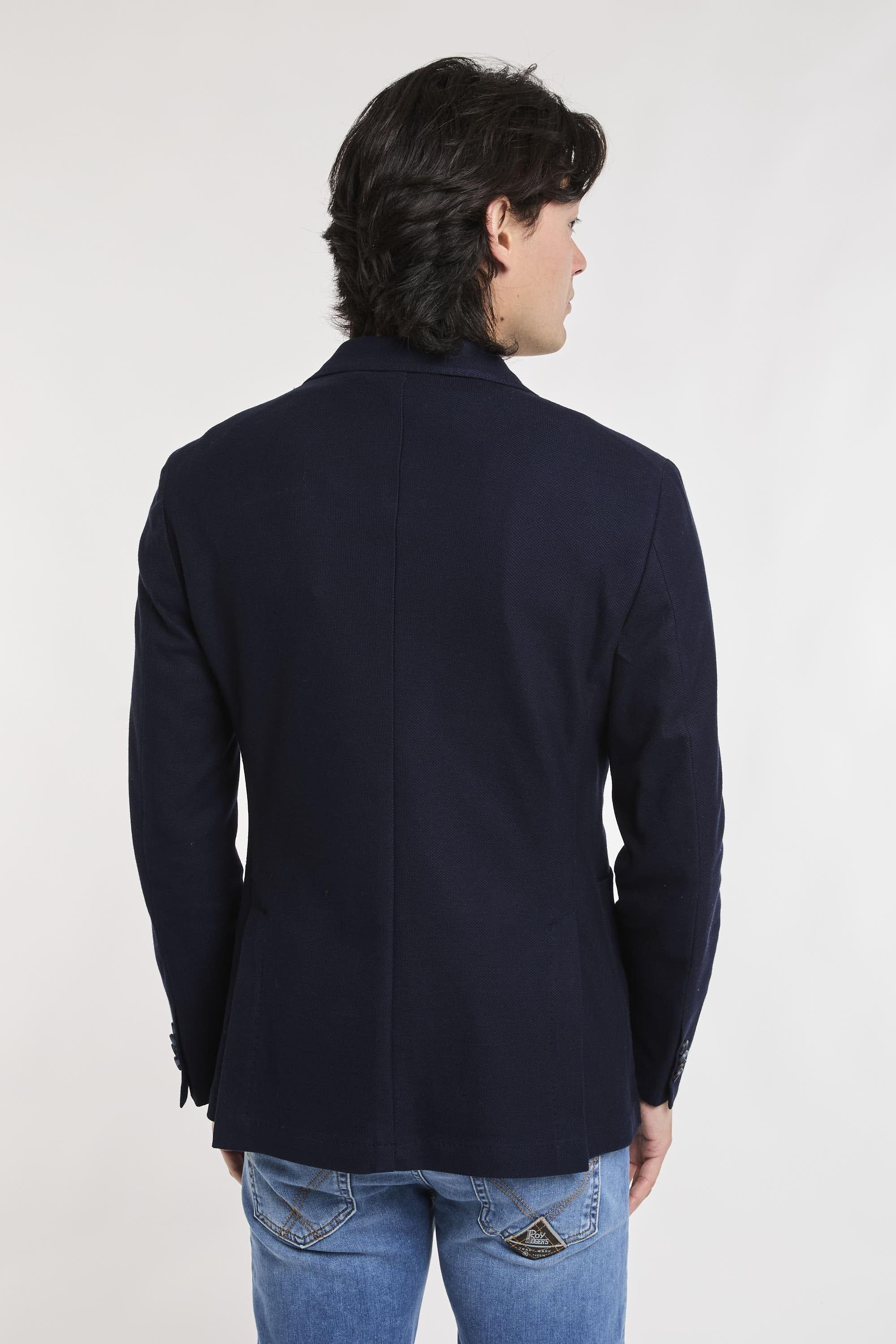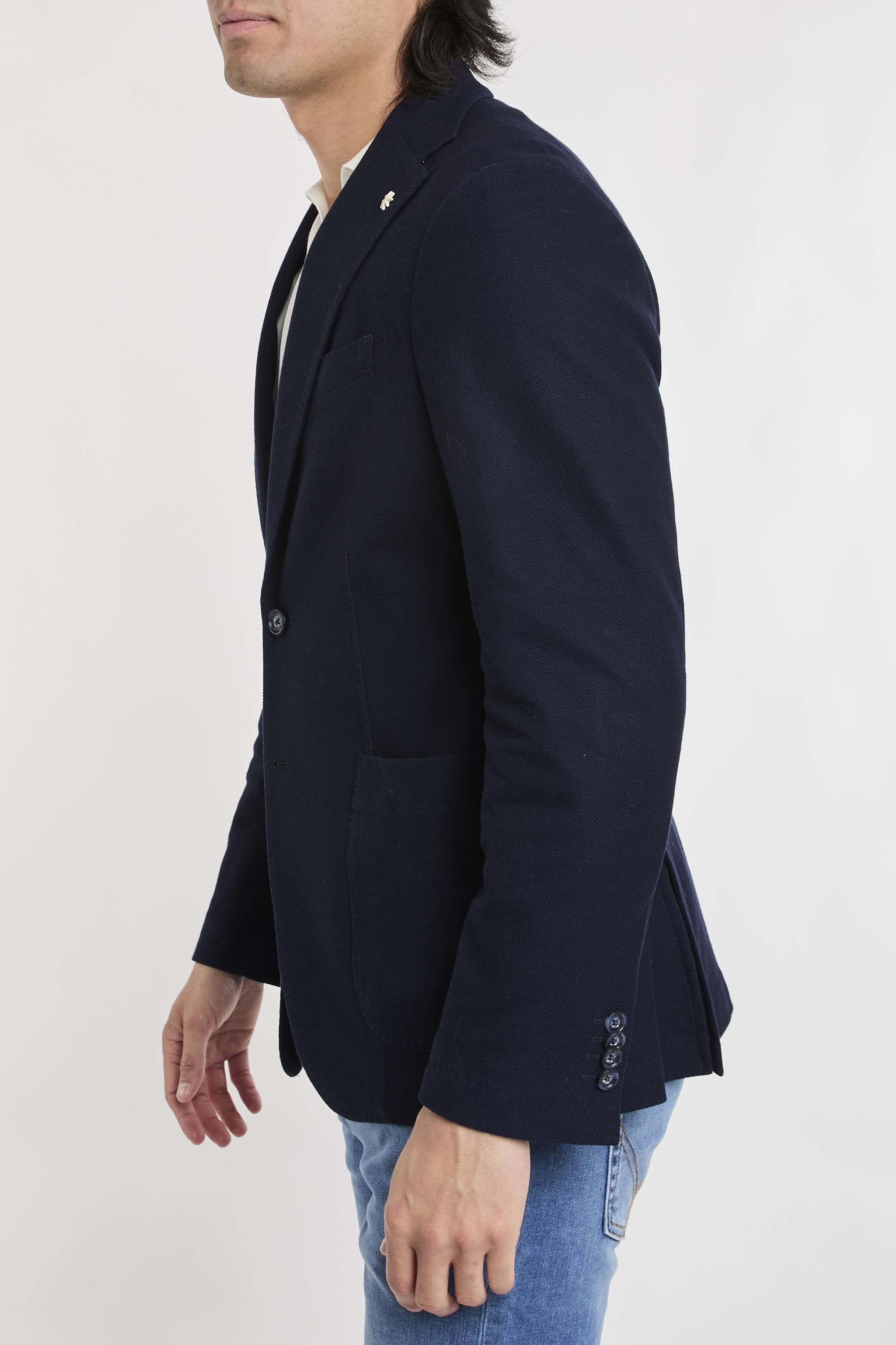 Giacca Nuvola monopetto sfoderata, due tasche a toppa e un taschino frontali, due spacchi sul retro, quattro bottoni ai polsi, finiture con impunture. Il modello è alto 187 cm e indossa la taglia 50.Materiale: 100% Cotone
