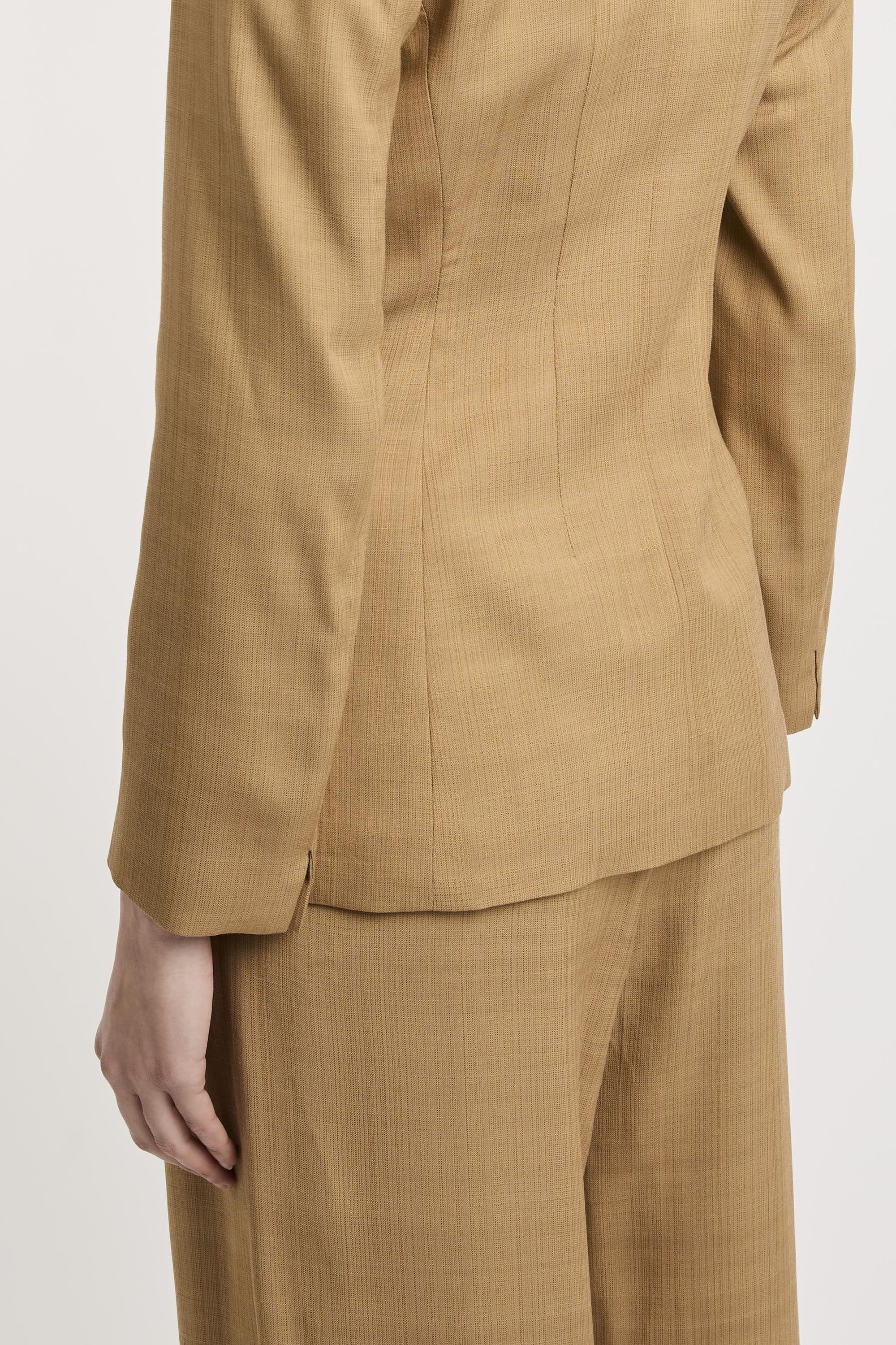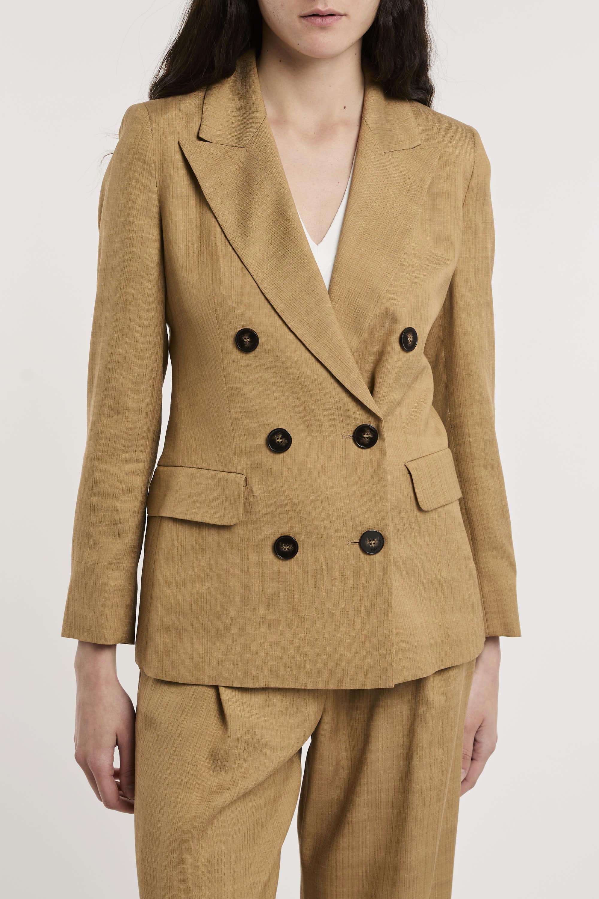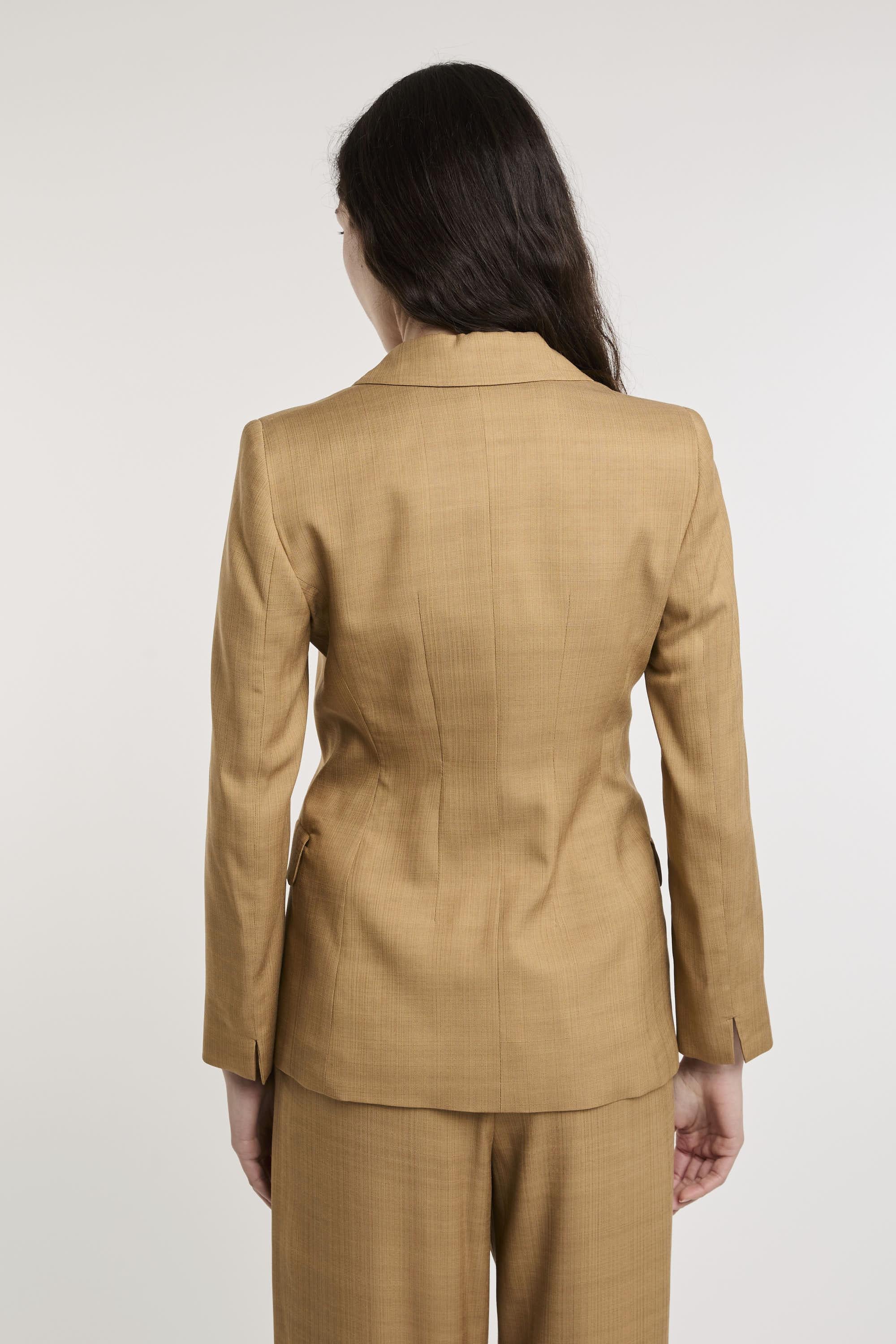 Raffinato e contemporaneo, questo blazer in tessuto fiammato di pura viscosa è un capo essenziale per chi ama un’eleganza disinvolta. Il fit semi aderente valorizza la silhouette senza costringere, rendendolo un’ottima scelta sia per look formali che per outfit più rilassati.Il design doppiopetto con bottoni a vista e il rever classico conferiscono un tocco di carattere, mentre la struttura foderata assicura un'ottima vestibilità. Estremamente versatile, si abbina con disinvoltura a un abito a tubino per un'eleganza sofisticata, così come a jeans e t-shirt per un look più casual ma curato.# Tessuto fiammato di pura viscosa, leggero e raffinato.# Fit semi aderente, per una vestibilità armoniosa.# Scollo con rever, per un tocco di classe senza tempo.# Chiusura doppiopetto con bottoni a vista, dettaglio di stile.# Capo foderato, per maggiore comfort e struttura# Composizione: 100% viscosa.# Composizione fodera: 64% acetato, 36% poliestere.