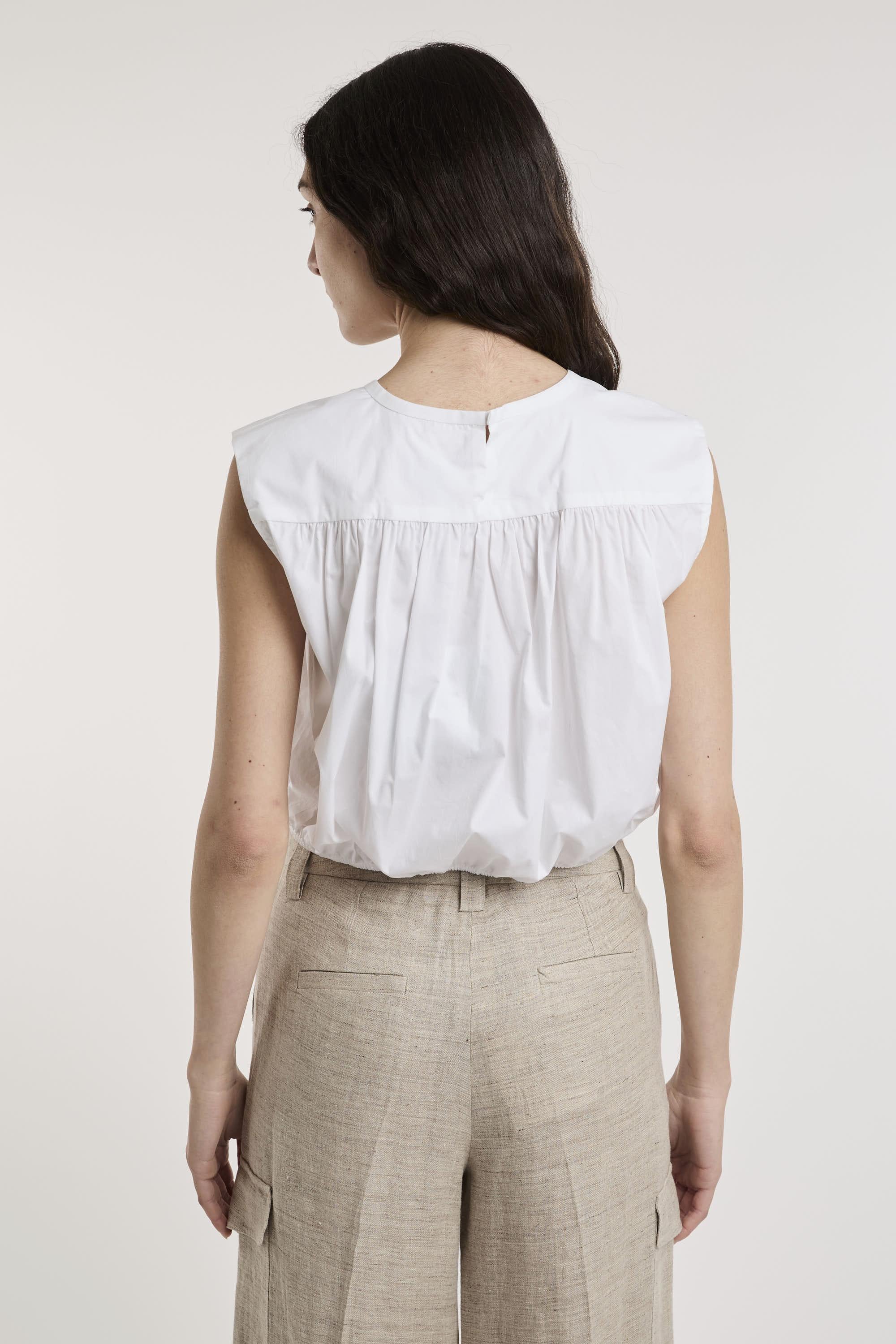 Leggera, raffinata e dall’animo contemporaneo, questa blusa in popeline di cotone stretch è l’alleata perfetta per chi ama uno stile essenziale ma ricercato. La sua linea fluida accarezza la silhouette con naturalezza, mentre le arricciature su spalle e schiena aggiungono un tocco delicato e femminile.Il design sofisticato si arricchisce di dettagli unici: lo scollo stondato con apertura a goccia e bottone posteriore dona un tocco raffinato, mentre il carré sulle spalle regala struttura e movimento. Il vero protagonista del modello è l’oblò sagomato al fondo, un elemento di stile contemporaneo che valorizza la figura con un tocco di originalità. La coulisse regolabile con inserto elastico sul retro permette di adattare la vestibilità, enfatizzando il punto vita senza rinunciare al comfort.Realizzata in cotone biologico, questa blusa non è solo sinonimo di qualità e morbidezza, ma rappresenta anche una scelta consapevole per uno stile che rispetta l’ambiente.# Composizione: 98% cotone, 2% elastan.# Blusa in popeline di cotone stretch.# Linea morbida.# Scollo stondato con goccia e bottone posteriori.# Carré su spalle e schiena con arricciature.# Inserto elastico sul retro e coulisse con dettaglio circolare al fondo.