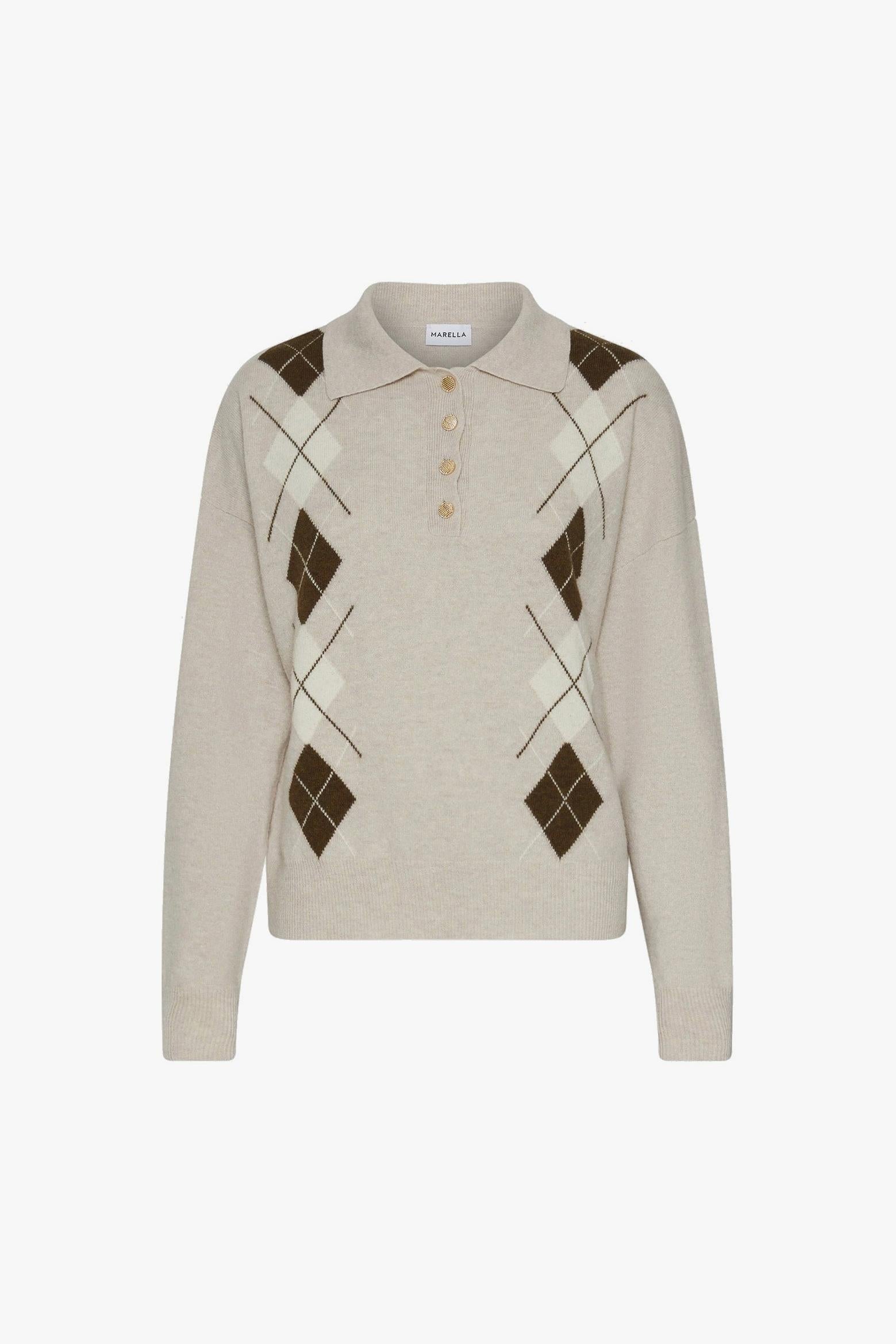 marella Maglia a polo "Caviale" in lana misto cashmere con intarsi