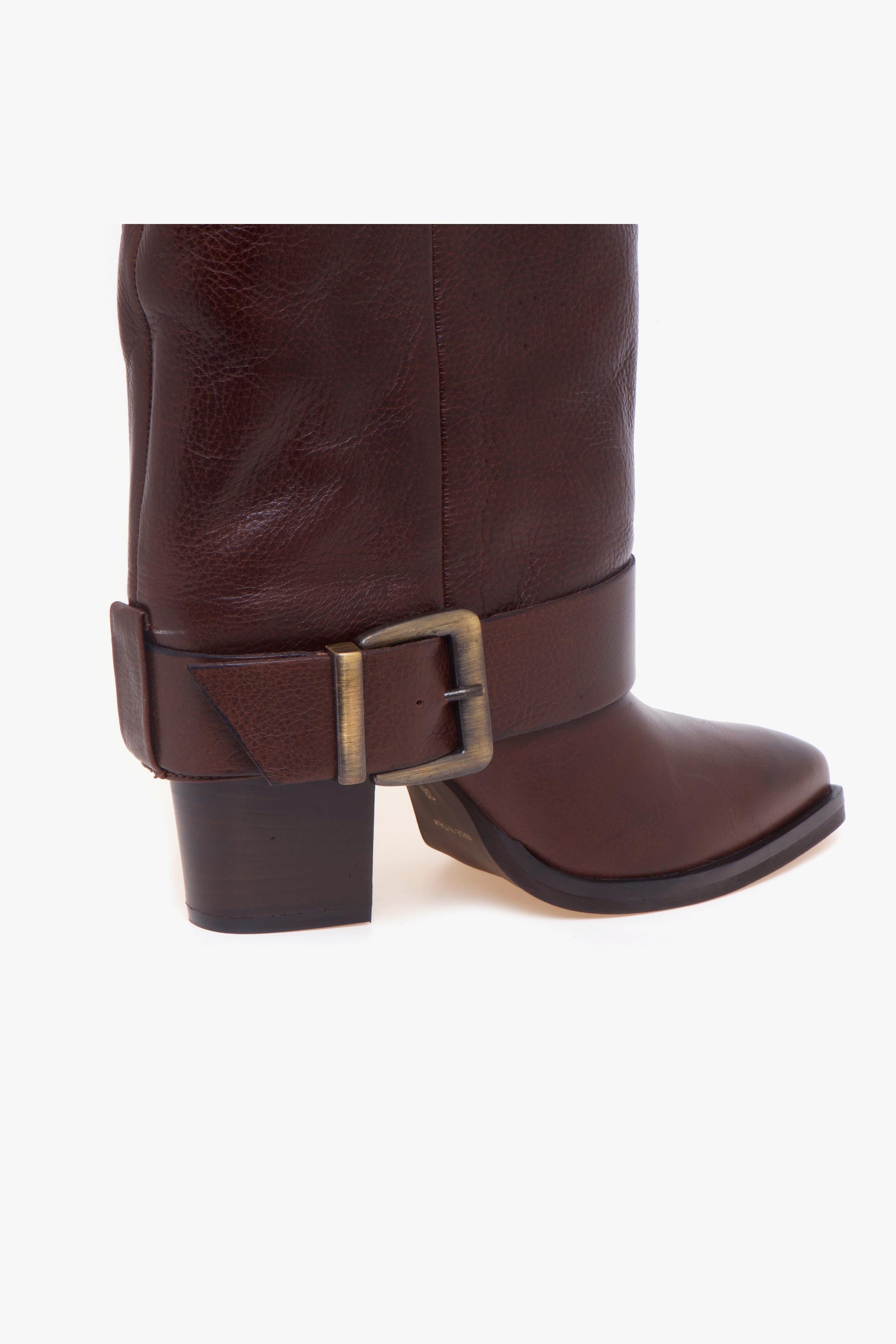 Carismatico e ricco di personalità, lo stivale Martina T è realizzato in pelle dal leggero effetto martellato, che dona carattere e un finish sofisticato. Il dettaglio distintivo è il gambale con risvolto, un elemento di stile che lo rende immediatamente riconoscibile e perfetto per look grintosi ma adatti anche alla serai.La forma leggermente affusolata richiama l’ispirazione texana, reinterpretata in chiave urban-chic per un risultato moderno e versatile. A completare il design, un cinturino con fibbia posizionato sul collo del piede, dettaglio funzionale ed estetico che aggiunge un tocco fashion.Il tacco da 80 mm slancia la silhouette mantenendo un look deciso e armonioso. La fodera in pelle e la suola in gomma garantiscono comfort e stabilità, rendendo questo stivale ideale per outfit di personalità, dal giorno alla sera.Dettagli prodotto:# Pelle effetto martellato.# Gambale con risvolto.# Forma leggermente affusolata stile texano.# Cinturino con fibbia sul collo del piede.# Tacco 80 mm.# Tomaia, fodera e sottopiede in pelle.# Suola in gomma.# Made in Italy.