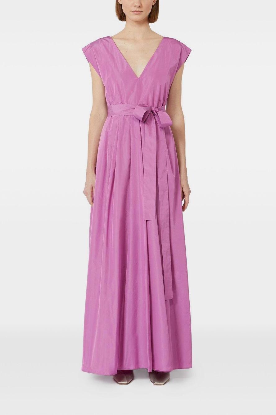 Proposto in una delicata tonalità pink, presenta un’elegante scollatura a V, dettagli decorativi e una cintura coordinata da annodare in vita che esalta le forme con armonia. Lo spacco laterale aggiunge un tocco moderno e sensuale al design.