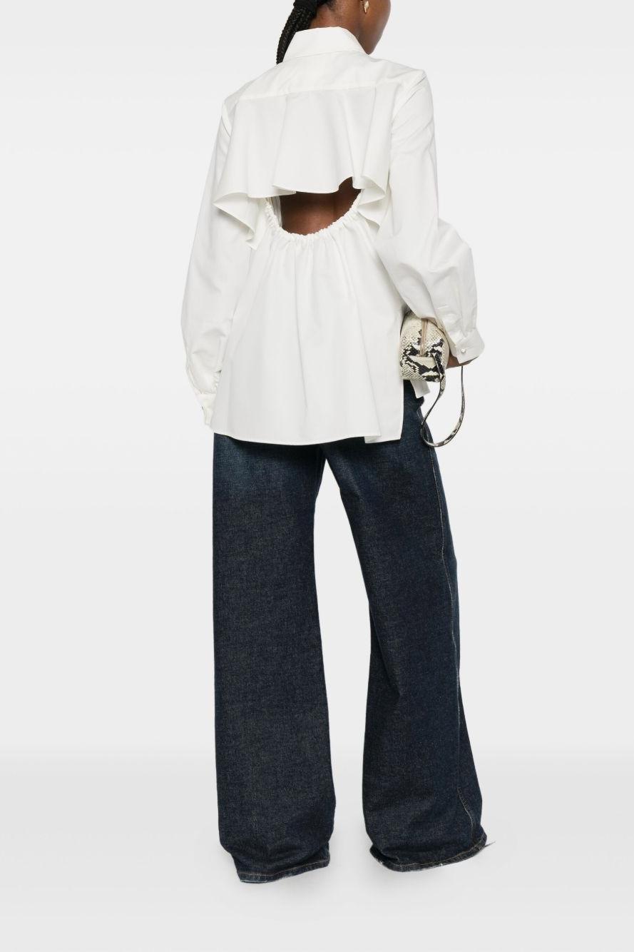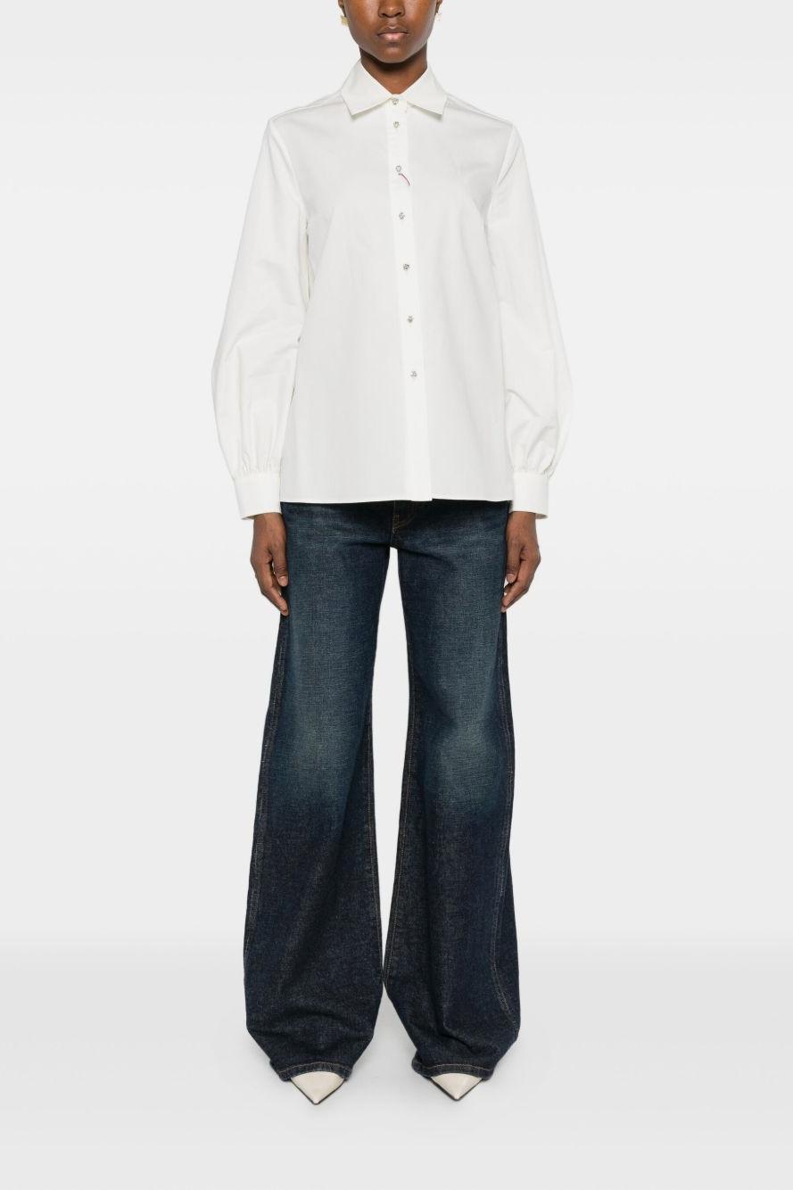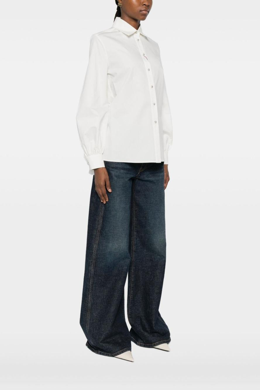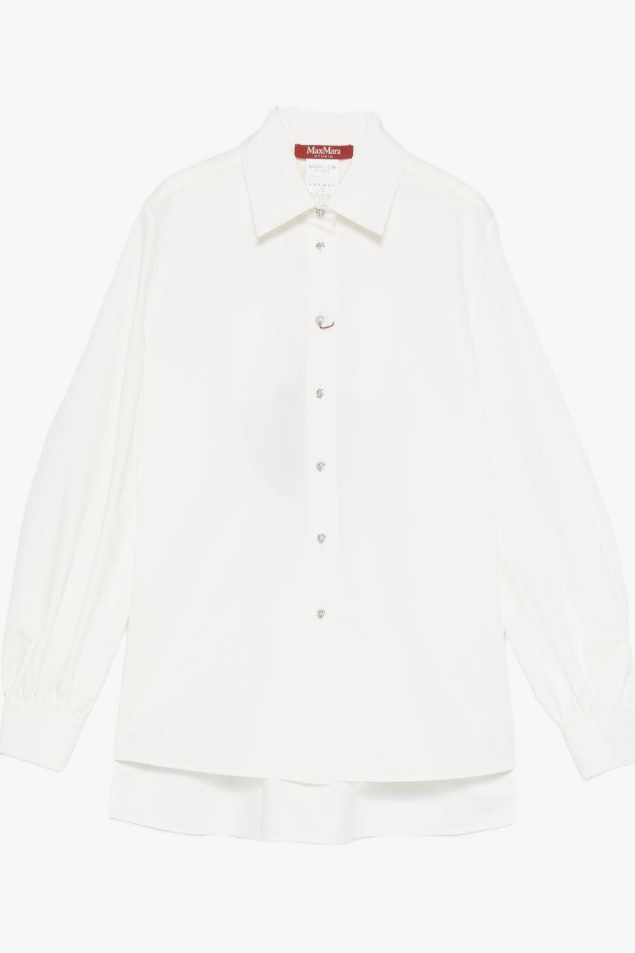 Caratterizzata da un dettaglio a strati e cut-out discreti che aggiungono movimento e originalità, presenta chiusura frontale con bottoni bianchi, colletto classico, maniche lunghe e polsini con bottoni. Perfetta per look eleganti dal tocco contemporaneo, incarna lo stile distintivo e la qualità sartoriale di Max Mara.