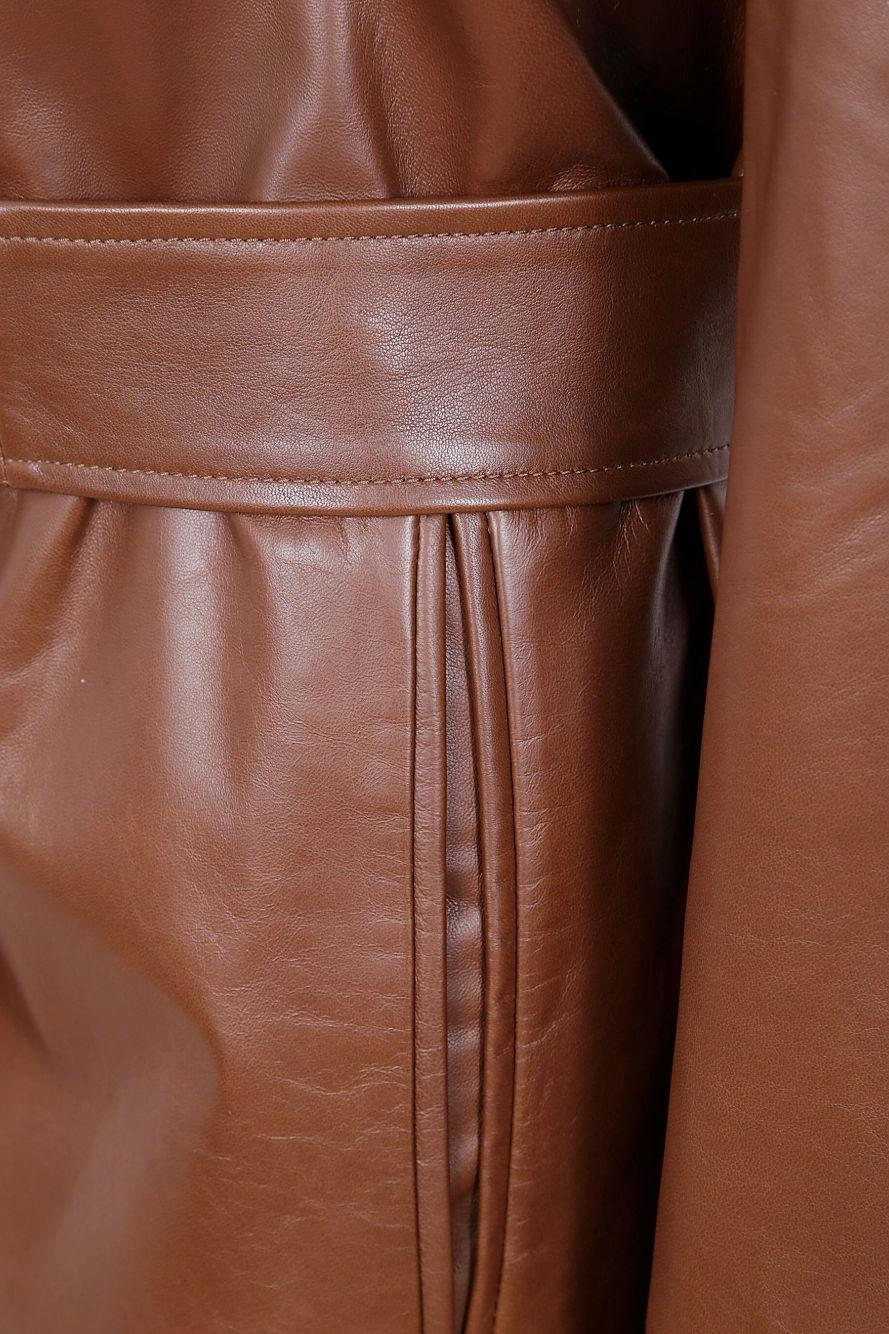 Proposta in una raffinata tonalità marrone, presenta una chiusura a bottoni, colletto a punta e tasche a filetto, mentre la cintura coordinata valorizza la silhouette con un tocco femminile e deciso. La fodera in poliestere ed elastam garantisce libertà di movimento e una vestibilità confortevole.