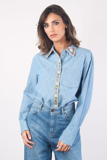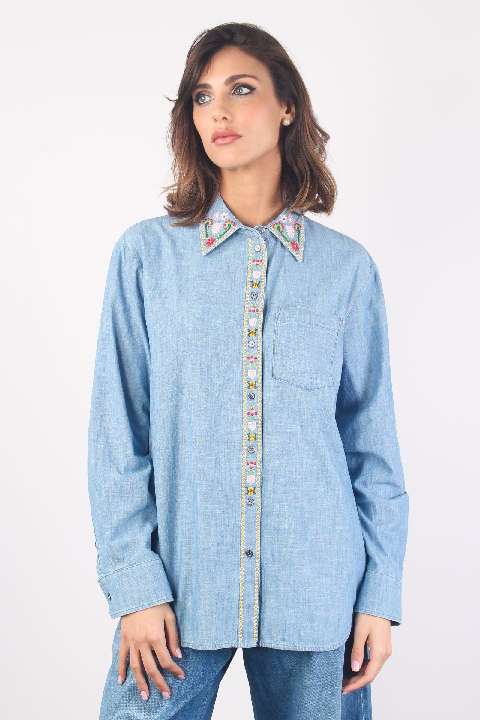 max mara Udine Camicia Chambry Ricamo Denim Chiaro