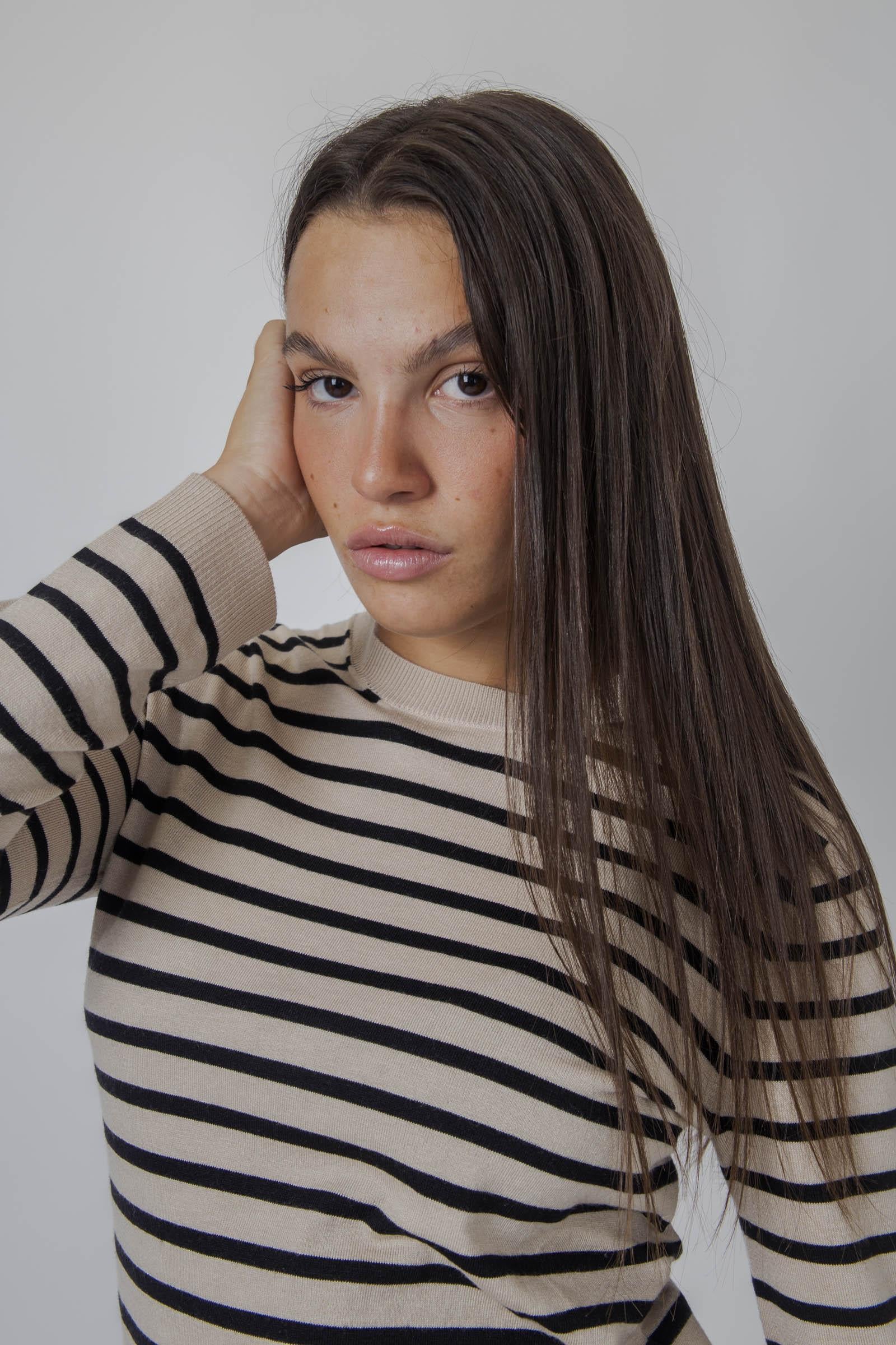 max mara weekend Max Mara Maglia Girocollo Riga Beige/nero Donna
