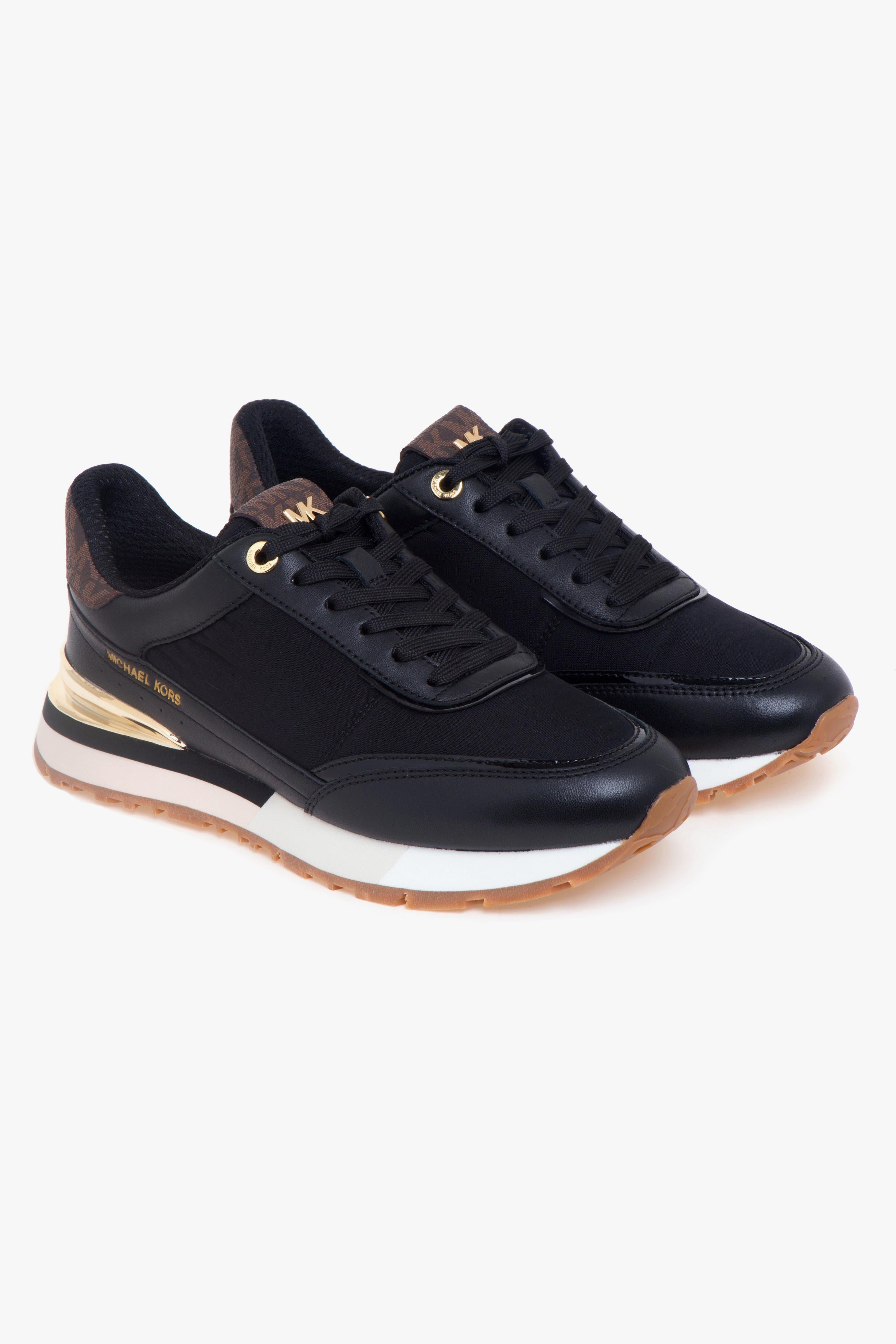Michael Kors “Nova Trainer” unisce richiami running rétro e vocazione urbana in una sneaker pensata per l’uso quotidiano. La tomaia tono su tono in camoscio e tessuto crea un gioco morbido di texture, impreziosito dal talloncino in tessuto monogram MK e dallo spoiler dorato in PVC. Il logo Michael Kors è stampato in oro sul lato per un accento luminoso discreto. Sotto, la suola in gomma mixa gradazioni di bianco/burro con battistrada color caramello a contrasto, assicurando grip e un profilo attuale. Interni in tessuto per una calzata pratica e leggera.Caratteristiche principali:# Sneaker Michael Kors “Nova Trainer”.# Design ispirato al running reinterpretato in chiave casual.# Tomaia in camoscio e tessuto tono su tono.# Talloncino in tessuto monogram MK.# Spoiler posteriore in PVC dorato.# Logo Michael Kors stampato in oro sul lato.# Suola in gomma: gradazioni bianco/burro con battistrada caramello.# Fodera in tessuto.# Sottopiede in tessuto.