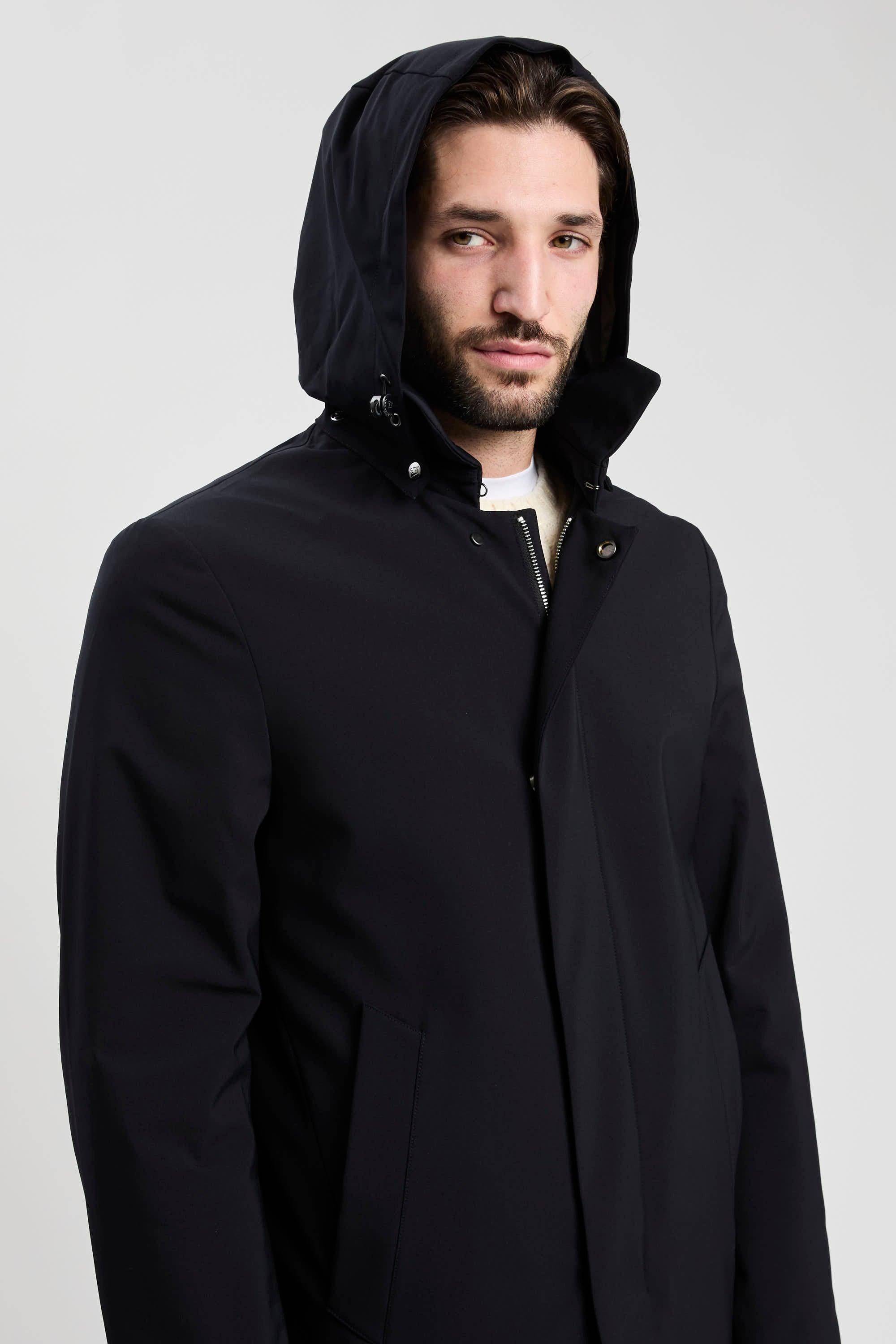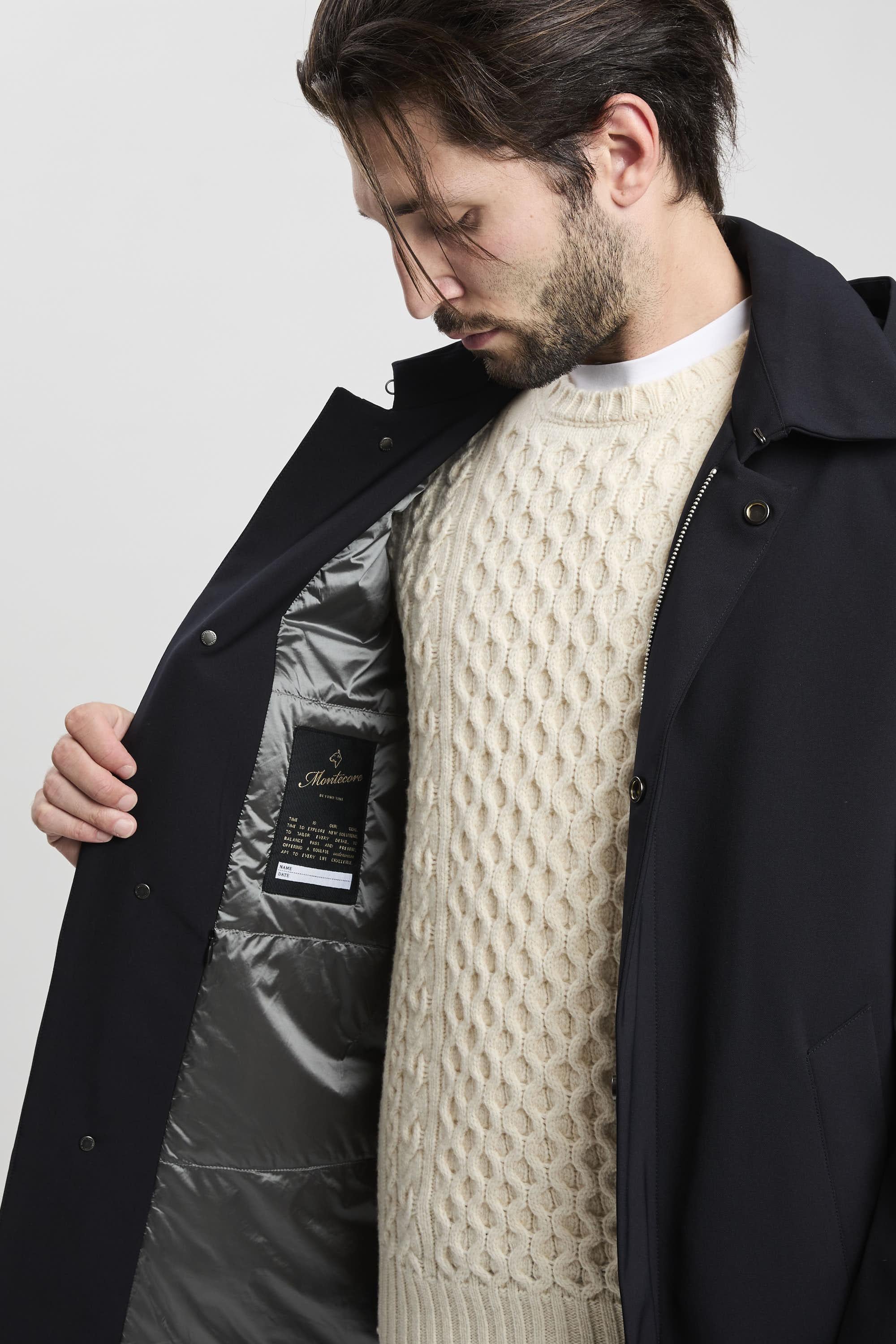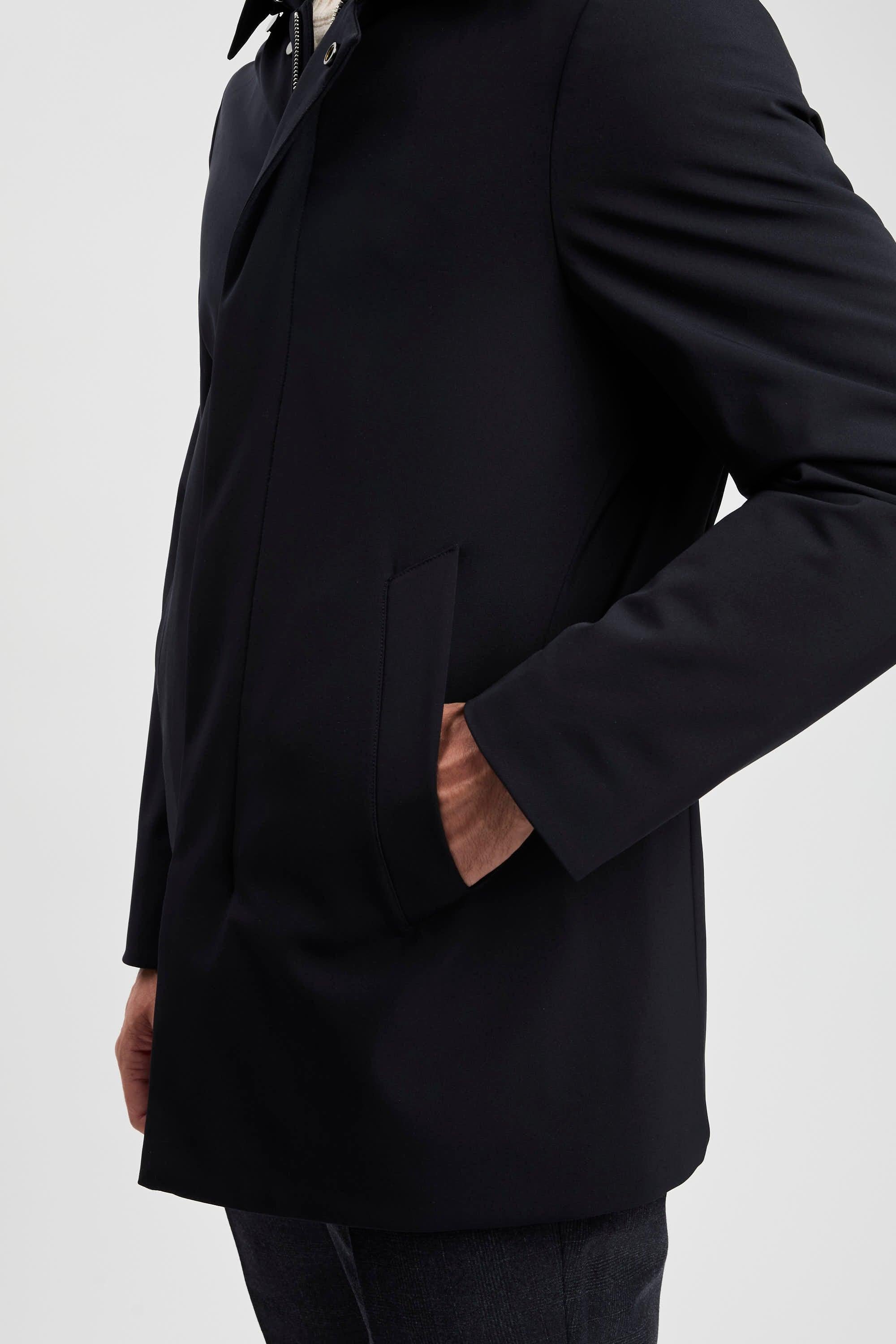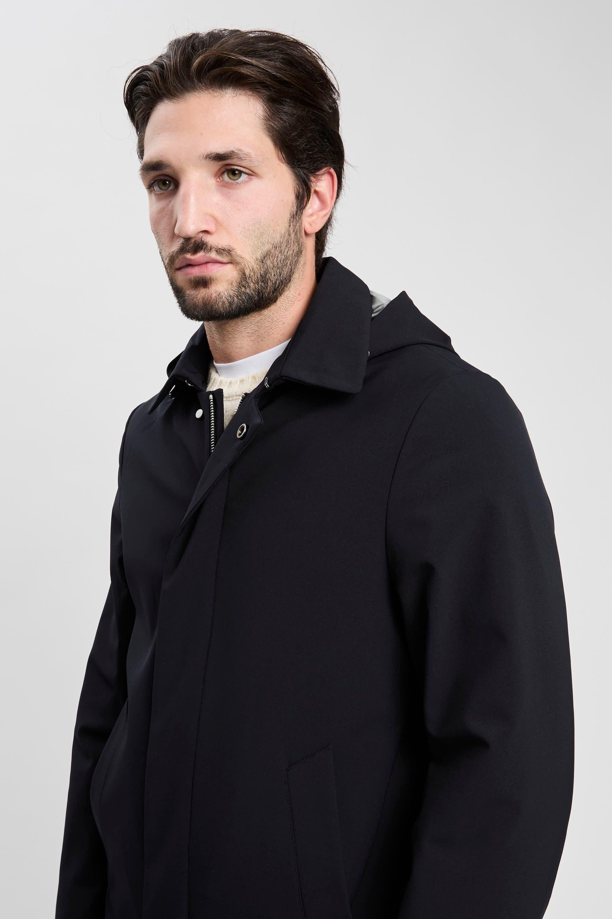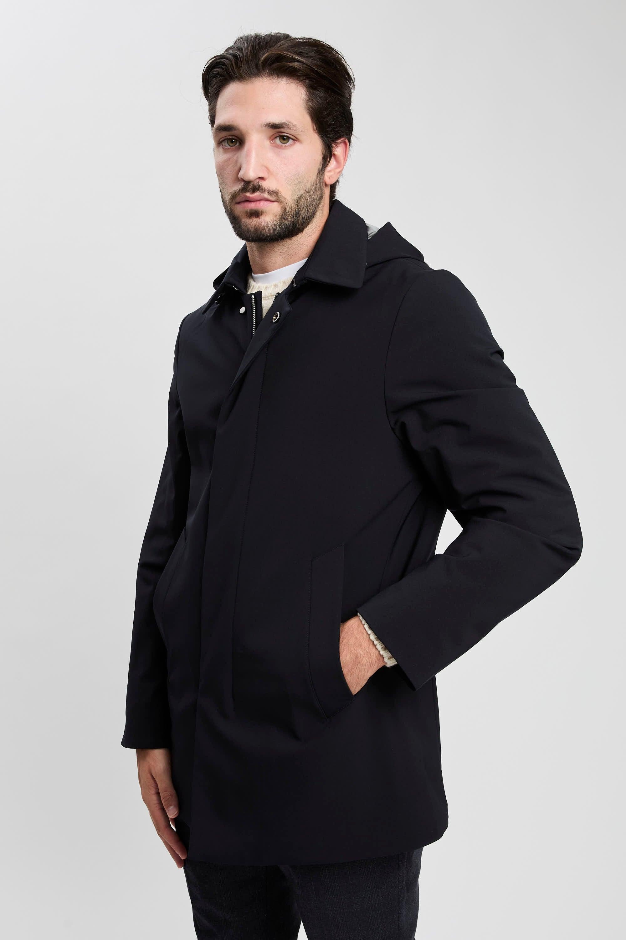 - Impermeabile con cappuccio- Cappuccio regolabile con coulisse e removibile- Chiusura nascosta con zip e bottoni a pressione- Tasche lateraliColore: BluIl modello indossa la taglia 50, è alto 1.84 cm e pesa 80 kg.STAGIONE: AUTUNNO INVERNO 2025/2026COD: F09MUCX721-185-89Materiale: 91% Poliestere - 9% ElastanFodera: 100% PoliammideImbottitura: 90% Piumino - 10% Piuma