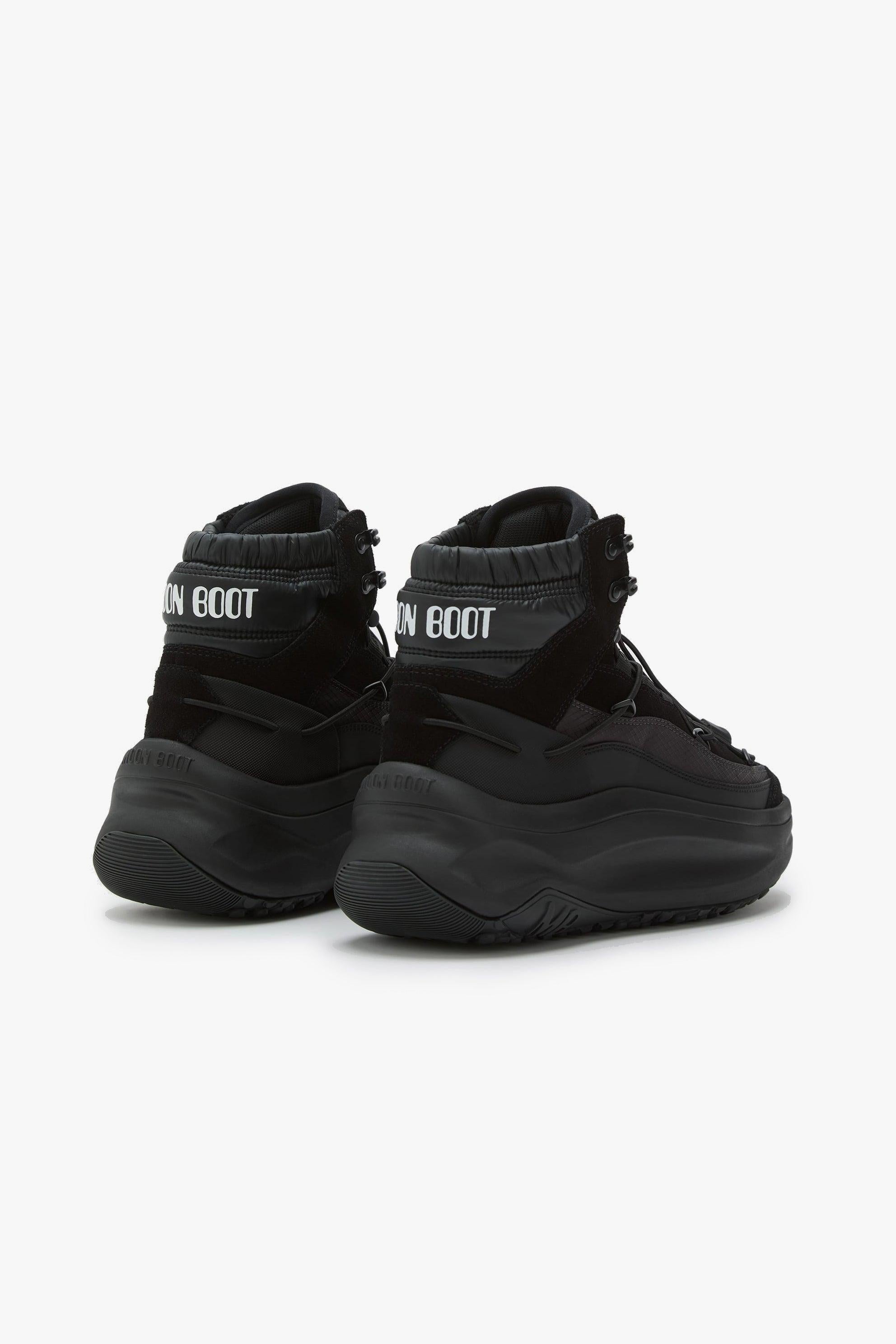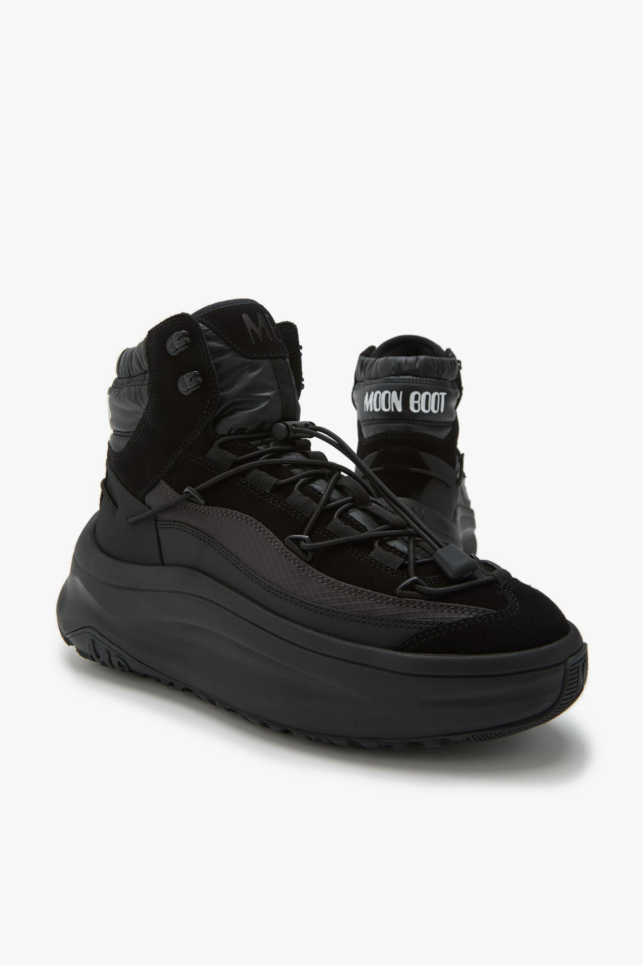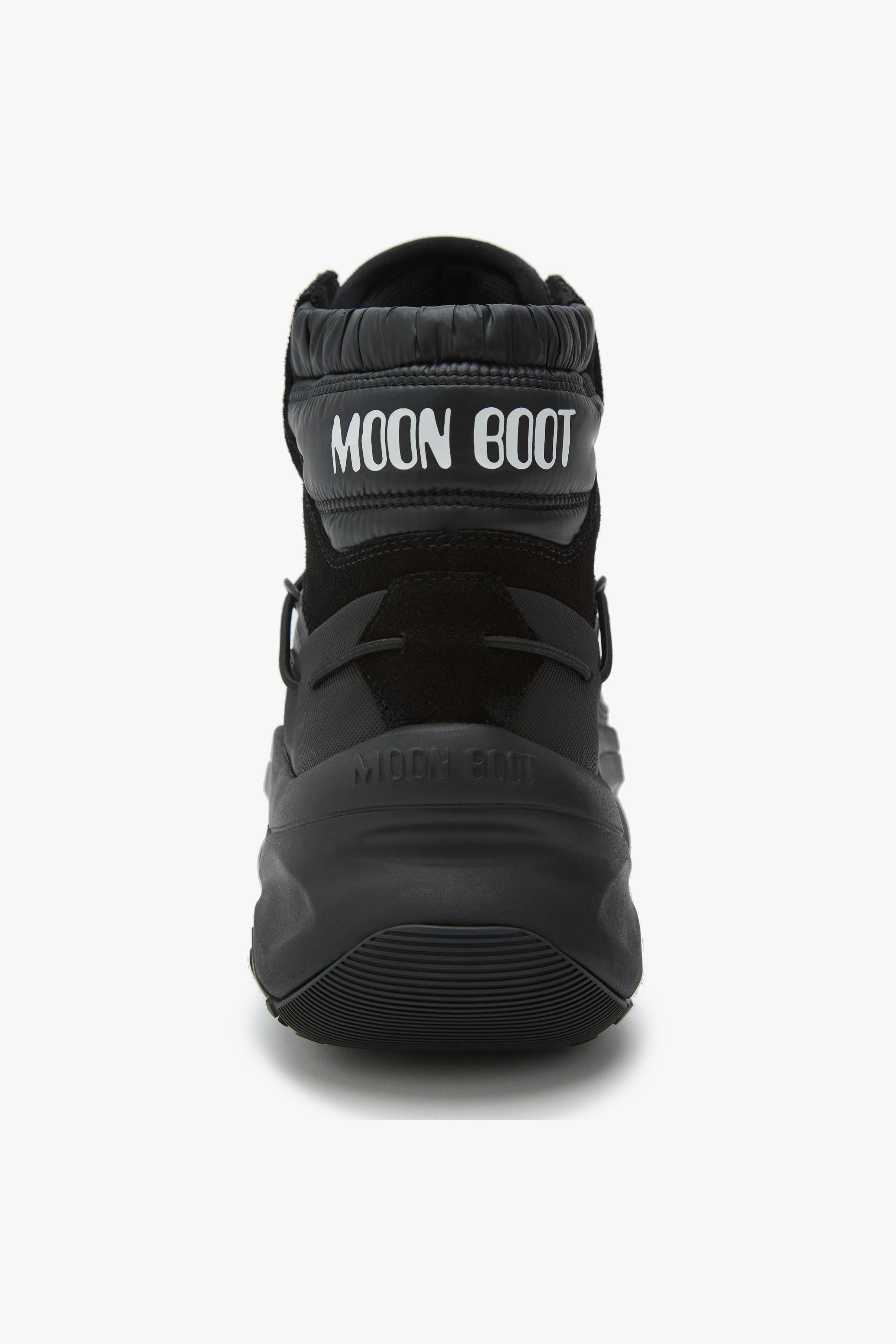 Moon Boot Moon247 Xlace Mid in nero è la sneaker-boot mid-cut che porta il DNA space-age del brand su un terreno più urbano.Le proporzioni voluminose, la suola profilata e l’iconica allacciatura tubolare a incrocio creano un look utility pulito e deciso; sotto, intersuola in EVA e battistrada in gomma termoplastica antiscivolo assicurano leggerezza, ammortizzazione e grip nelle giornate fredde o piovose. Dettagli come occhielli metallici, coulisse di regolazione e logo goffrato sul fondo completano un modello pensato per distinguersi nel commuting e nel tempo libero. Nota fit: calza grande; tra due taglie, scegli la più piccola. Caratteristiche principali:# Modello: Moon247 Xlace Mid · Colore: Black · ID: 80D2490030. # Design mid-cut ispirato all’heritage Moon Boot, con proporzioni iconiche e suola scolpita. # Allacciatura: lacci tubolari a incrocio, occhielli in metallo, coulisse regolabile. # Intersuola in EVA per leggerezza e comfort; battistrada in gomma termoplastica con effetto antiscivolo. # Logo goffrato tono su tono sulla suola. # Taglia & vestibilità: calza grande; se sei tra due numeri, scegli la taglia più piccola. # Materiali: tomaia 46% poliestere, 35% pelle bovina scamosciata, 9% poliuretano; fodera 100% poliestere; suola 85% EVA / 15% gomma termoplastica.