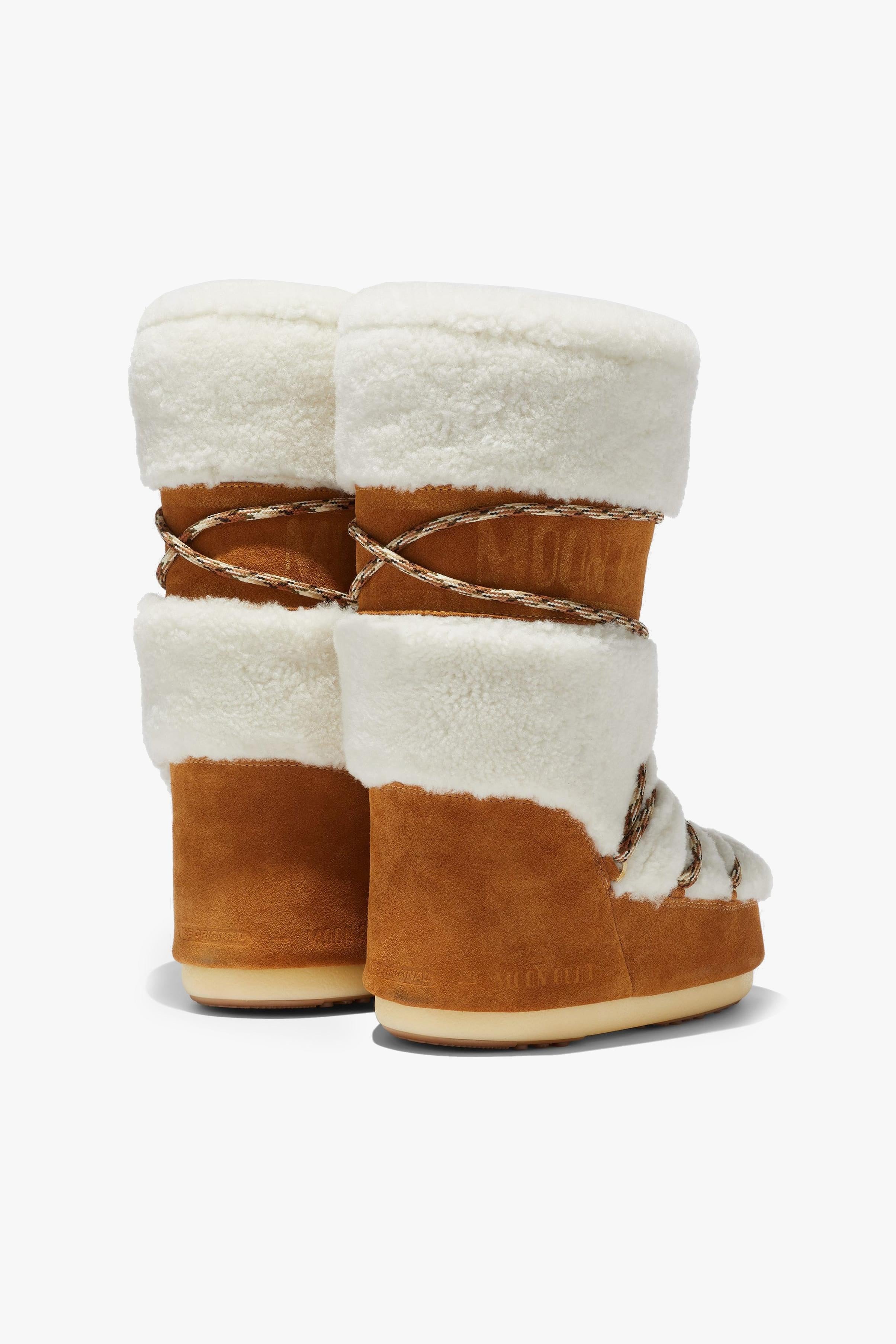 Moon Boot LAB69 Icon Panna in Shearling porta lo spirito après-ski su un nuovo livello di comfort e calore. Realizzato in morbida pelle scamosciata e shearling, reinterpreta l’icona ispirata all’allunaggio del 1969 con finiture ricercate e dettagli funzionali: suola antiscivolo per massima presa, imbottitura isolante che mantiene il piede caldo e trattamento idrorepellente per affrontare neve e pioggia leggera. Il design ambidestro e la calzata multitaglia avvolgono il piede grazie alla fodera in schiuma che si modella all’uso, mentre gli occhielli dorati, i lacci tubolari e le finiture in suede rifiniscono il look con un tocco premium. Caratteristiche principali:# Modello: LAB69 Icon Panna in Shearling · ID: 80D1402610 · Colore Whisky/Off White. # Ambidestro e multitaglia: calzata avvolgente che si adatta a più misure. Consiglio: se sei tra due taglie, scegli la più grande. # 100% idrorepellente con imbottitura isolante per calore e asciutto. # Tomaia: shearling con finiture in pelle scamosciata; stampa logo. # Occhielli in metallo color oro · lacci tubolari incrociati · coulisse regolabile. # Intersuola in TR (gomma termoplastica) · battistrada in gomma antiscivolo. # Materiali: shearling 100% · finiture 100% pelle · fodera 100% poliestere · intersuola 100% TR · suola 100% gomma.