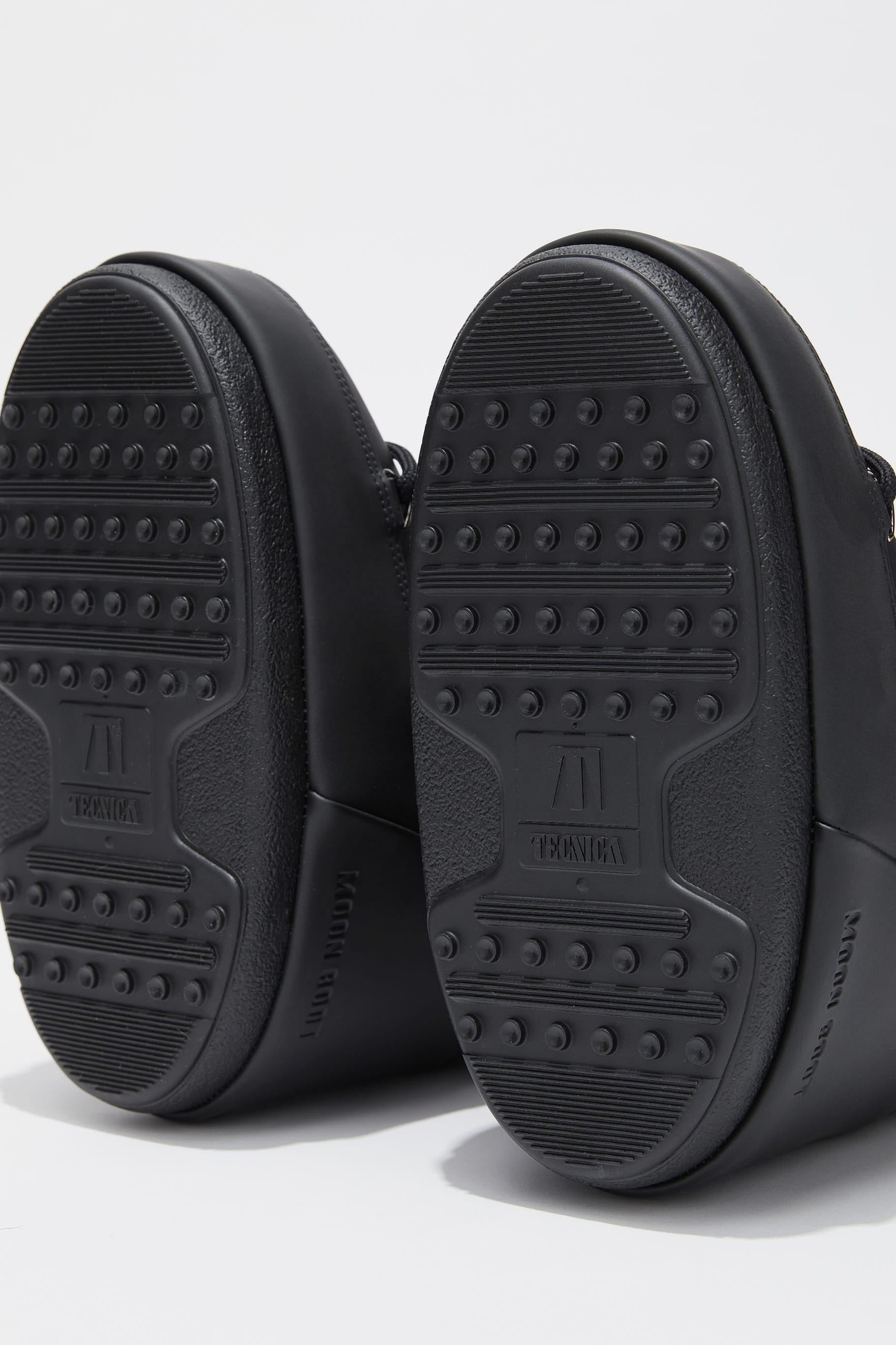 La struttura in gomma assicura protezione e durabilità, mentre l’imbottitura isolante mantiene il piede caldo e asciutto in ogni condizione climatica. Il battistrada in gomma antiscivolo garantisce massima presa su tutte le superfici. Il design genderless, ambidestro, multitaglia e slip-on offre praticità immediata; i dettagli iconici — fascia con logo, lacci tubolari decorativi a incrocio, coulisse regolabile e occhielli in metallo color argento — completano un’estetica decisa e contemporanea.