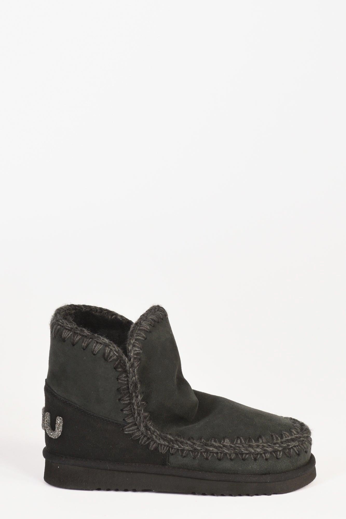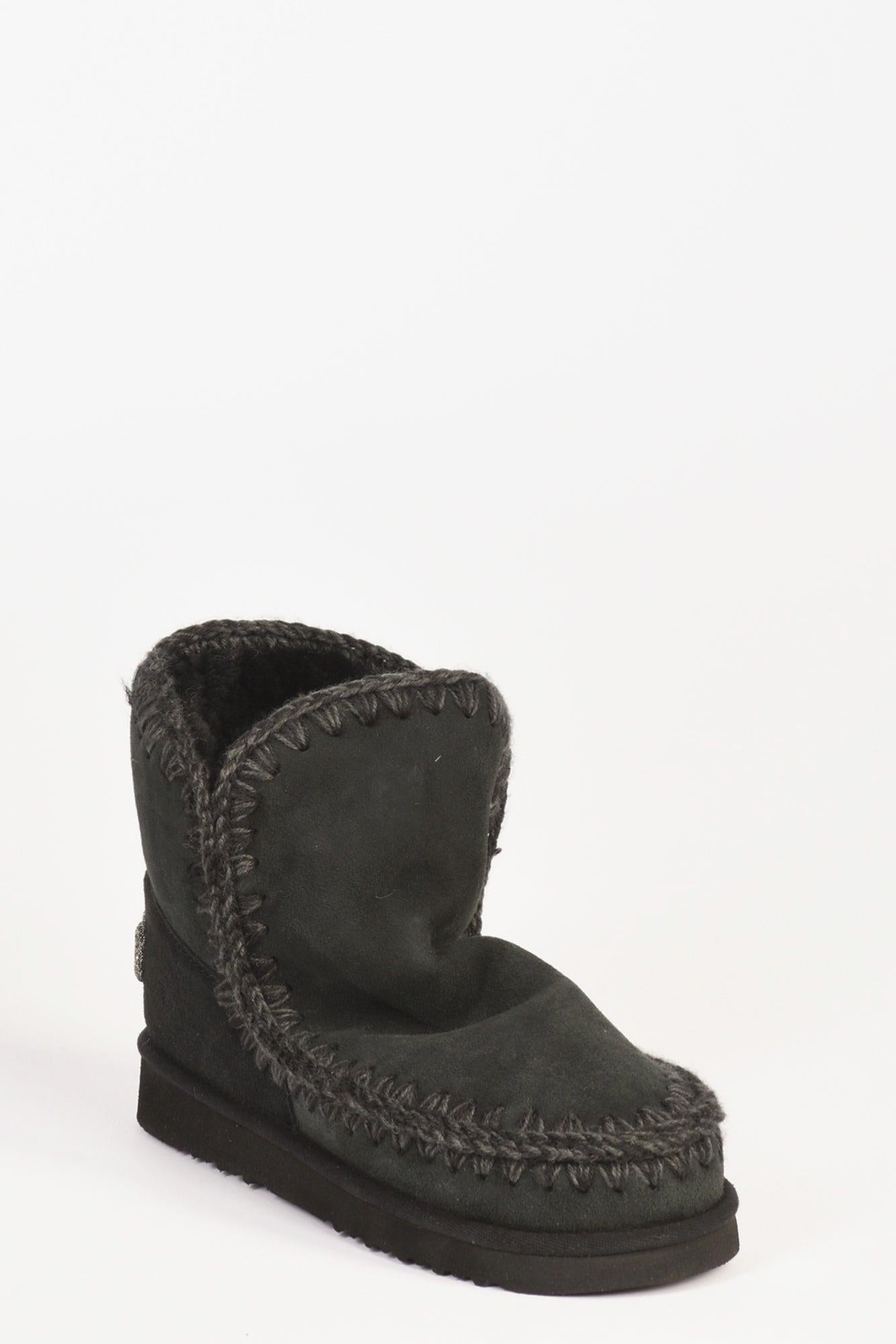 Stivaletto Alla Caviglia, Modello Eskimo 18, Realizzato A Mano In Pelle Di Montone Double Face, Cuciture In Lana Ad Uncinetto, Soletta Rivestita In Pelliccia Di Montone, Punta Tonda, Tallone Rinforzato, Suola In Gomma Eva, Logo Con Strass Applicato Sul Retro, Altezza Gambale 15 Cm, Suola 2.5 Cm, Calzata Regolare, Made In Cina