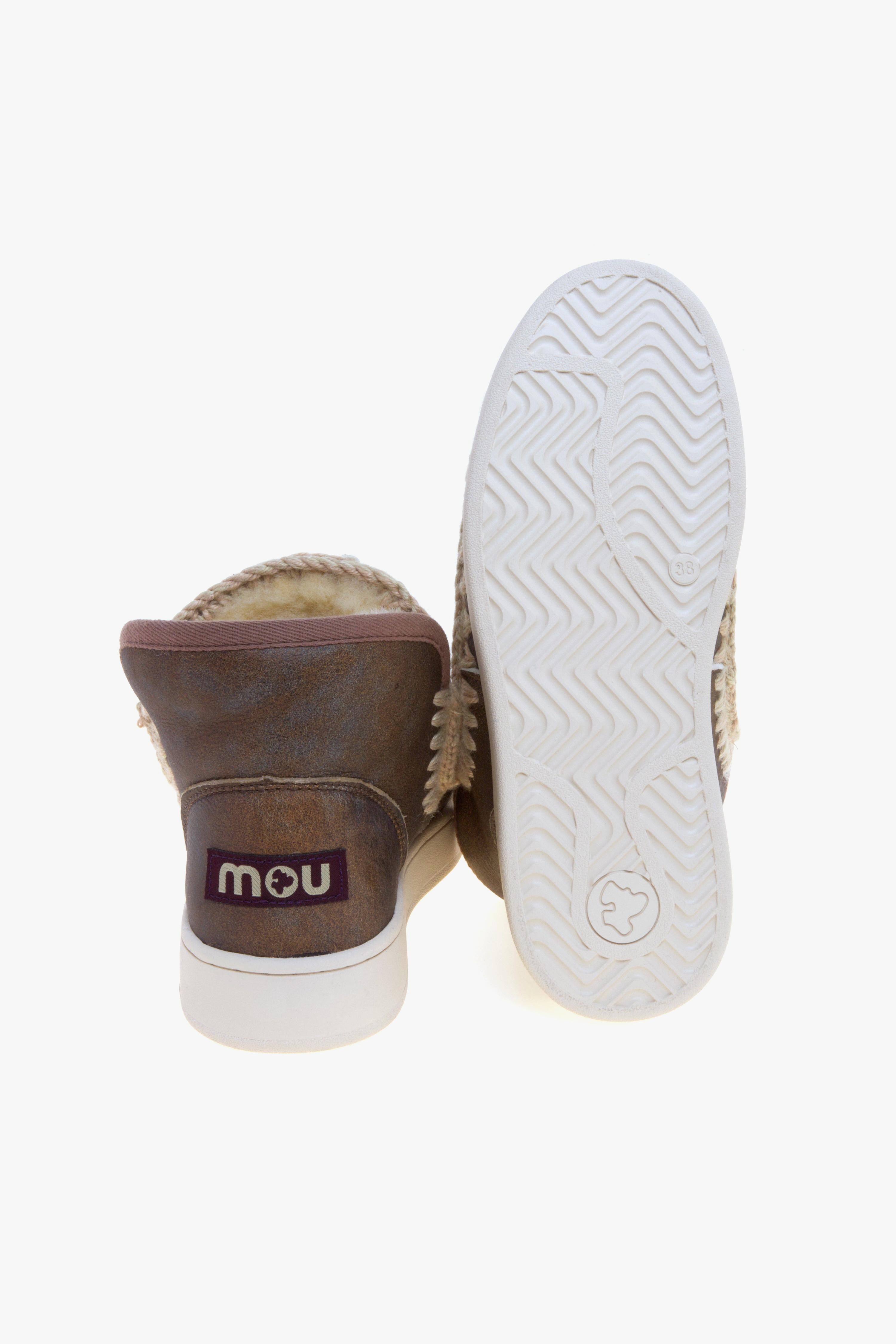 Lo stivaletto New Eskimo Sneaker Special Leather firmato MOU interpreta l’equilibrio tra artigianalità e spirito urbano con eleganza distintiva. Realizzato a mano in pelle speciale effetto vintage e montone double face, abbina materiali naturali pregiati a una costruzione accurata, pensata per garantire massimo comfort e calore durante la stagione fredda. Le iconiche cuciture all’uncinetto in lana, simbolo del brand, sottolineano il profilo del modello, mentre la suola leggera e flessibile assicura stabilità e praticità quotidiana. Un design versatile e raffinato, ideale sotto cappotti sartoriali o denim relaxed, per look casual dal fascino autentico.Caratteristiche principali:# Materiale esterno: pelle speciale effetto vintage e montone double face.# Cuciture: realizzate a mano all’uncinetto in lana, distintivo MOU.# Fodera e sottopiede: montone shearling per morbidezza e calore ottimali.# Suola: leggera e flessibile con battistrada studiato per comfort e aderenza.# Vestibilità: regolare, calzata avvolgente ma libera nei movimenti.# Realizzazione: artigianale, Made by MOU.