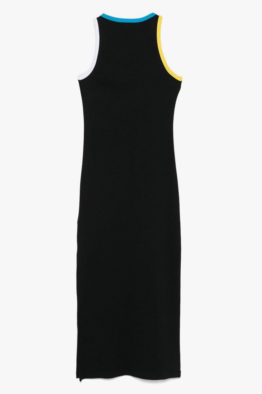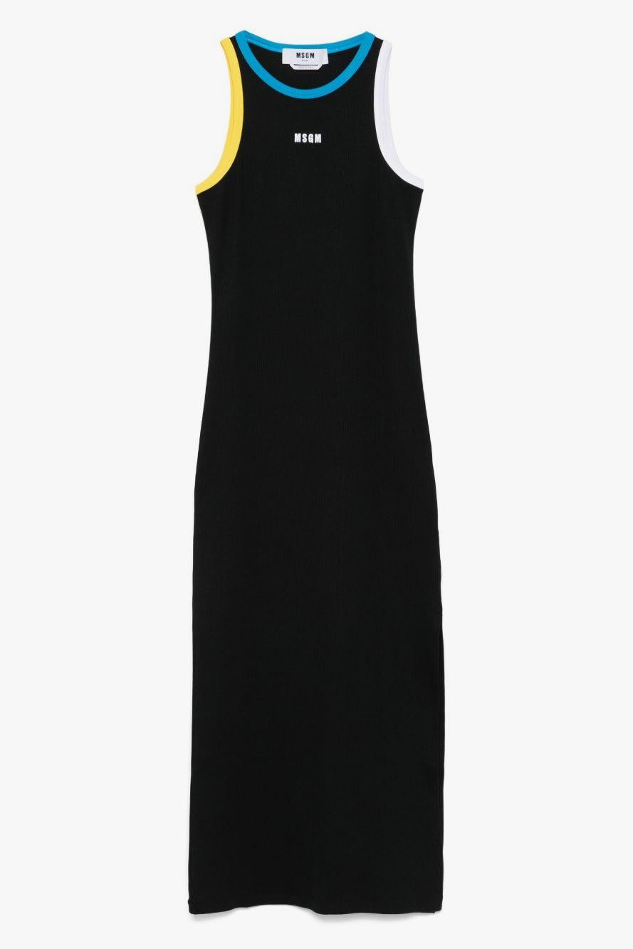 msgm Donna Abito Nero Lungo con Profili a Contrasto