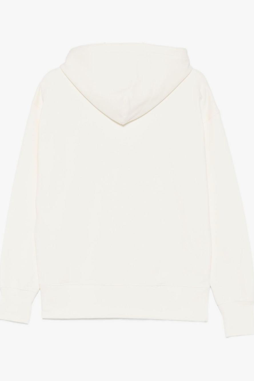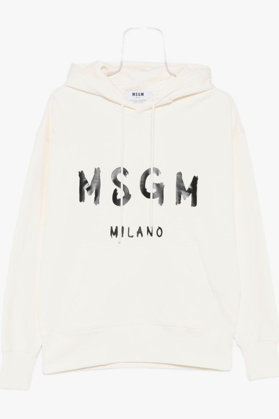Proposta in bianco, presenta una stampa con logo sul davanti che richiama l’identità distintiva del brand, mentre il cappuccio con coulisse aggiunge un dettaglio sportivo e funzionale. Le maniche lunghe, l’orlo a coste e i polsini a coste completano un design versatile, ideale per look casual dal carattere deciso.