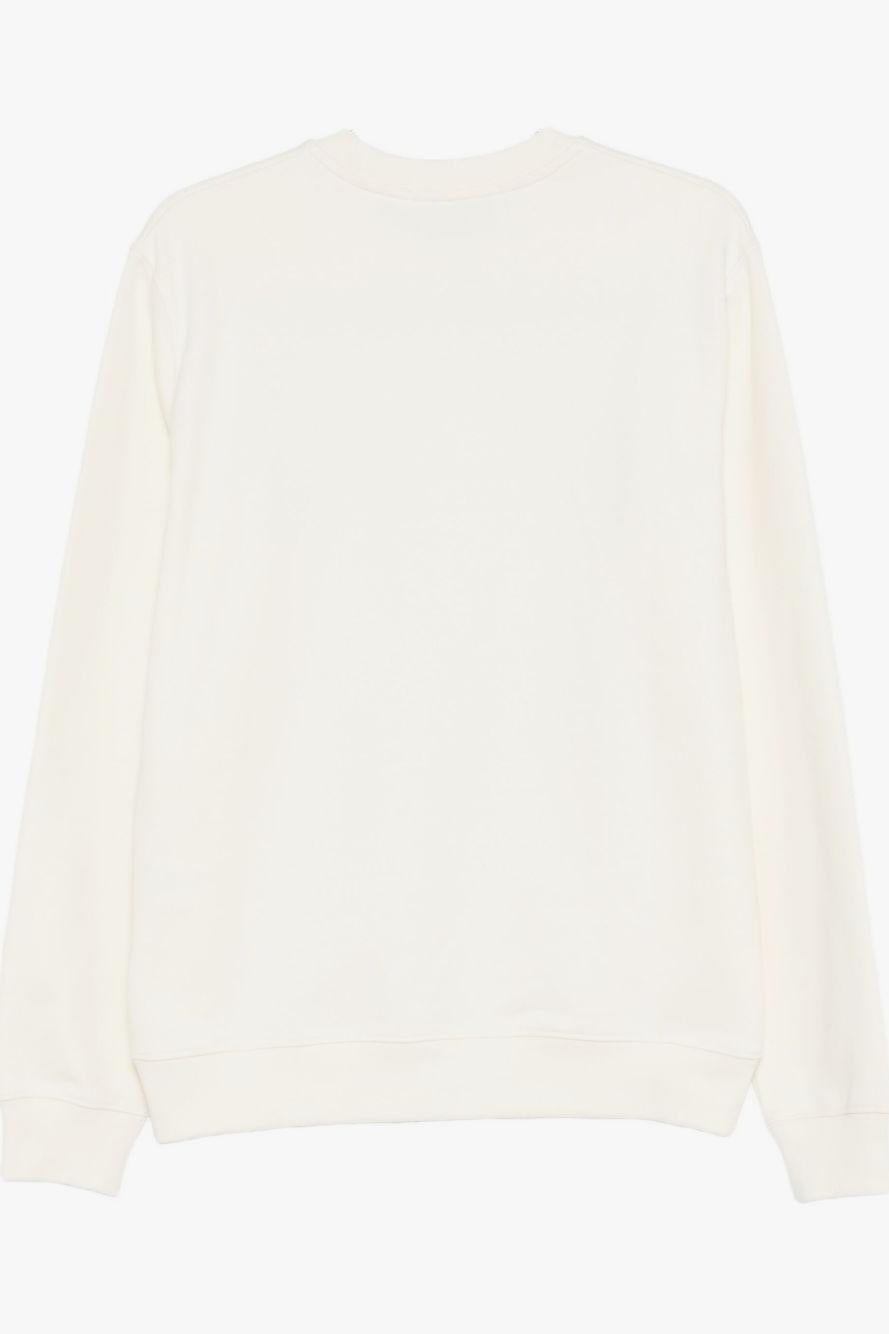 Proposta in bianco, si distingue per la stampa con logo sul davanti, simbolo dell’identità giovane e dinamica del brand. Il girocollo e le maniche lunghe definiscono un design pulito e versatile, perfetto da indossare ogni giorno per uno stile rilassato ma curato.