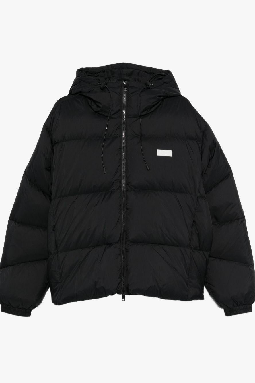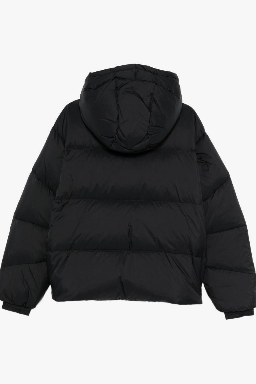 Proposto in nero, si distingue per lo scollo con cappuccio, la chiusura frontale con zip e l’applicazione con logo che firma il capo con il carattere inconfondibile del brand. La forma squadrata aggiunge un tocco contemporaneo, perfetto per completare look street o casual con un’eleganza disinvolta.