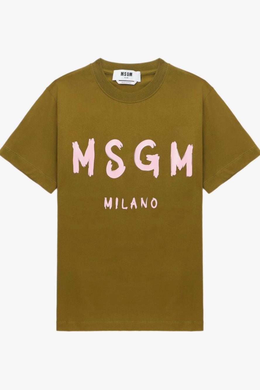 Il design pulito con girocollo, maniche corte e orlo dritto valorizza la silhouette con linee essenziali e moderne, mentre il colore verde aggiunge un tocco vivace e distintivo, perfetto per la stagione.