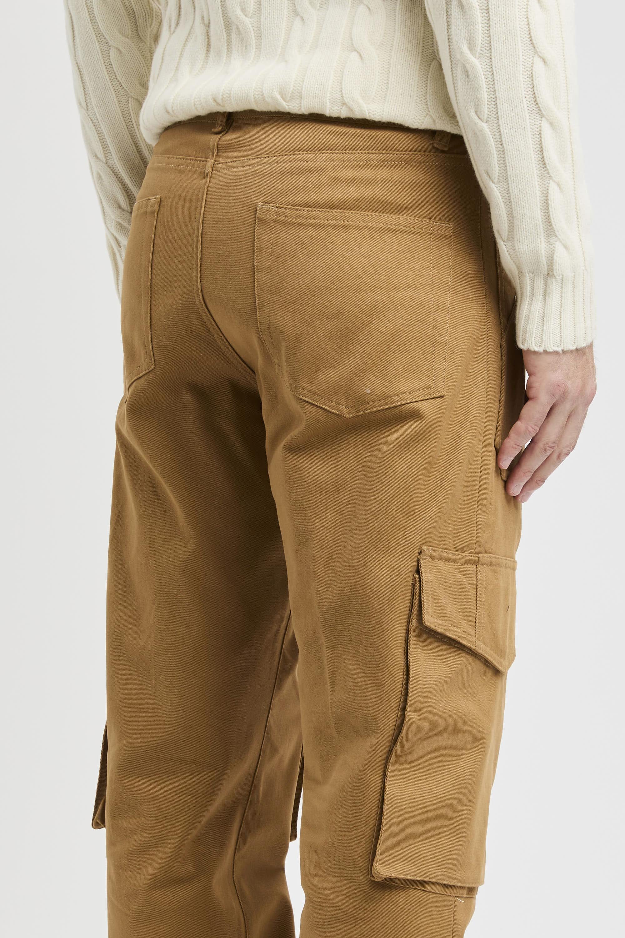 Ispirazione workwear e cura sartoriale definiscono il pantalone cargo Myths in tela di cotone stretch, progettato per coniugare funzionalità e pulizia delle linee. Le tasche a toppa sul davanti e a metà gamba richiamano l’estetica utility, mentre la tasca a toppa sul retro completa un impianto pratico senza appesantire la silhouette. La chiusura con doppio bottone e zip garantisce tenuta e comfort, sostenuta dalla mano corposa della tela. Un essenziale Made in Italy pensato per il quotidiano, facile da abbinare a camicie, knitwear e outerwear.Caratteristiche principali:# Brand: Myths.# Modello: pantalone cargo in tela di cotone.# Tasche: due tasche a toppa davanti; tasche cargo a metà gamba; tasca a toppa dietro.# Dettagli: estetica workwear con impianto funzionale.# Chiusura: doppio bottone + zip.# Composizione: 98% cotone, 2% elastan.# Provenienza: Made in Italy.