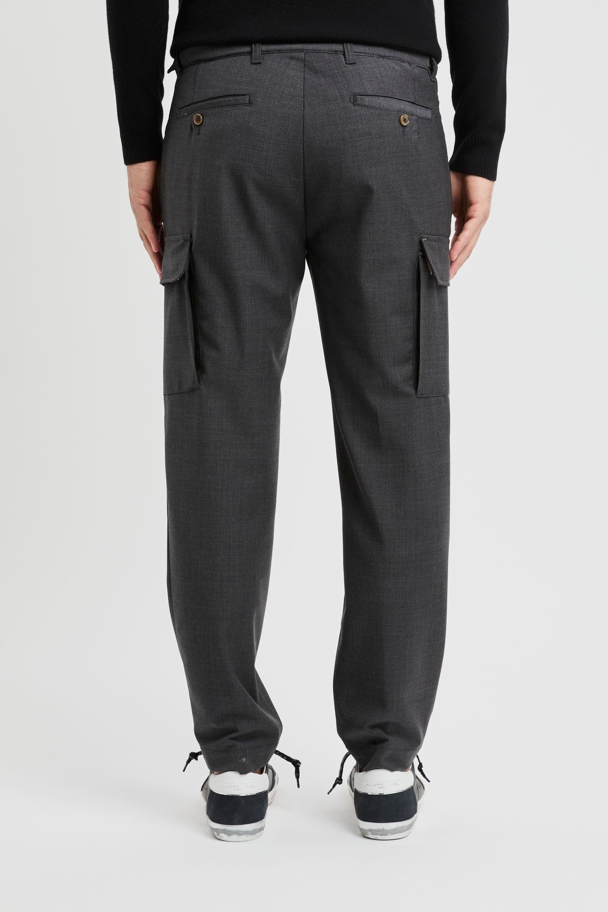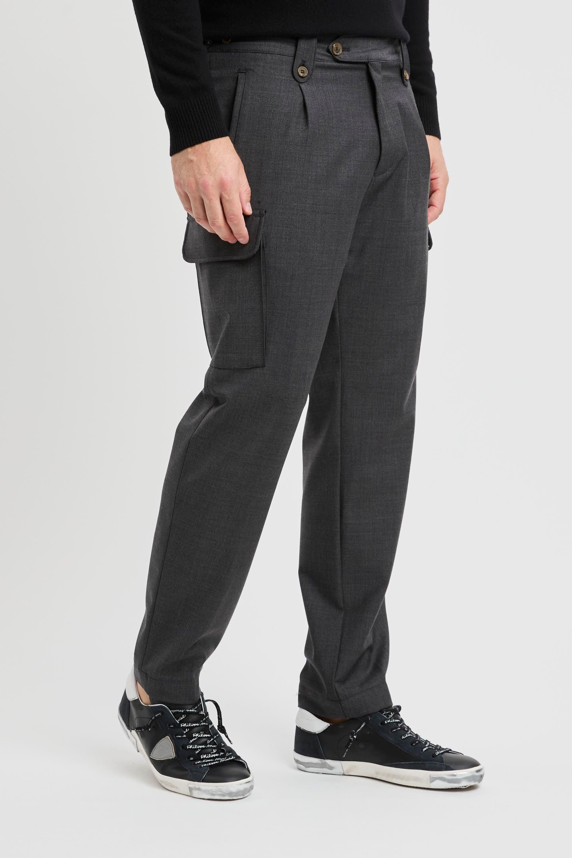 Taglio sartoriale e attitudine utility convivono in questo pantalone cargo in misto lana firmato Myths, pensato per coniugare stile contemporaneo e funzionalità quotidiana. La linea pulita è valorizzata dalla tasca a toppa laterale, mentre le tasche a filo anteriori e posteriori (con bottone sul retro) mantengono un profilo ordinato. La chiusura con doppio bottone e zip assicura tenuta impeccabile, completata dai regolatori elasticizzati sui fianchi con bottone per una vestibilità più confortevole. Un capo Made in Italy che interpreta il cargo in chiave raffinata, adatto tanto al lavoro quanto al tempo libero.Caratteristiche principali:# Brand: Myths.# Modello: pantalone cargo sartoriale in misto lana.# Tasche: tasca a toppa laterale; tasche a filo davanti; tasca a filo dietro con bottone.# Chiusura: doppio bottone + zip.# Regolazione: regolatori elasticizzati sui fianchi con bottone.# Provenienza: Made in Italy.# Composizione: 52% lana, 43% poliestere, 5% elastan.
