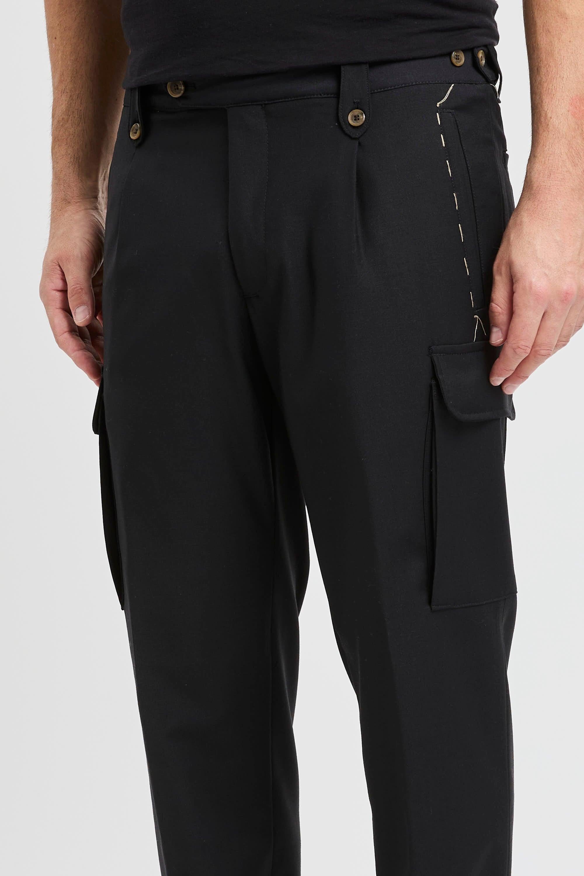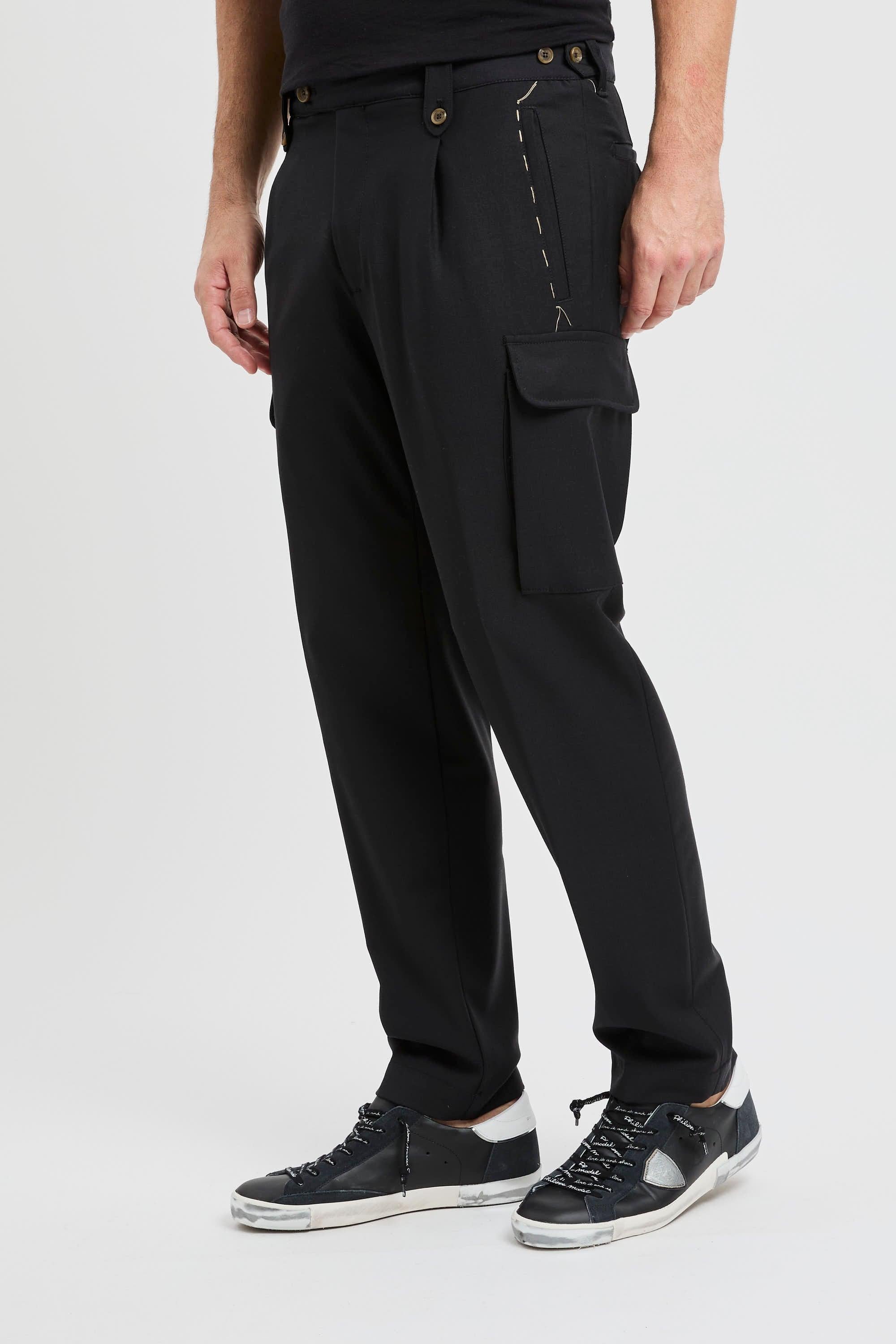 Taglio sartoriale e attitudine utility convivono in questo pantalone cargo in misto lana firmato Myths, pensato per coniugare stile contemporaneo e funzionalità quotidiana. La linea pulita è valorizzata dalla tasca a toppa laterale, mentre le tasche a filo anteriori e posteriori (con bottone sul retro) mantengono un profilo ordinato. La chiusura con doppio bottone e zip assicura tenuta impeccabile, completata dai regolatori elasticizzati sui fianchi con bottone per una vestibilità più confortevole. Un capo Made in Italy che interpreta il cargo in chiave raffinata, adatto tanto al lavoro quanto al tempo libero.Caratteristiche principali:# Brand: Myths.# Modello: pantalone cargo sartoriale in misto lana.# Tasche: tasca a toppa laterale; tasche a filo davanti; tasca a filo dietro con bottone.# Chiusura: doppio bottone + zip.# Regolazione: regolatori elasticizzati sui fianchi con bottone.# Provenienza: Made in Italy.# Composizione: 52% lana, 43% poliestere, 5% elastan.