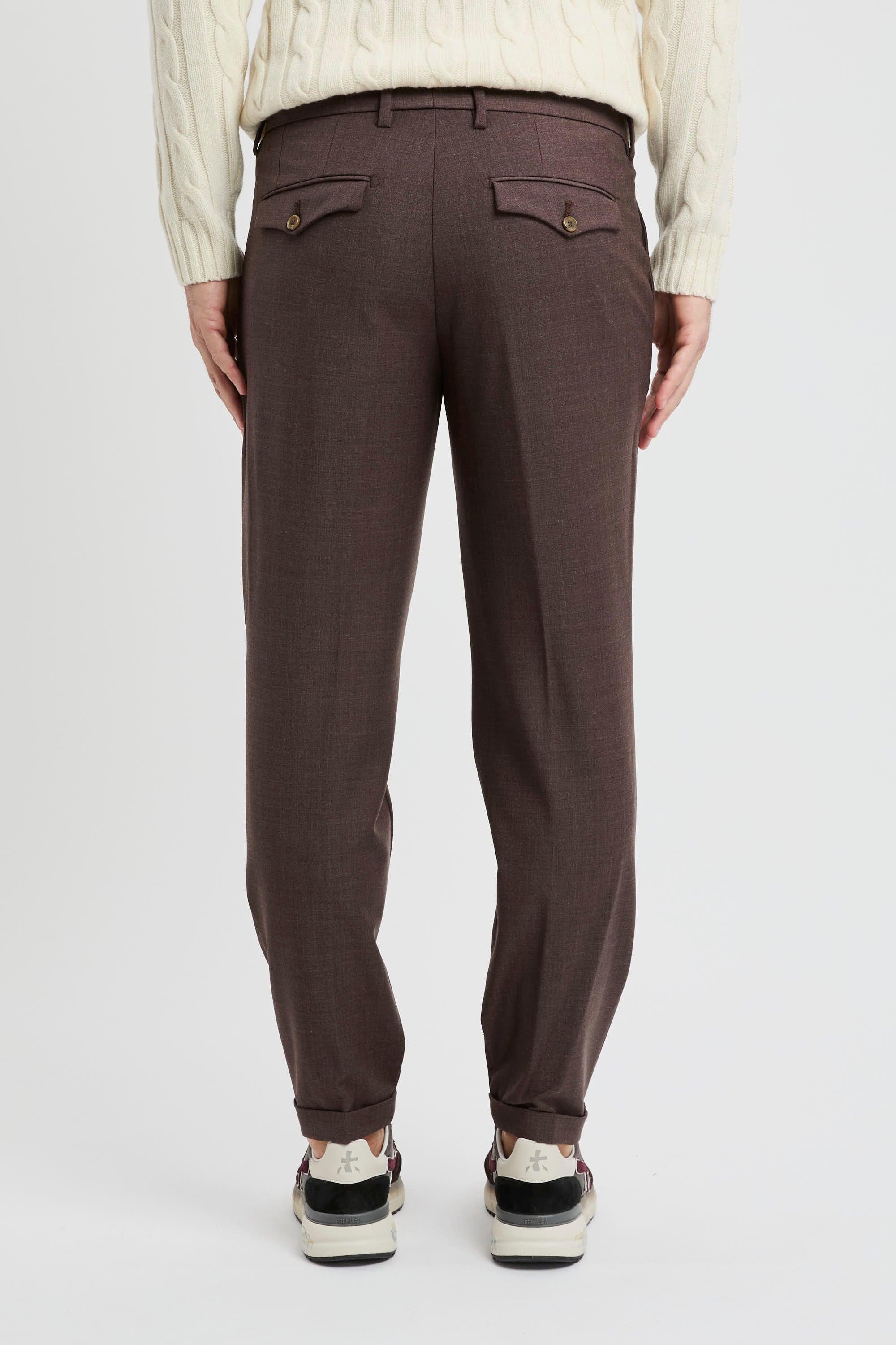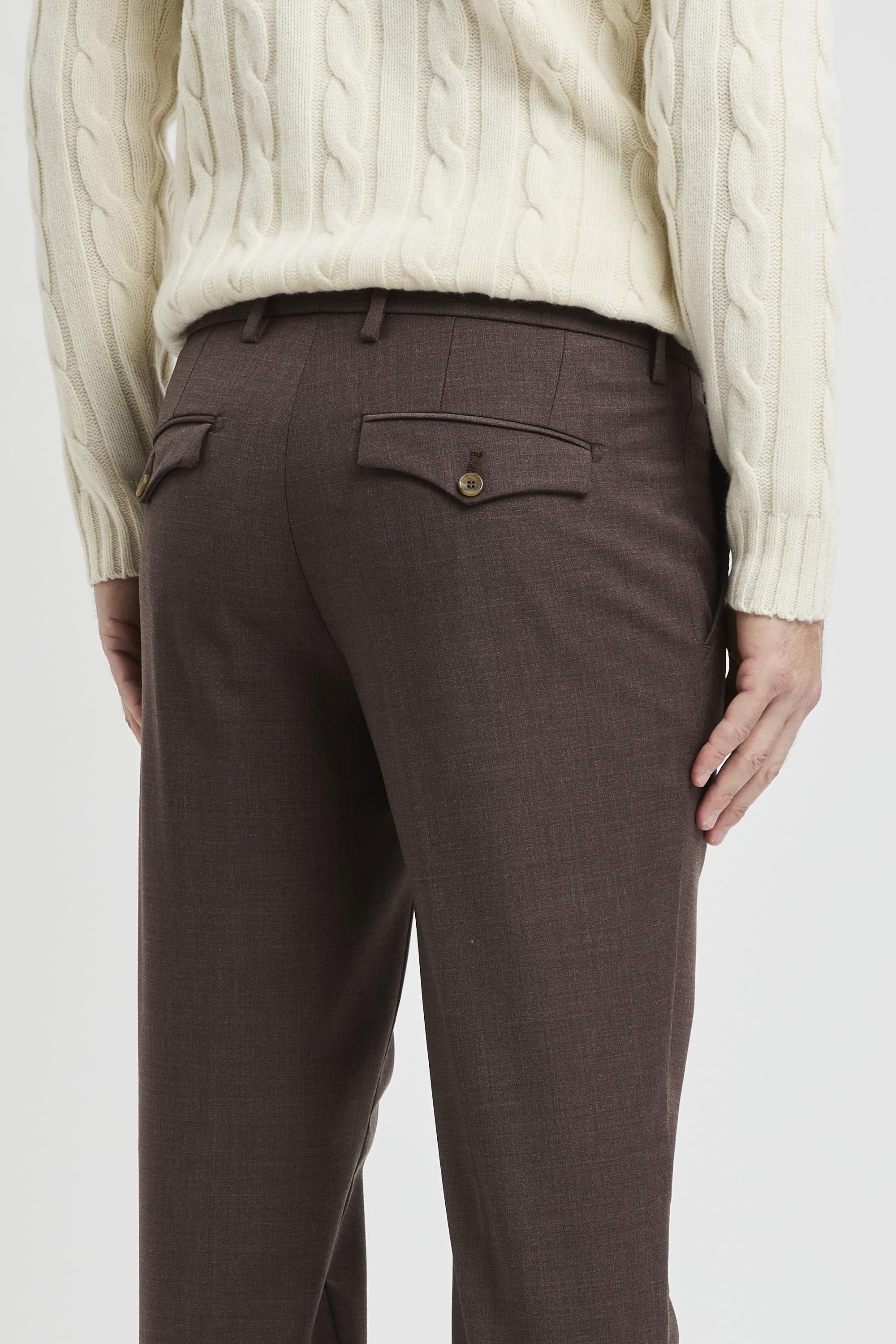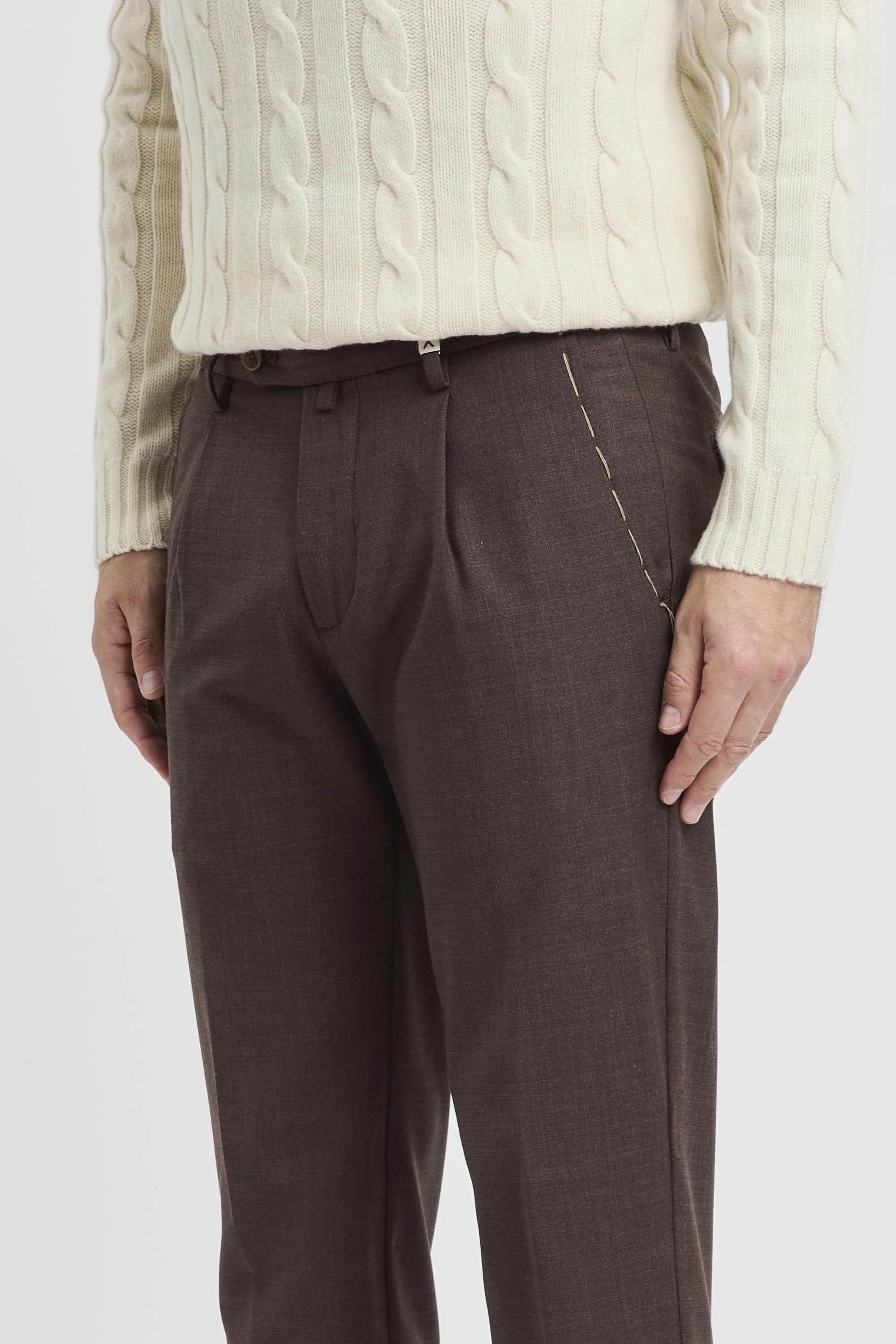 inee pulite e costruzione sartoriale definiscono il pantalone chino Myths in misto lana, un essenziale del guardaroba pensato per un’eleganza quotidiana senza sforzo. La mano compatta del tessuto sostiene la resa del taglio, mentre il fondo con risvolto aggiunge un dettaglio contemporaneo che dialoga con derby, mocassini o sneaker. Il profilo resta ordinato grazie alle tasche alla francese sul davanti e alla tasca a filo con pattina e bottone sul retro; la chiusura con doppio bottone e zip assicura tenuta e pulizia della linea. Un capo Made in Italy che unisce comfort e versatilità, ideale in chiave office e smart-casual.Caratteristiche principali:# Modello: pantalone chino a taglio sartoriale.# Look: essenziale con fondo risvoltato.# Tasche: alla francese davanti; a filo con pattina e bottone dietro.# Chiusura: doppio bottone + zip.# Tessuto: misto lana (52% lana, 43% poliestere, 5% elastan).# Made in Italy.
