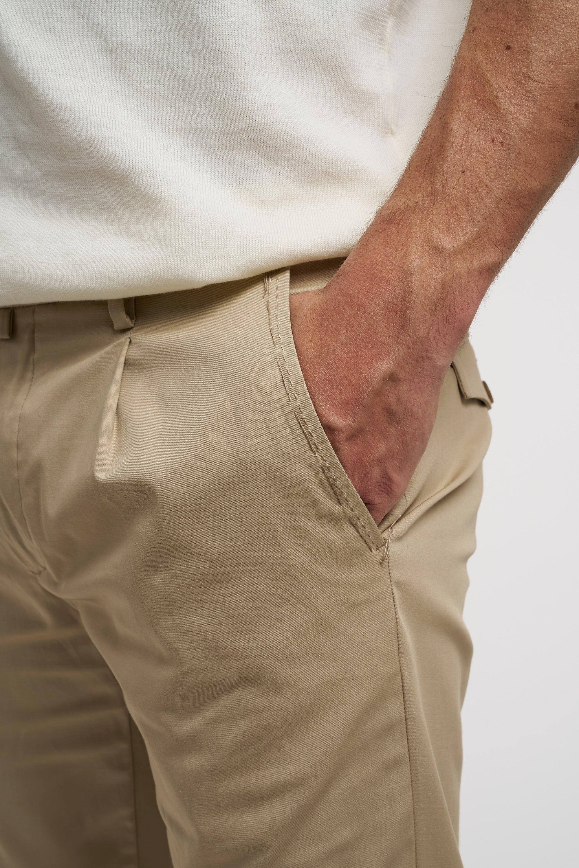 Pantalone Myths dal taglio sartoriale, realizzato in pregiato cotone, pensato per chi cerca eleganza e comfort in un capo versatile. Caratterizzato da una linea pulita con pence frontali e risvolto fisso da 3 cm sul fondo, questo modello coniuga stile classico e praticità quotidiana. La vestibilità regular valorizza la figura senza rinunciare alla libertà di movimento.Completano il design le tasche america anteriori, le tasche a filo con patta e bottone sul retro e la chiusura frontale con doppio bottone e zip. Un capo curato nei dettagli, interamente Made in Italy, ideale per chi ama distinguersi con discrezione.Consiglio di stile: perfetto con una camicia bianca e mocassini per un look da ufficio raffinato, oppure con una t-shirt basic e sneakers per un'eleganza informale ma ricercata.# Composizione: 100% cotone. # Made in Italy.