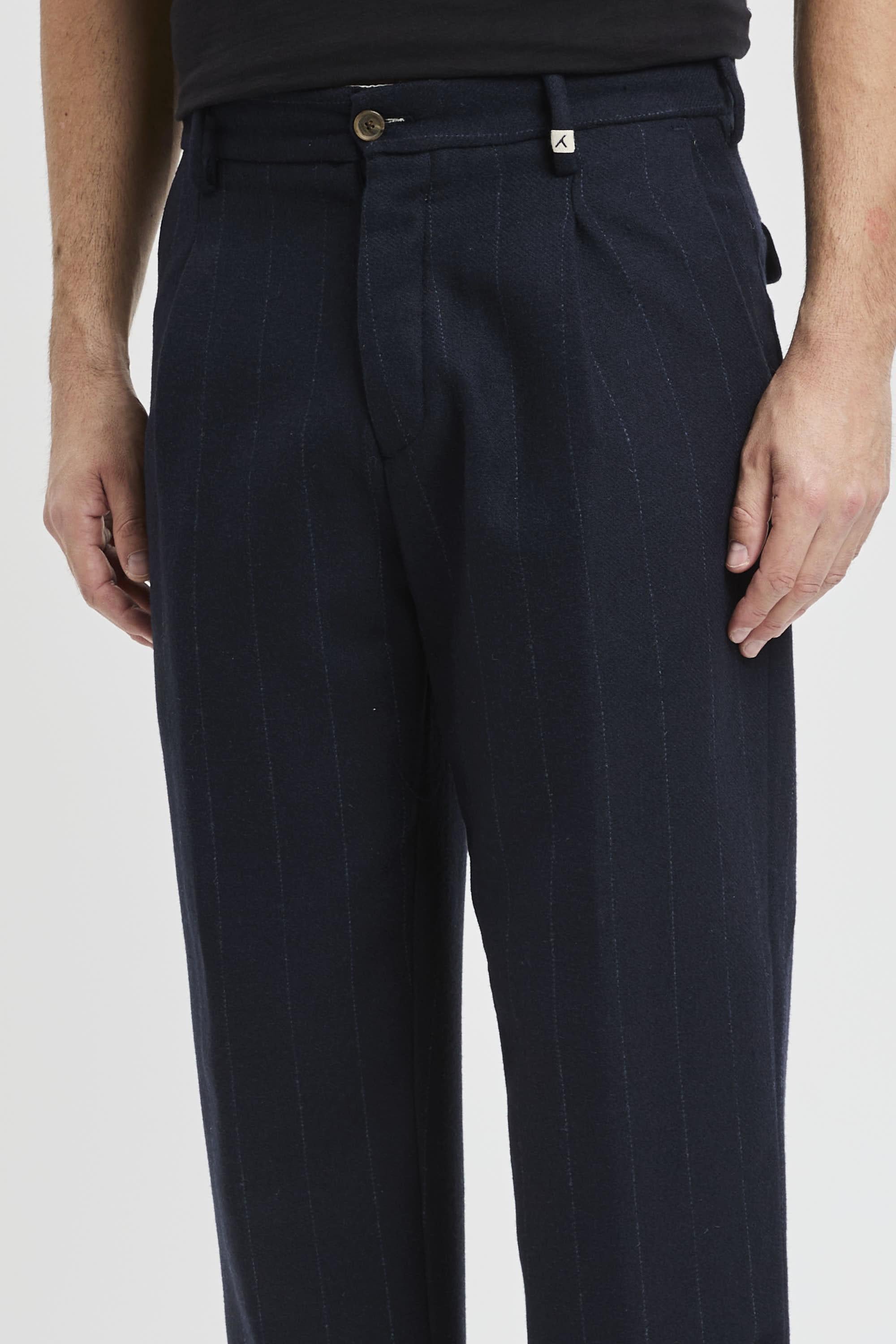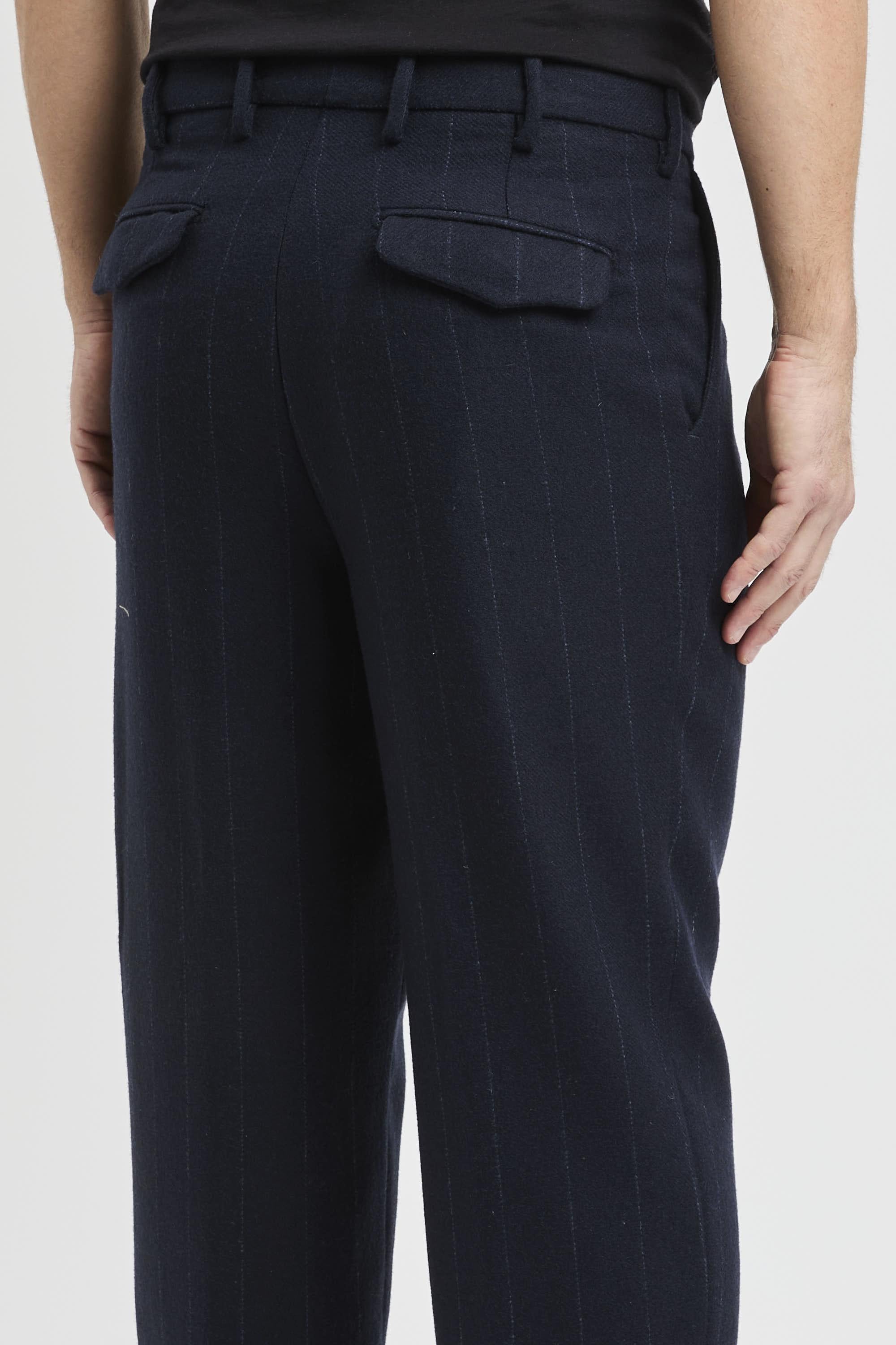 Gessato discreto e proporzioni rilassate definiscono il pantalone Myths in misto lana, una proposta dal taglio sartoriale interpretata con vestibilità over. La costruzione valorizza la linea con pinces frontali che donano volume controllato, mentre la tasca dritta davanti e la tasca a filo sul retro con pattina e bottone coperto mantengono il profilo ordinato. La chiusura con bottoni completa un capo Made in Italy pensato per outfit contemporanei, facile da abbinare a giacche e maglieria.Caratteristiche principali:# Brand: Myths.# Modello: pantalone sartoriale gessato a vestibilità over.# Tasche: tasca dritta davanti; tasca a filo dietro con pattina e bottone coperto.# Dettagli: pinces frontali.# Chiusura: bottoni.# Provenienza: Made in Italy.# Composizione: 40% acrilica, 35% poliestere, 20% lana, 5% altre fibre.