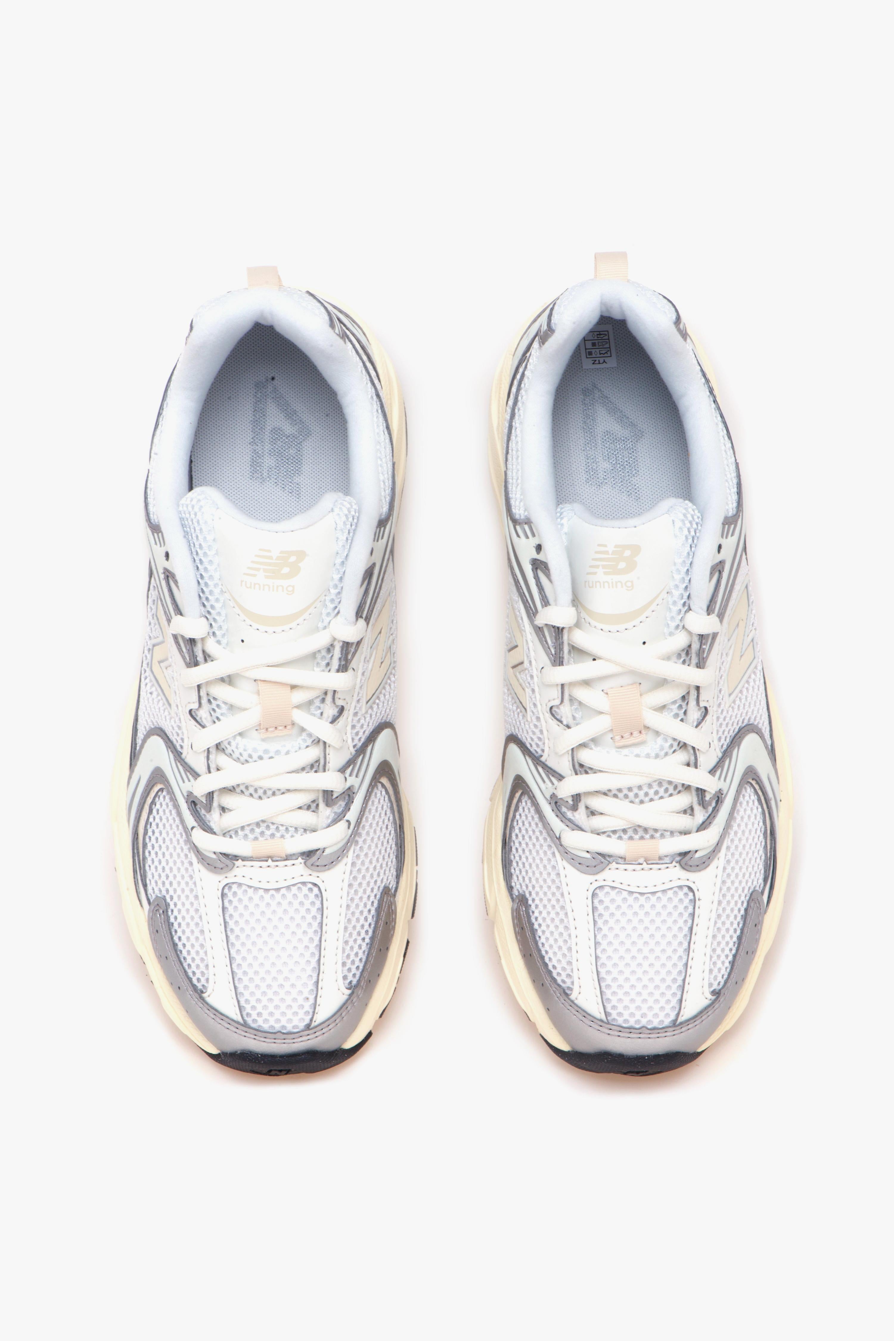 New Balance 530 è la rivisitazione in chiave moderna dei modelli classici da corsa degli anni 2000.Modello tra i più venduti dell'universo New Balance, con il suo look sporty unisce lo stile di tutti i giorni alla moderna tecnologia dell'ammortizzazione ABZORB per un confort di livello superiore in ogni momento della giornata.Ha una tomaia in mesh e pelle sintetica con iconica N laterale e dettagli a contrasto sui toni del grigio e dell'argento. • Fodera in tessuto.• Sottopiede estraibile in tessuto.• Suola in gomma.