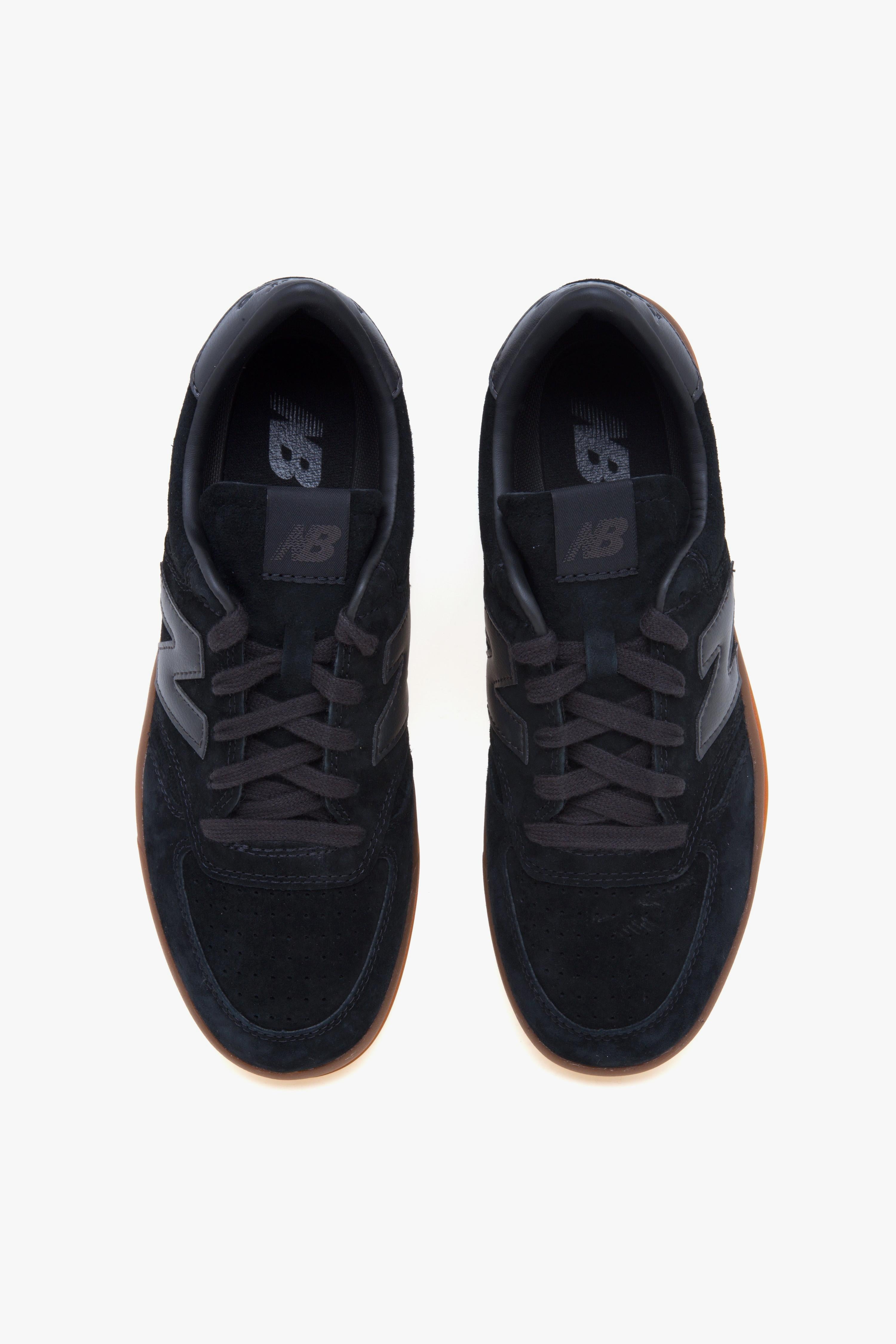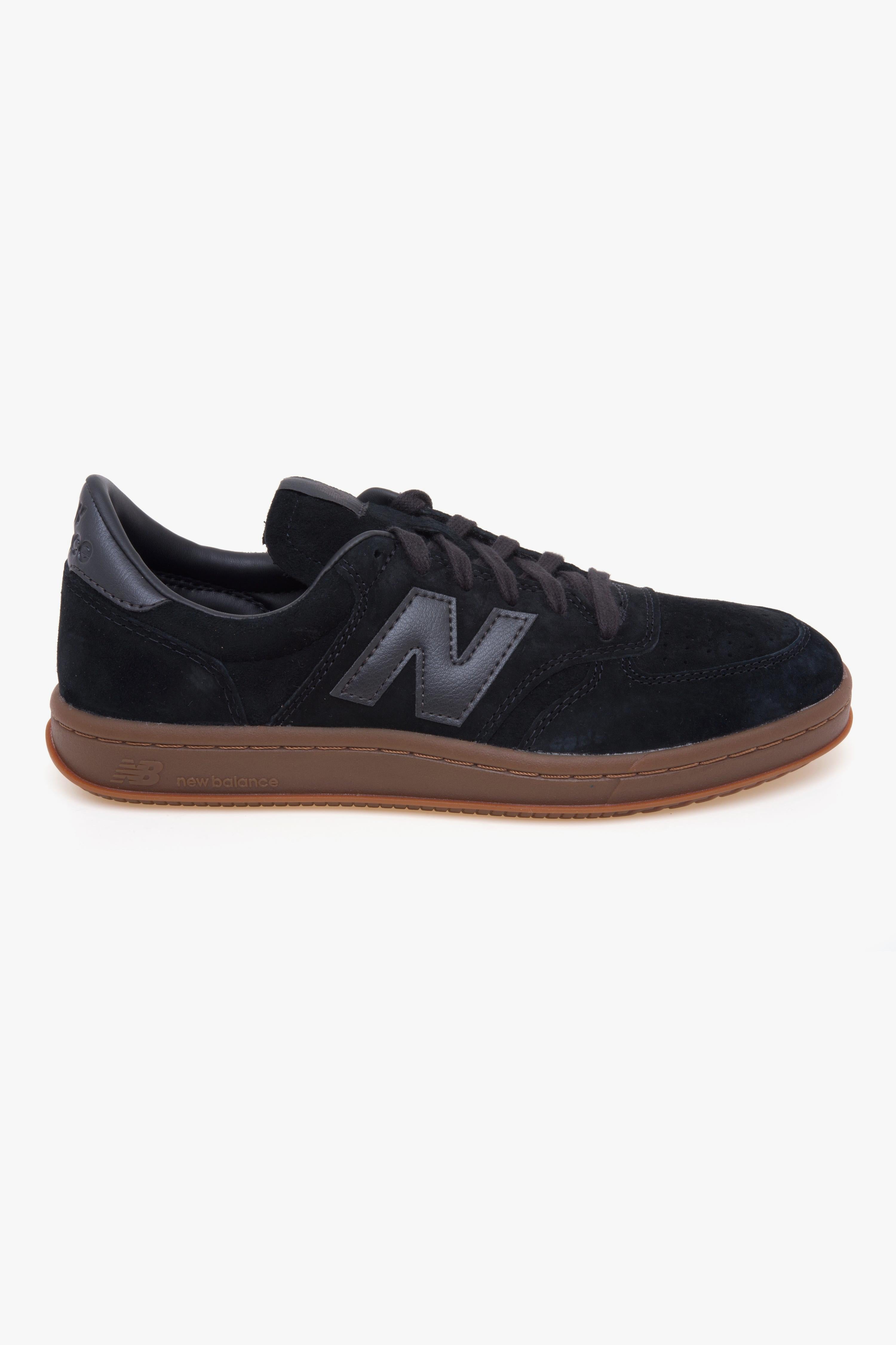 Le New Balance T500, originariamente lanciate nel 1982,sono conosciute per la loro costruzione di alta qualità e l'estetica senza tempo.La tomaia è realizzata in pelle scamosciata di maiale e nabuck, con dettagli traforati sulla punta, offrendo un tocco di lusso a un look familiare.L'intersuola in poliuretano offre un accenno discreto alla tecnologia degli anni '80, distinguendosi dalle suole vulcanizzate dei modelli che hanno caratterizzato gli anni precedenti.Il design è completato dalla semplicità elegante di una colorazione dai toni decisi ma allo stesso tempo sobri, adatta quindi ad impreziosire con stile ogni tipo di look casual.La suola in color caramello presenta un motivo a spina di pesce, mentre l'etichetta tessuta sulla linguetta e il marchio "New Balance" sul collare aggiungono dettagli distintivi.Sebbene la reintrodotta T500 sia progettata più per il tempo libero che per la competizione, tutto ciò che la rendeva una grande scarpa da tennis allora, la rende un classico senza tempo oggi.• Tomaia in camoscio e nabuck nero con inserti in ecopelle color antracite. • Fodera in tessuto.• Sottopiede estraibile in tessuto.• Suola in gomma.