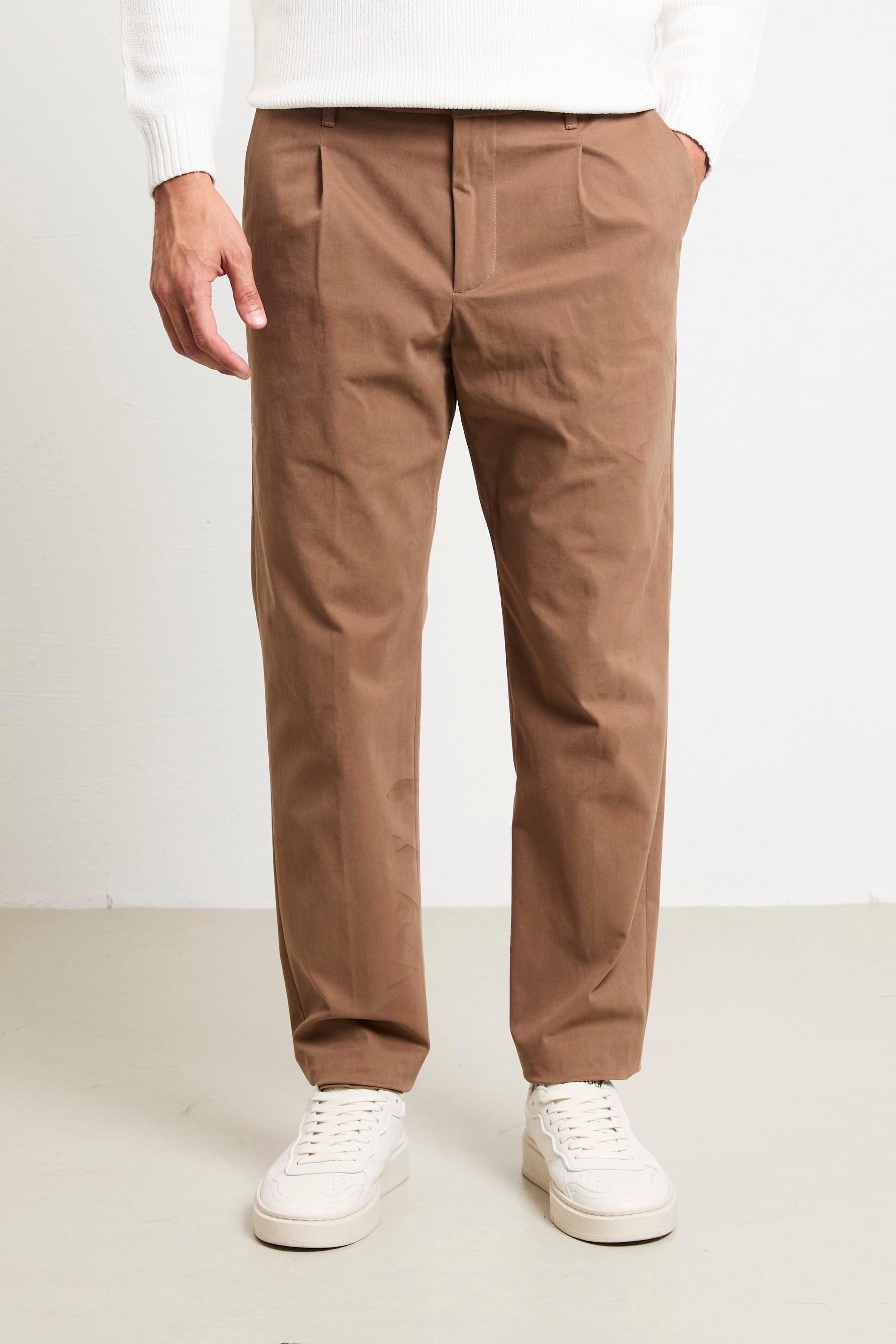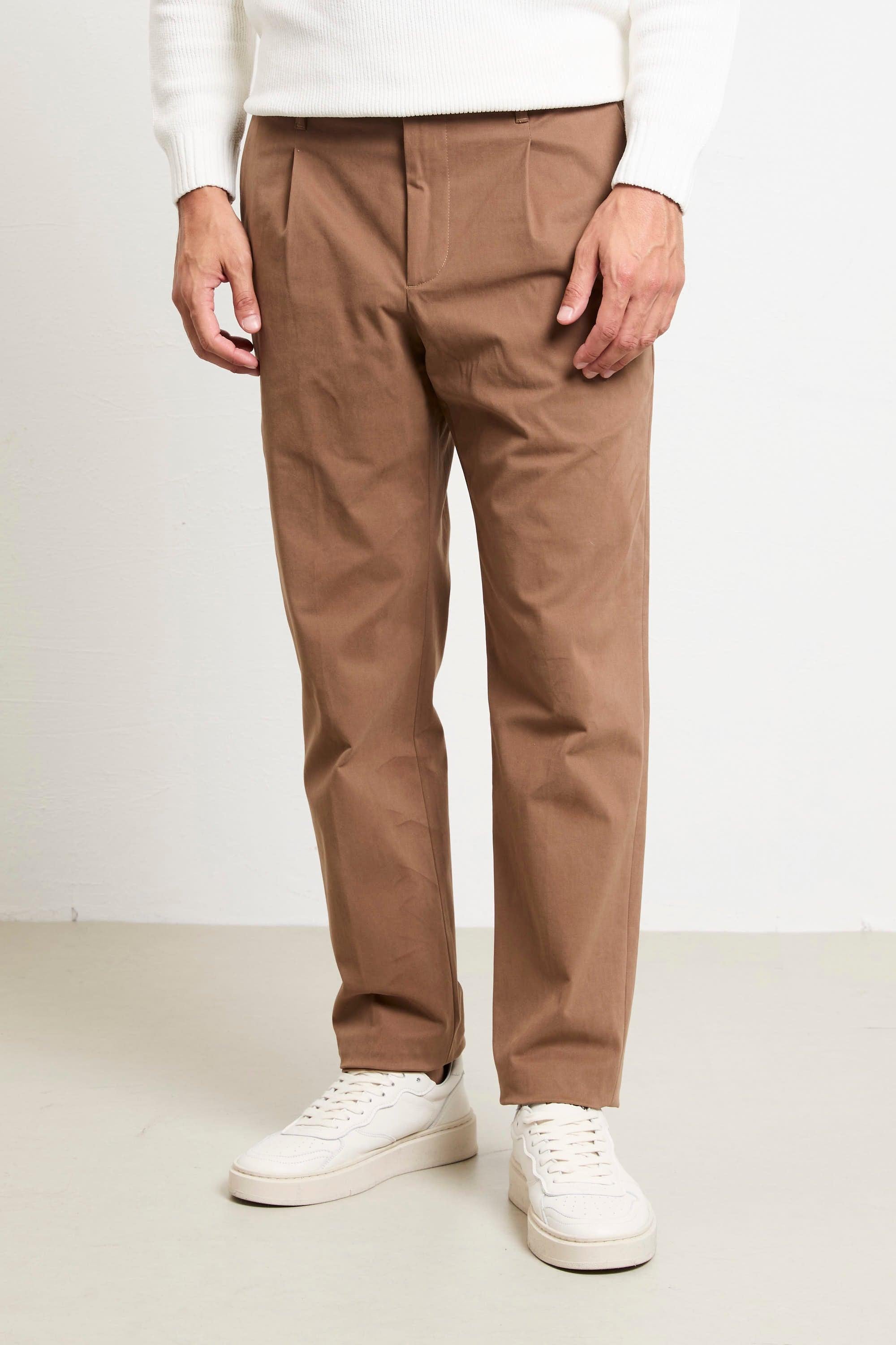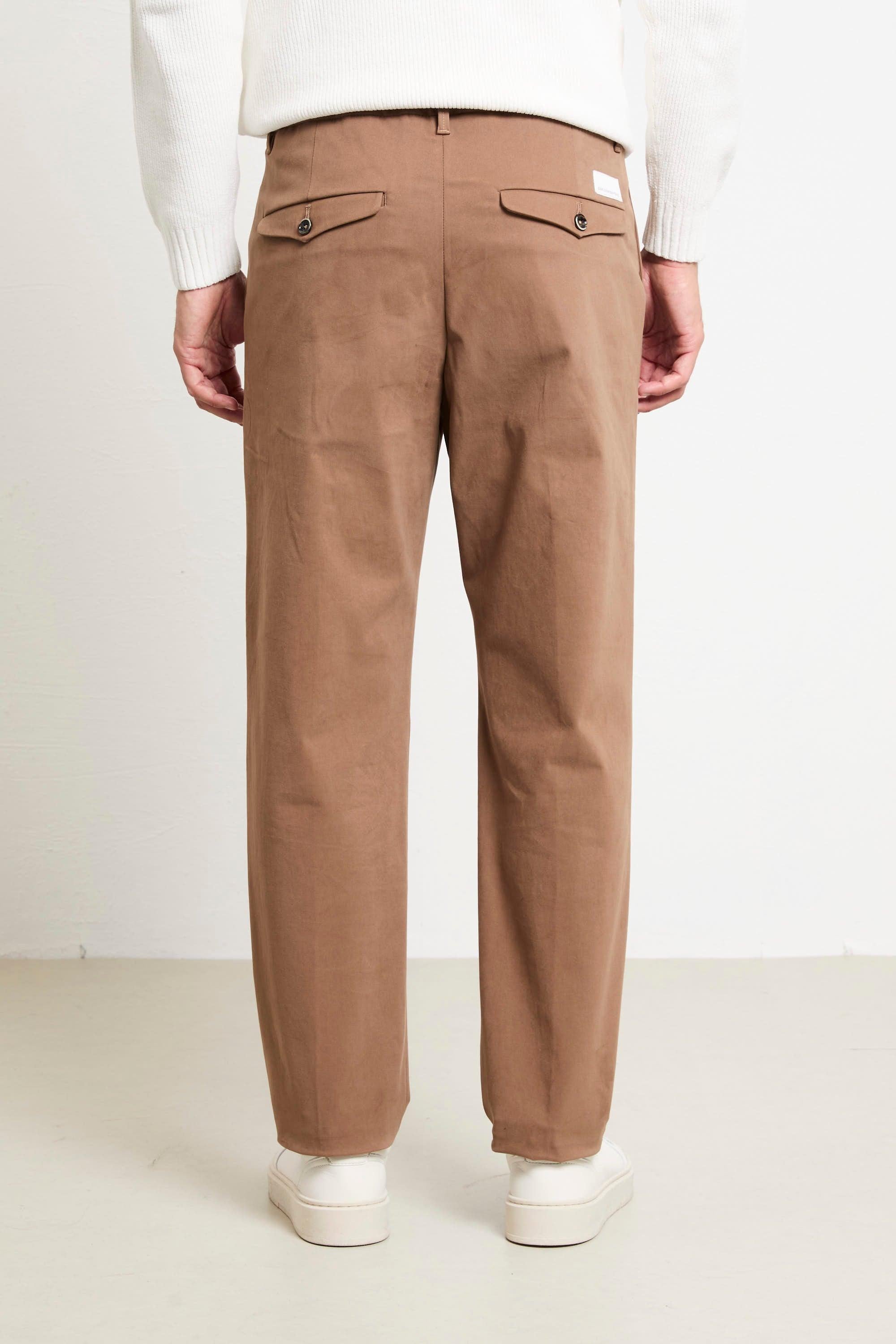 Il pantalone Nine in the Morning modello Ethan è la scelta perfetta per chi cerca un look elegante e comodo. La sua vestibilità regolare, unita alla coulisse in vita, offre una calzata personalizzabile e un tocco casual. Realizzato in cotone elastico, è ideale per qualsiasi occasione, dal lavoro al tempo libero. Abbina il pantalone con un maglione in lana merino beige e una giacca in tweed. Completa il look con stivali in pelle marrone e una sciarpa in cashmere. Un pantalone versatile che unisce eleganza e comfort in un capo senza tempo. Modello: pantalone Ethan con pence Vestibilità: regolare Vita: alta con coulisse Composizione: 96% cotone, 4% elastan Tasche: 2 laterali e 2 posteriori a filetto Fondo: 18 cm Taglia indossata: 46 Tipo di chiusura: cerniera con bottone Colore: tabacco