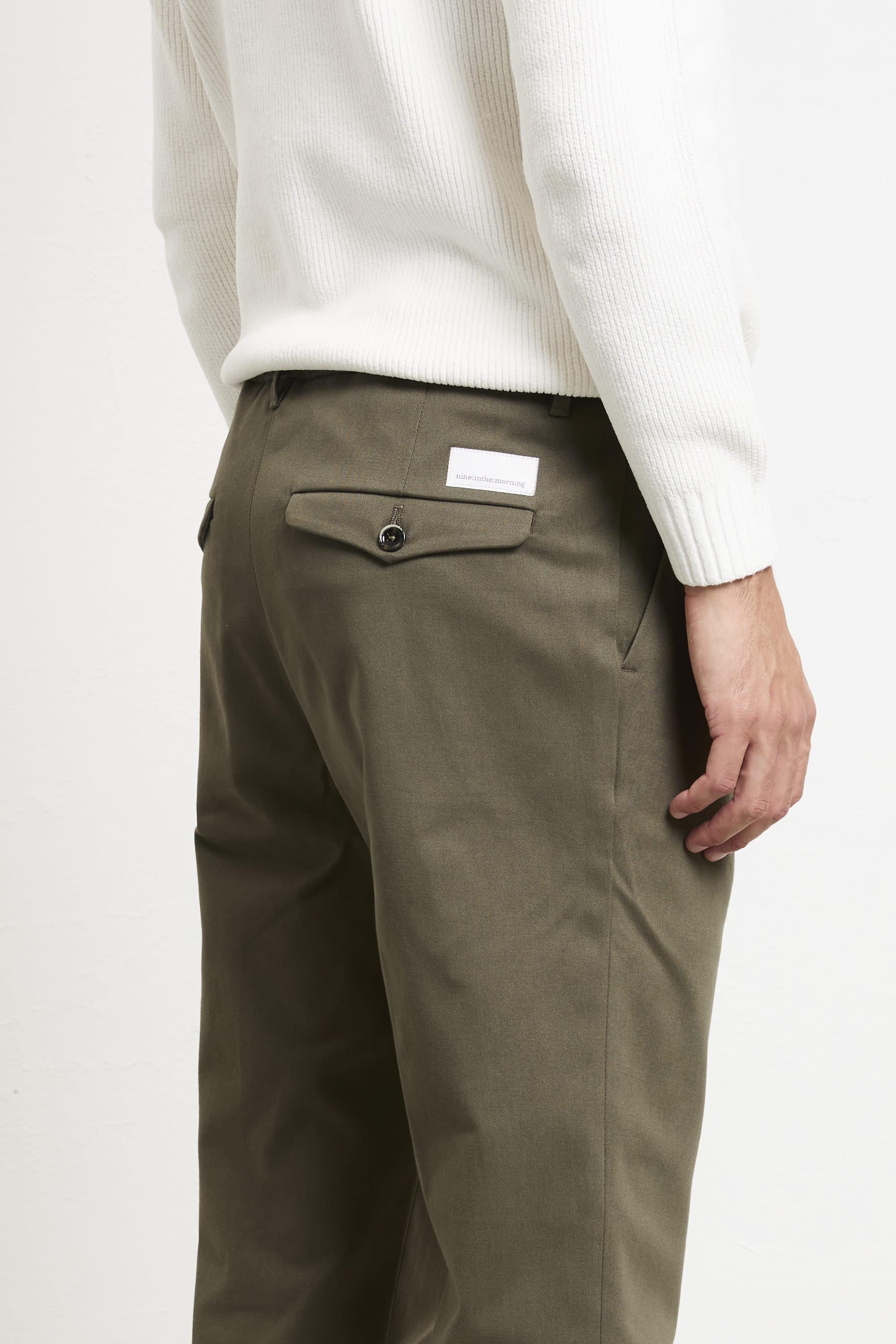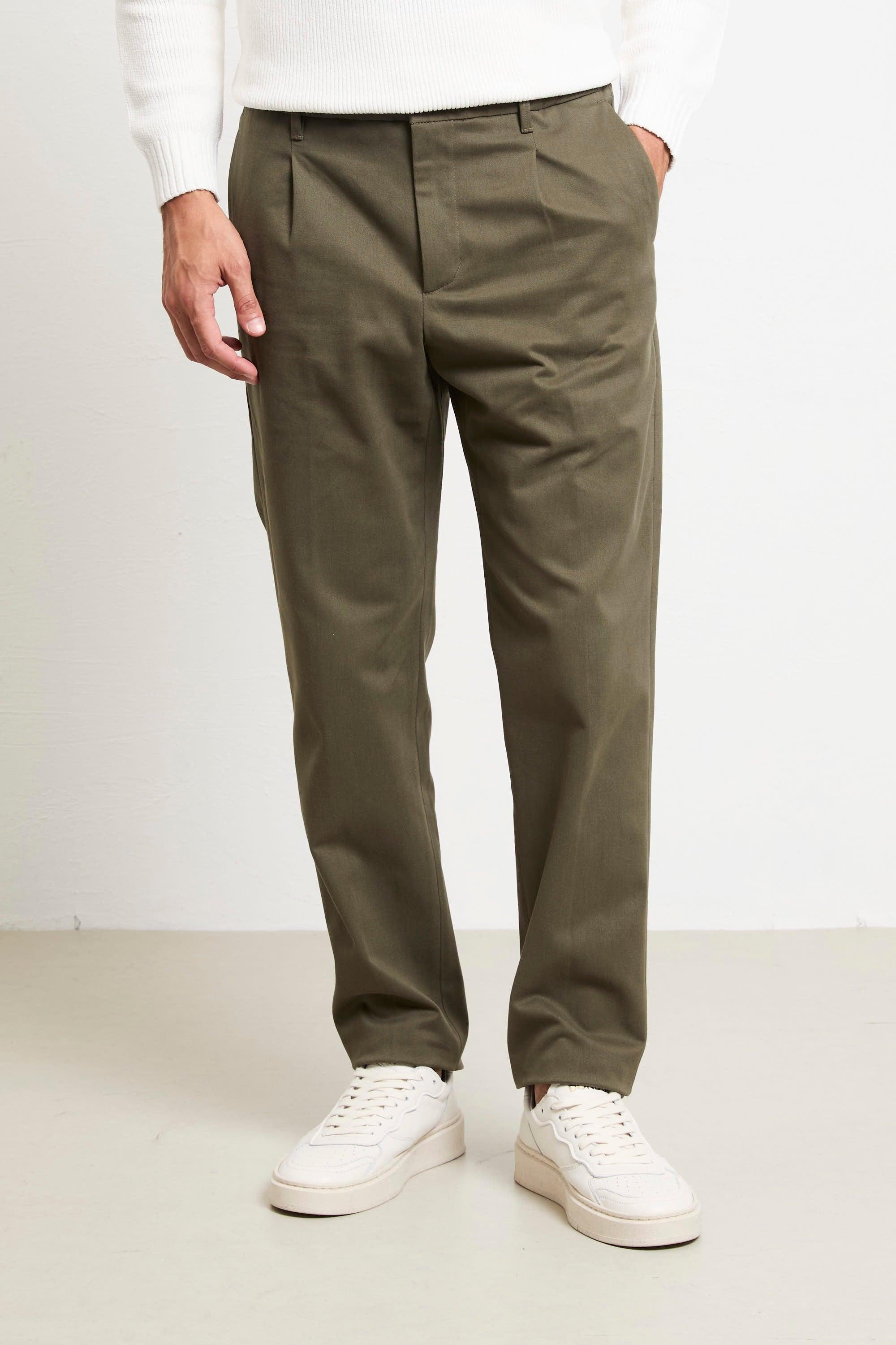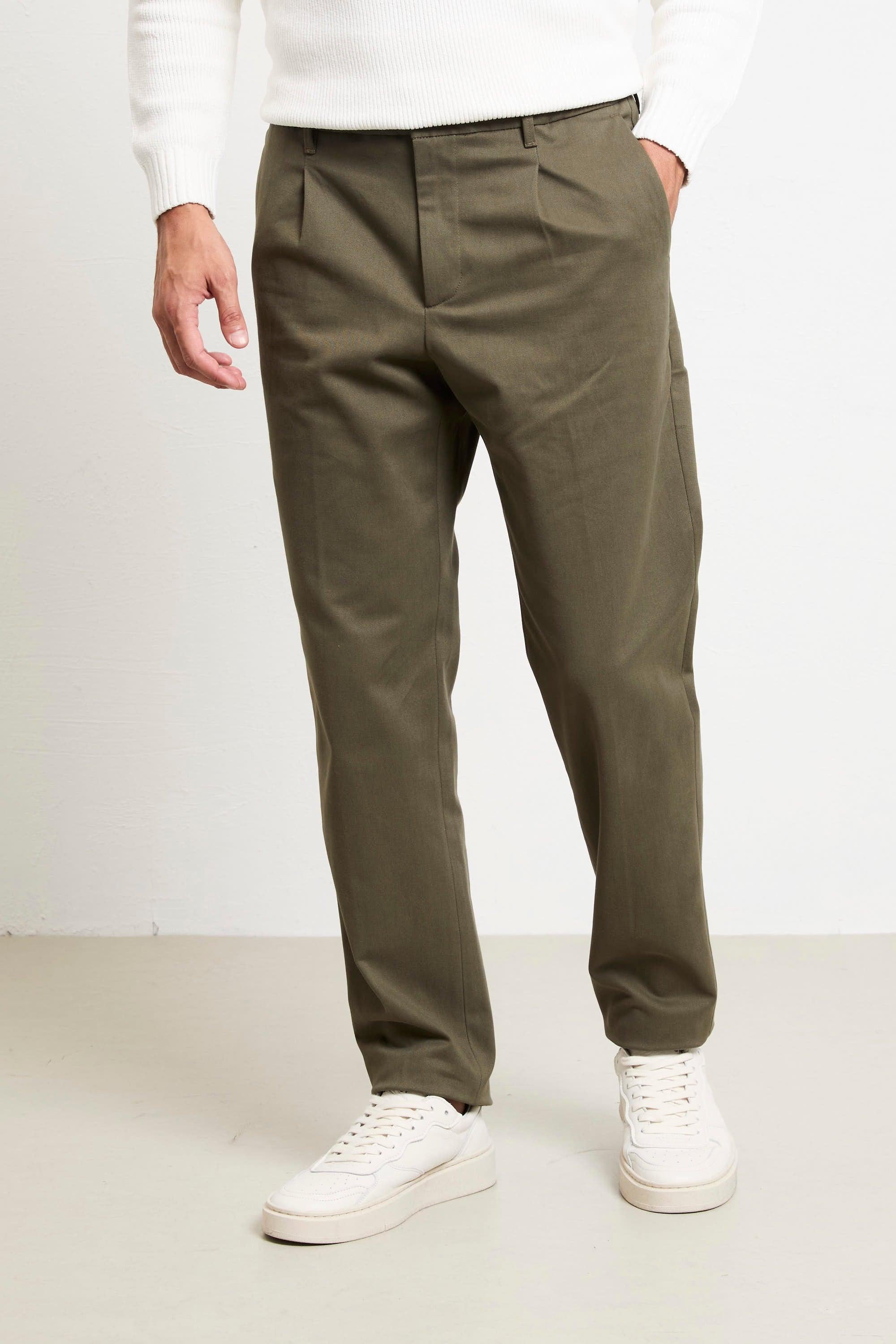 Questo pantalone Ethan è il perfetto equilibrio tra stile e praticità. La sua vestibilità regolare e la coulisse in vita lo rendono ideale per un look rilassato ma sofisticato. Perfetto per un outfit invernale, abbinalo a una giacca a vento in nylon, un maglione a collo alto grigio e scarpe da ginnastica bianche per un look casual-chic. Per una variante più elegante, prova con un blazer slim fit e stivaletti in pelle. Un pantalone versatile che aggiunge un tocco di freschezza e comfort a ogni look. Modello: pantalone Ethan con pence Vestibilità: regolare Vita: alta con coulisse Composizione: 96% cotone, 4% elastan Tasche: 2 laterali e 2 posteriori a filetto Fondo: 18 cm Taglia indossata: 46 Tipo di chiusura: cerniera con bottone Colore: verde