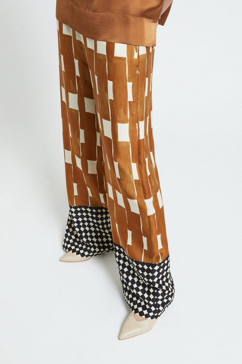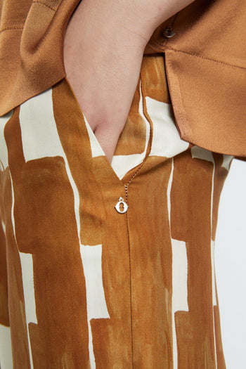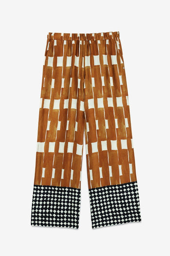 Pantalone palazzo in 100% viscosa con elastico in vita. La modella è alta 178 cm e indossa la taglia 40.Materiale: 100% Viscosa