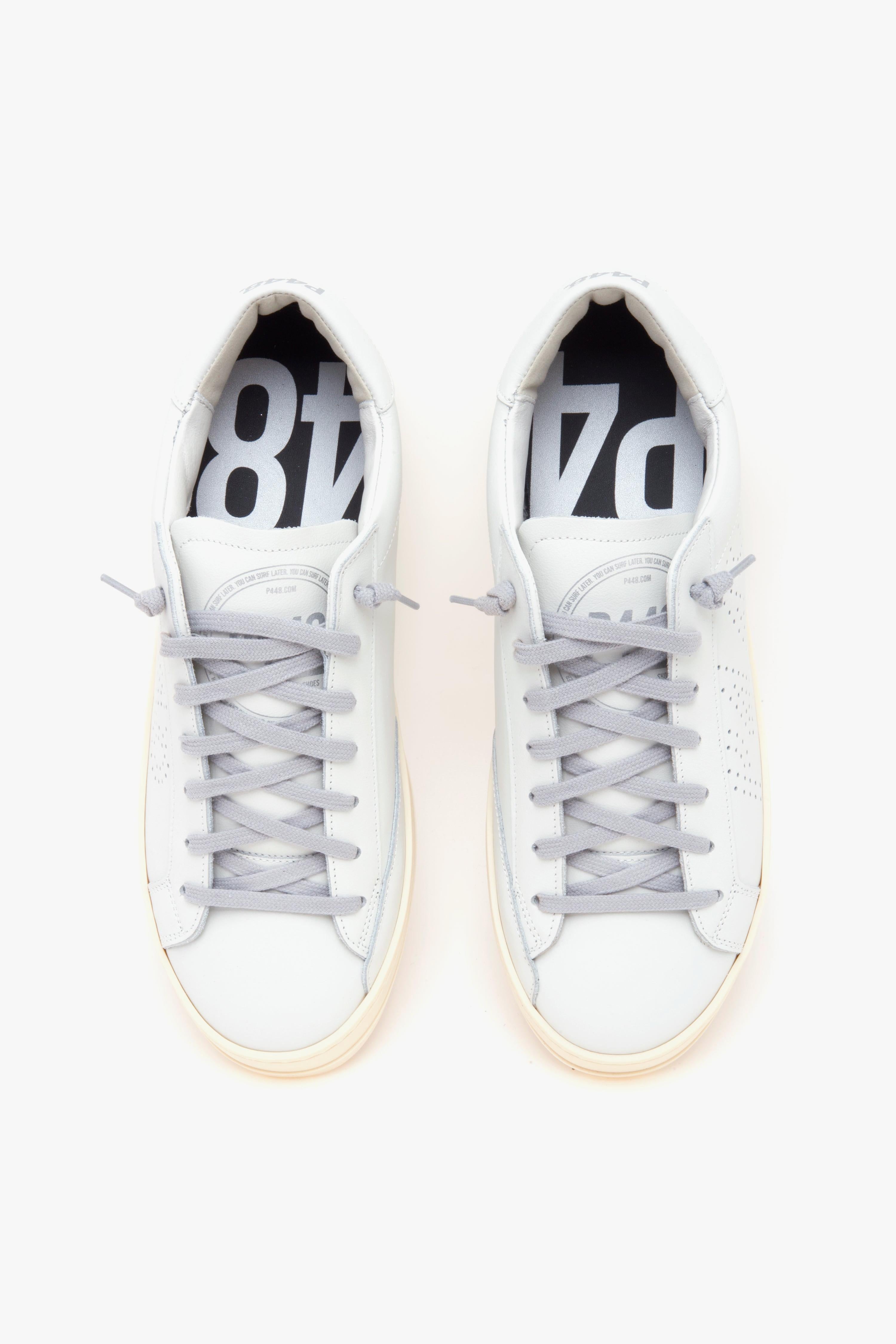 Profilo essenziale e stile trasversale definiscono P448 JOHN in versione total white, rilettura minimal dell’iconica sneaker del brand. La tomaia interamente in pelle bianca valorizza le linee pulite e rende il modello estremamente facile da abbinare, dall’ufficio al tempo libero. La costruzione italiana e l’attenzione ai materiali garantiscono comfort e durevolezza, mentre la suola a cassetta in gomma personalizzata con logo P448 completa il design con un segno distintivo discreto. Un classico contemporaneo pensato per un guardaroba quotidiano curato ma naturale. Caratteristiche principali: # Modello: P448 JOHN. # Tomaia: pelle bianca. # Fodera: pelle e cotone. # Sottopiede: estraibile in pelle. # Suola: gomma a cassetta con logo P448. # Look: minimal, versatile, total white. # Produzione: Made in Italy.