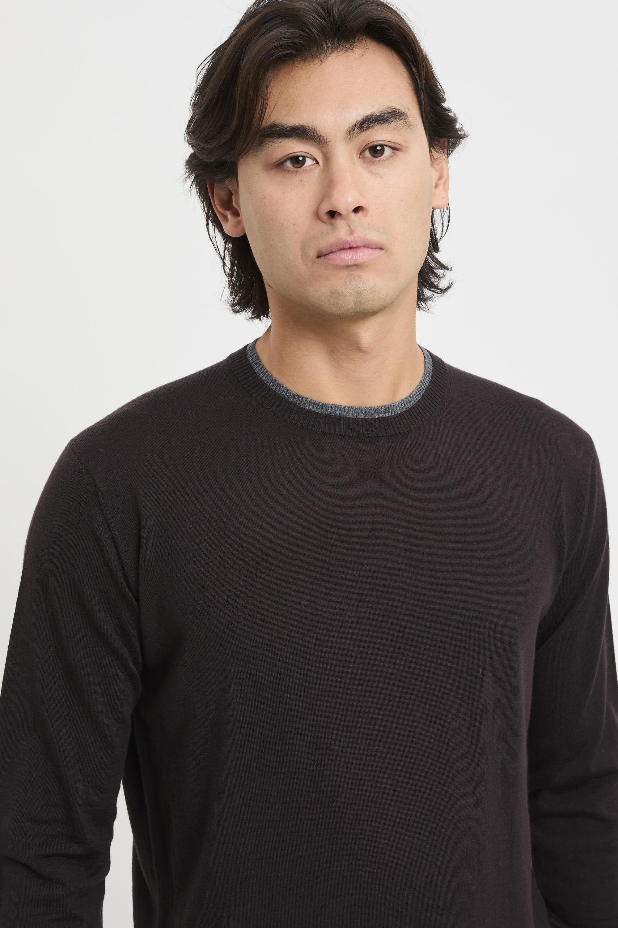 paolo pecora Maglia girocollo con profili a contrasto