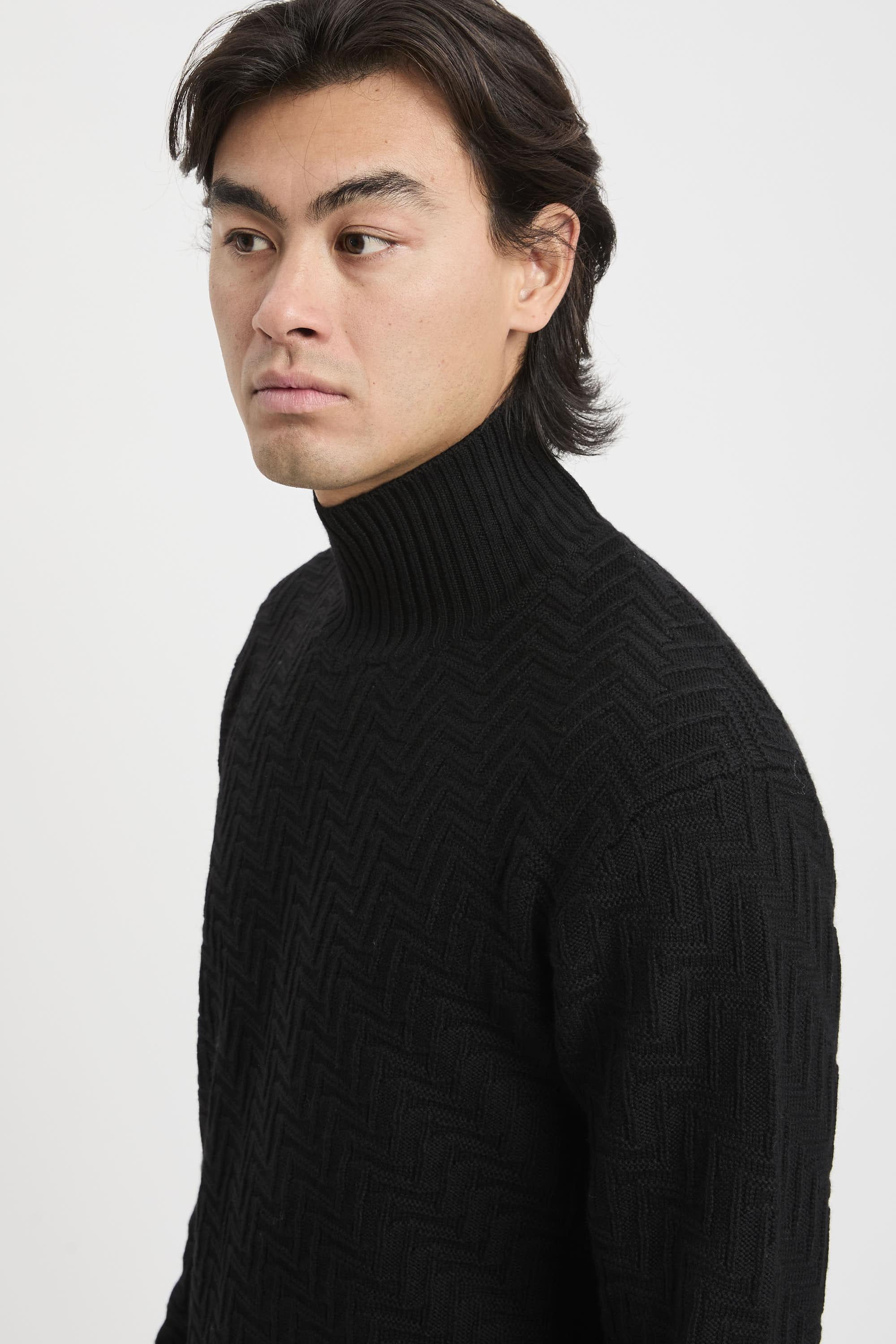 - Lupetto in lana merino extrafine- Lavorazione a punto diagonale - Colletto, polsi e fondo a costineColore: NeroIl modello indossa la taglia M, è alto 1.83 cm e pesa 72 kg.STAGIONE: AUTUNNO INVERNO 2025/2026COD: A031 F009 9000Materiale: 100% Lana vergine
