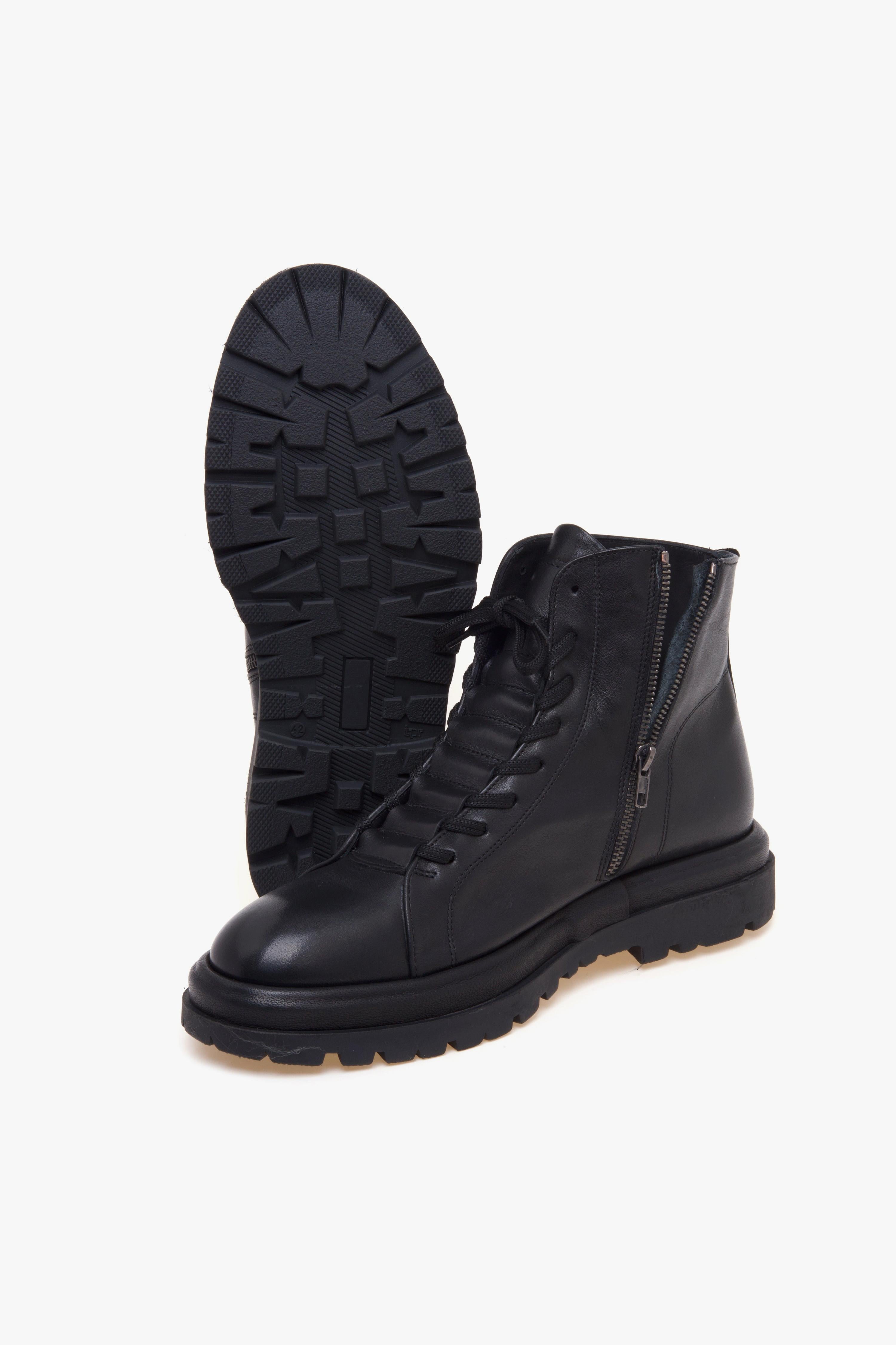 Linea decisa e dettagli ricercati definiscono l’anfibio Pawelk’s in pelle, un modello dal look accattivante che interpreta il codice militare con un’estetica pulita e urban adatta all'uso in città e non solo. L’allacciatura semicoperta enfatizza la silhouette e aggiunge personalità al profilo, mentre la zip interna rende la calzata immediata senza interrompere l’armonia del design. Fodera in pelle e guardolo rivestito in pelle parlano di qualità costruttiva, completati da una suola in gomma con battistrada carrarmato che assicura stabilità e presa. Un’interpretazione contemporanea, pensata per la città e realizzata con cura Made in Italy.Caratteristiche principali:# Tomaia: pelle.# Allacciatura: semicoperta per un profilo pulito e distintivo.# Chiusura: zip interna.# Fodera: pelle.# Sottopiede: pelle.# Guardolo: rivestito in pelle.# Suola: gomma con battistrada carrarmato.# Produzione: Made in Italy.