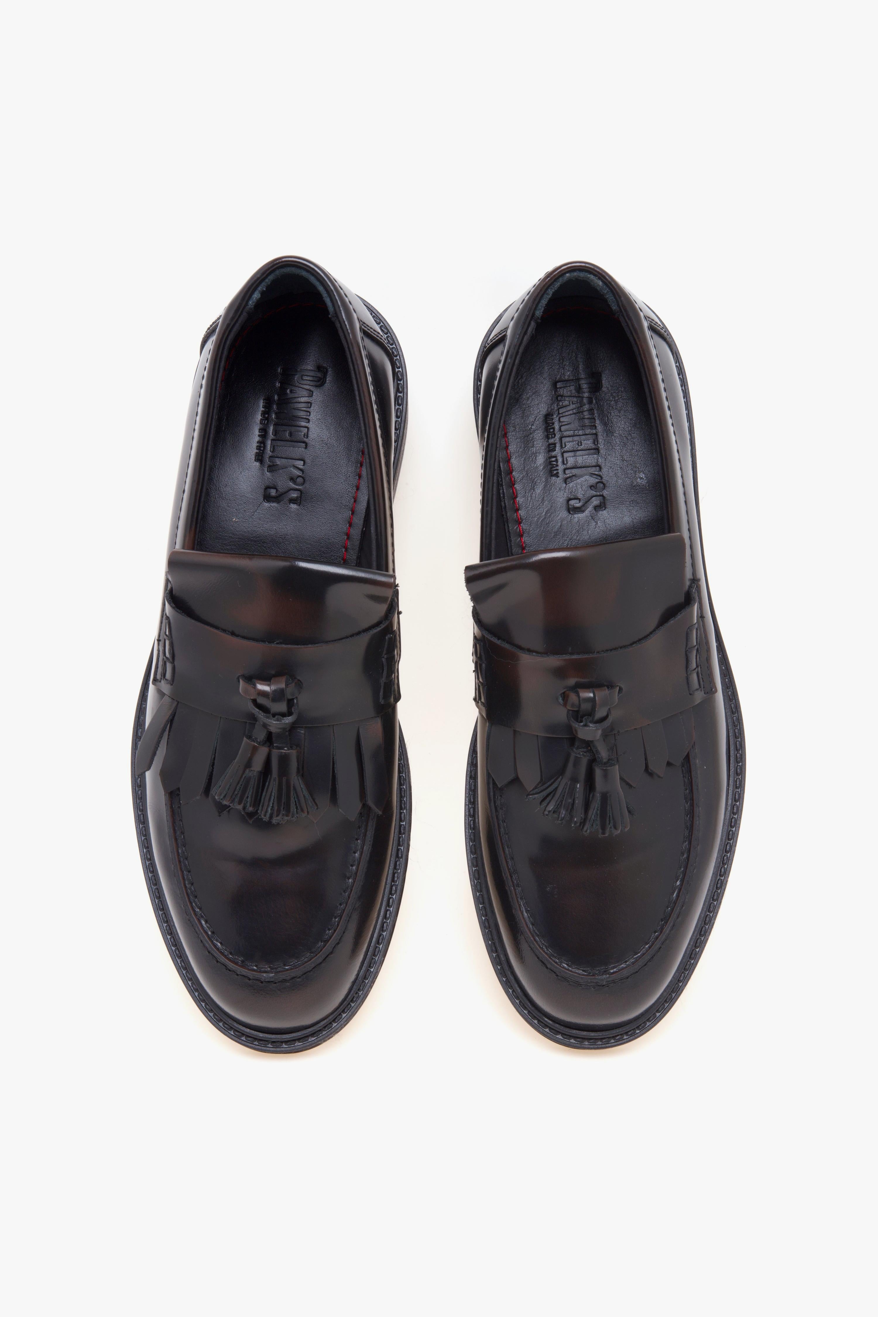 Eleganza disinvolta e spirito contemporaneo definiscono il mocassino tassel con frange Pawelk’s in pelle spazzolata, una scelta versatile pensata per l’ufficio e il tempo libero. La tomaia in tonalità testa di moro scuro con sfumature nere valorizza la silhouette classica con un tocco sofisticato, mentre le nappe e le frange aggiungono personalità senza rinunciare alla pulizia delle linee. Fodera in pelle e suola in gomma assicurano comfort e praticità nel quotidiano, a conferma di una manifattura Made in Italy attenta ai dettagli.Caratteristiche principali:# Modello: mocassino tassel con frange.# Tomaia: pelle spazzolata testa di moro scuro con sfumature nere.# Dettagli: nappine e frange sul collo del piede.# Fodera: pelle.# Sottopiede: pelle.# Suola: gomma.# Stile: casual-chic, adatto a look formali e informali.# Produzione: Made in Italy.